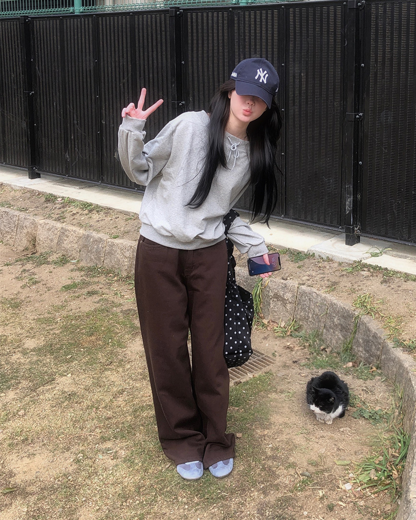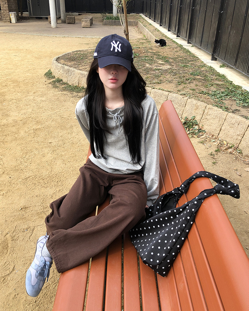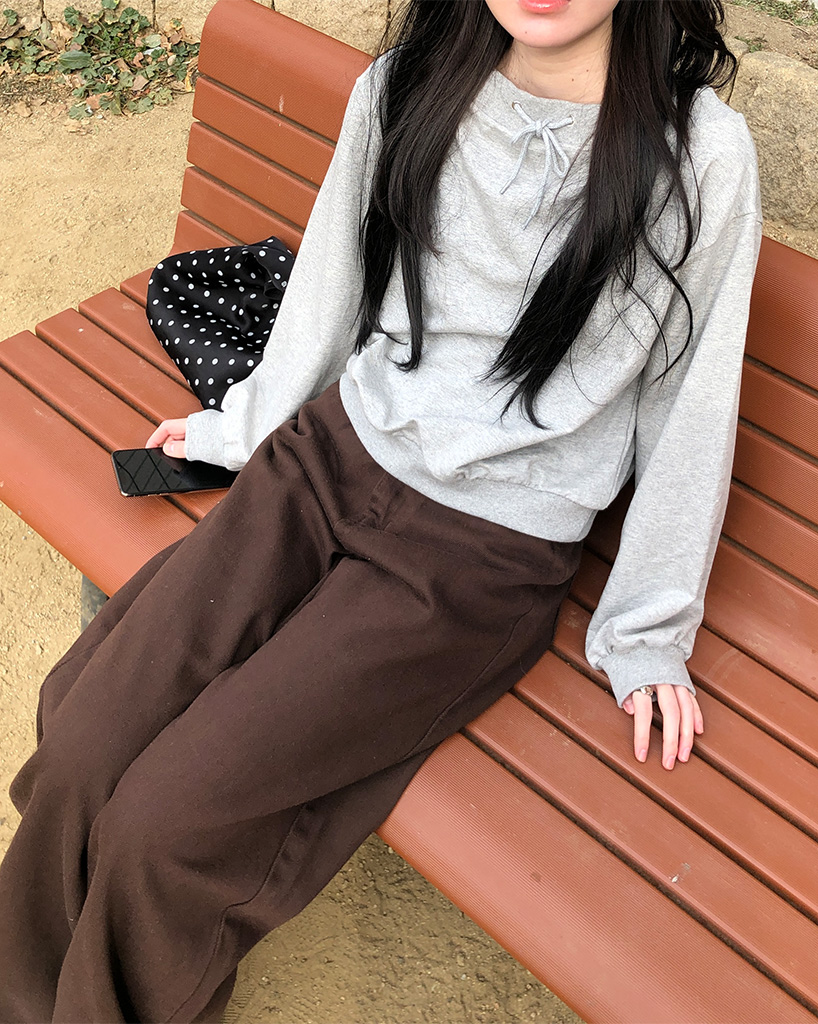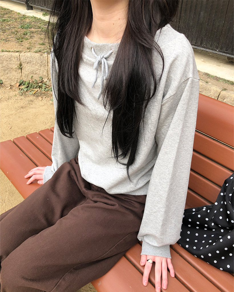 オフショルダーストリング付きスウェットシャツ