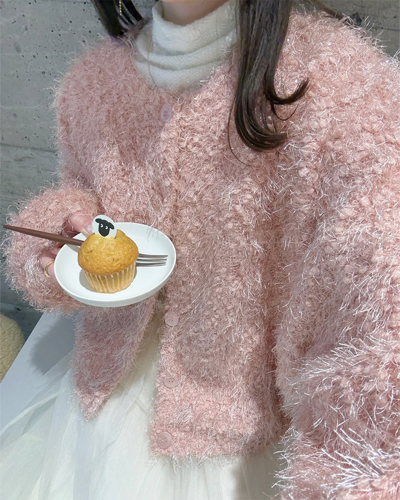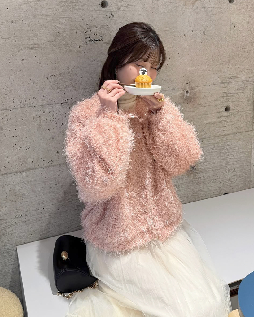 (ORIGINAL) ヘアリーラメボリュームカーディガン