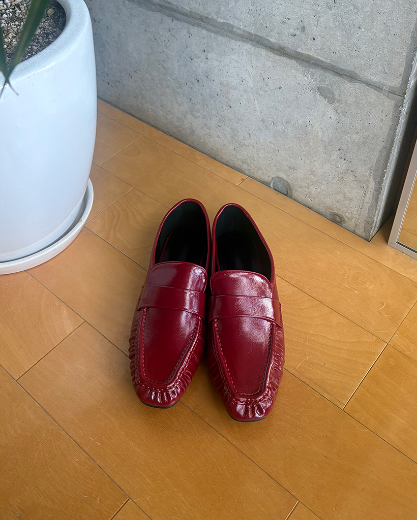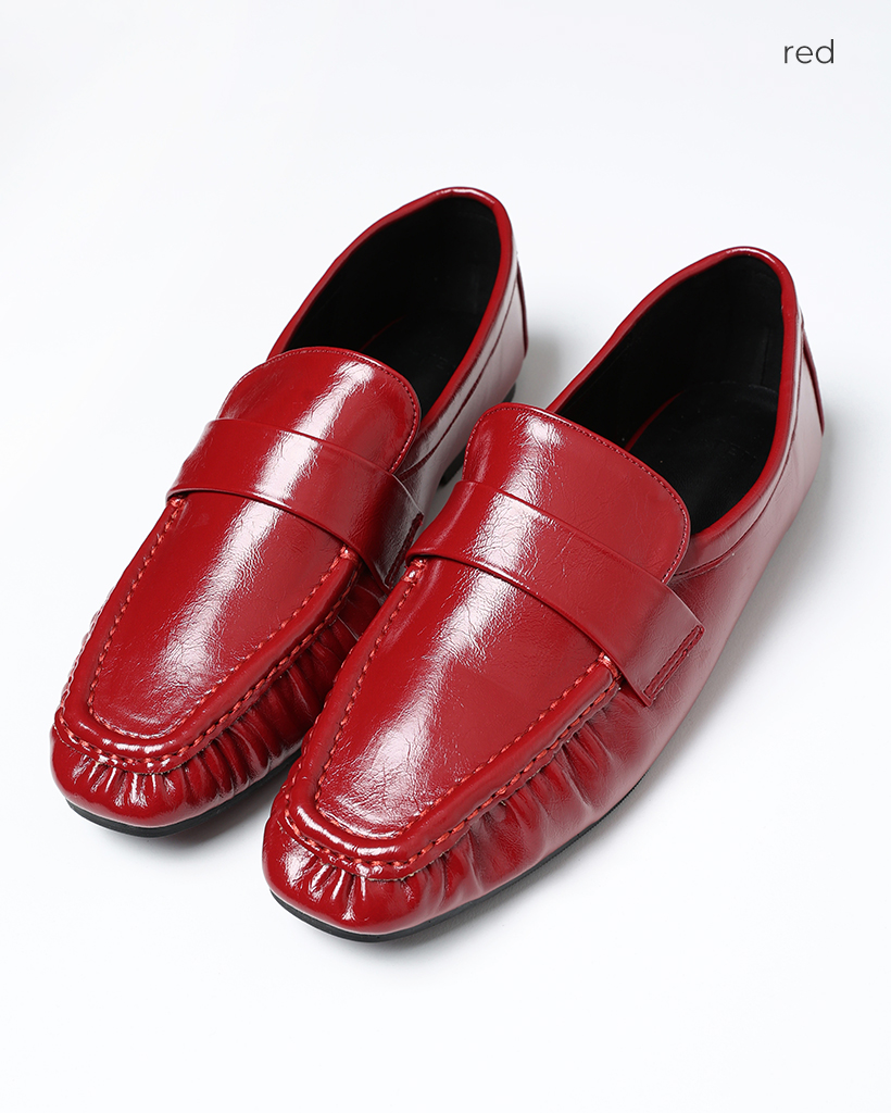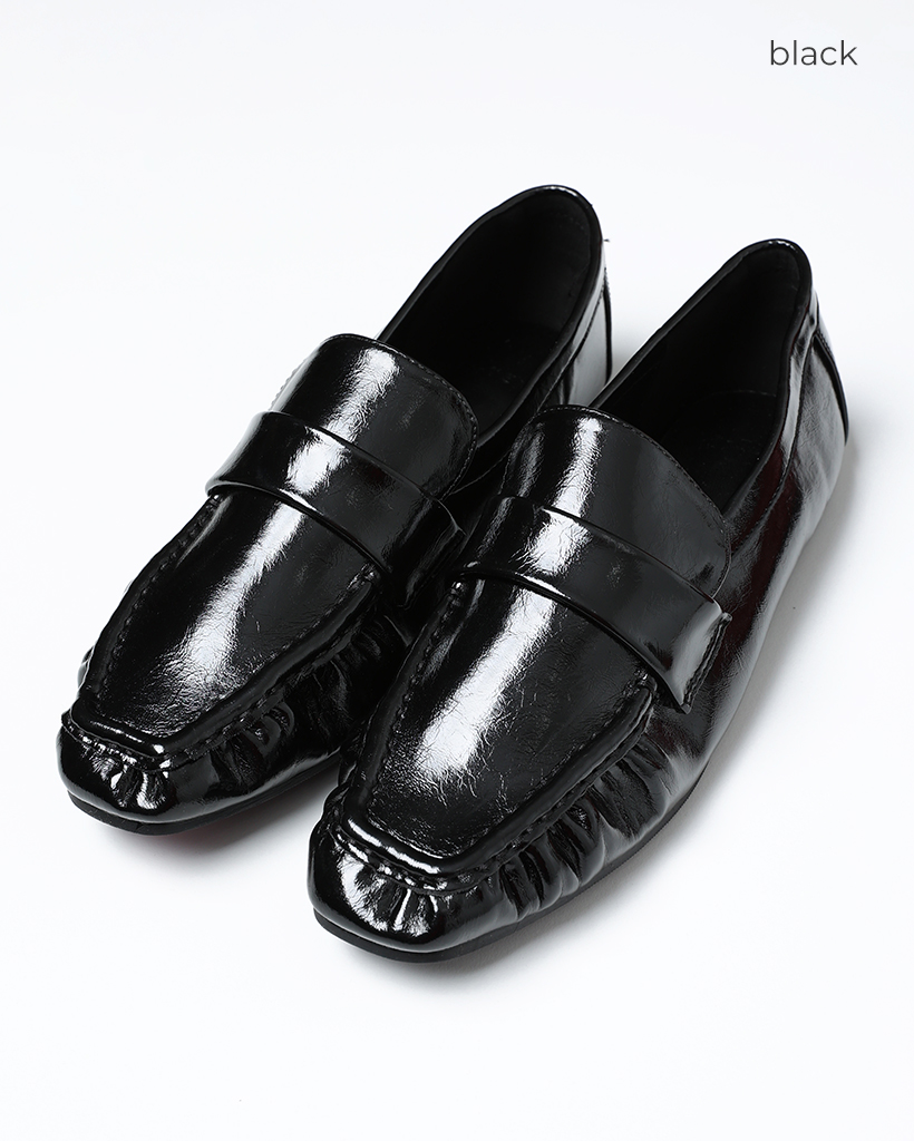 ギャザーフラットレザーローファー