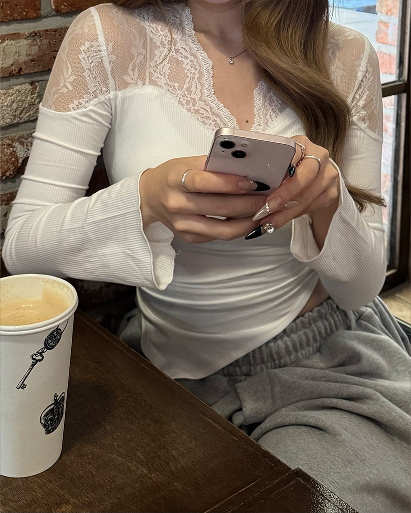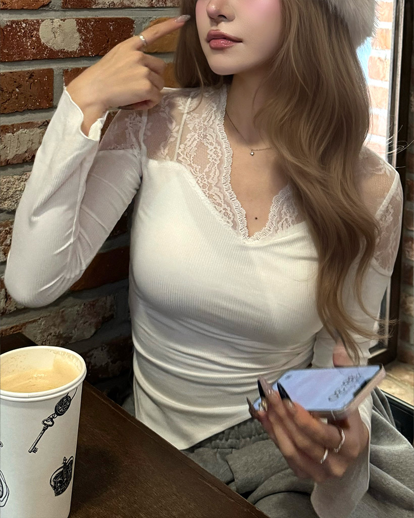 Vネックシースルーブラウス