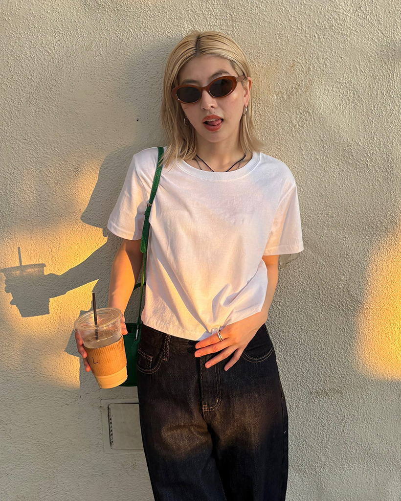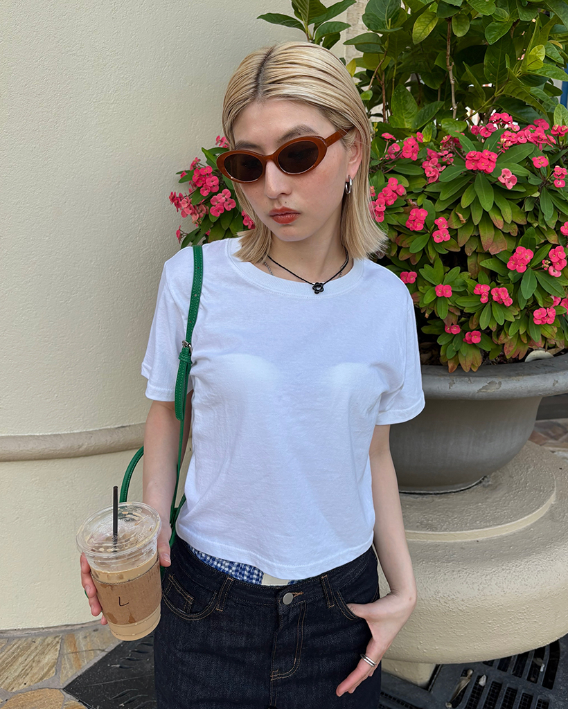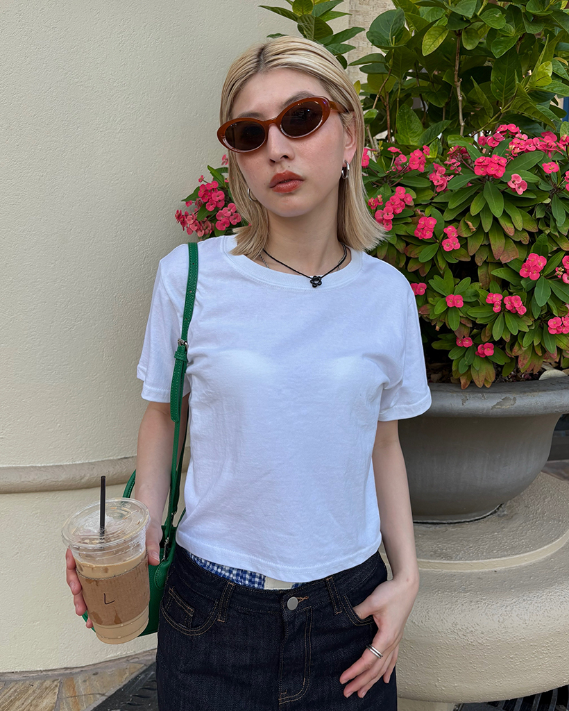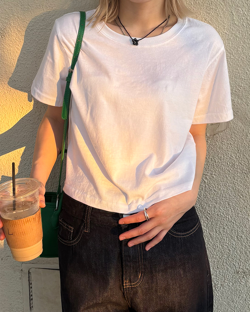 ベーシックセミクロップドハーフTシャツ