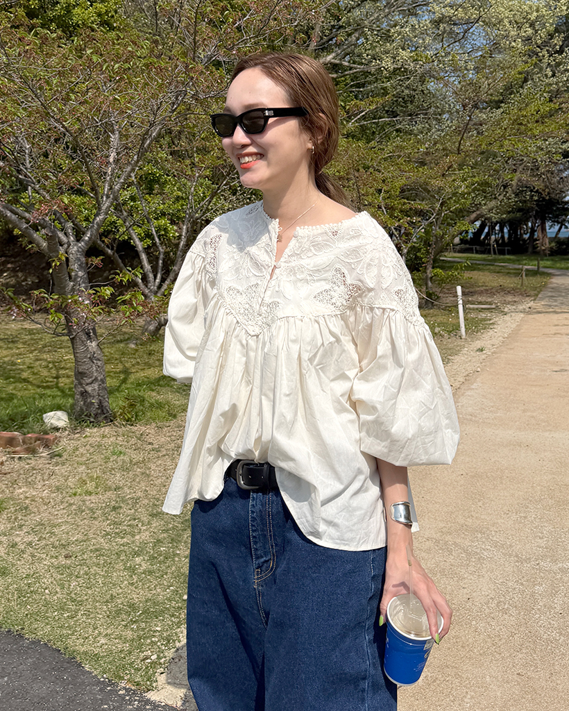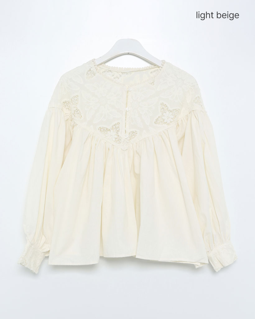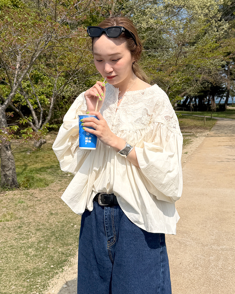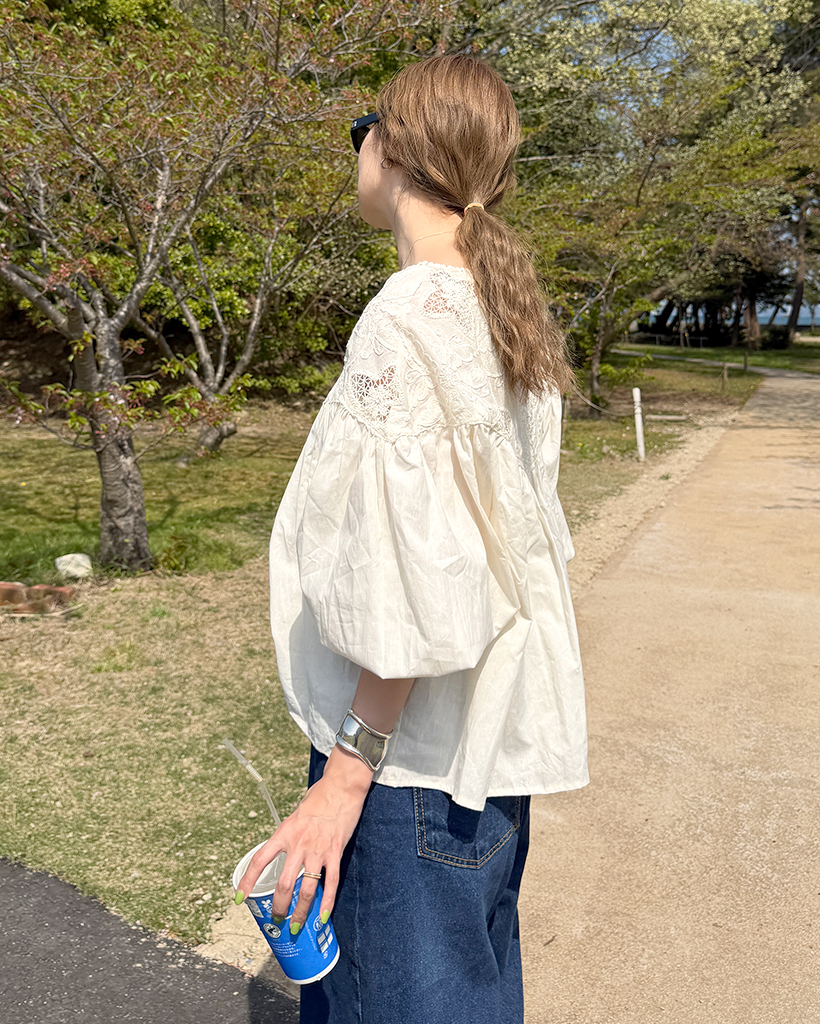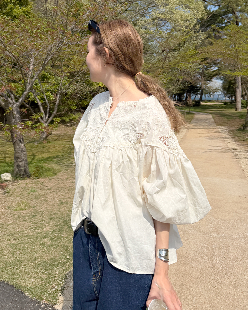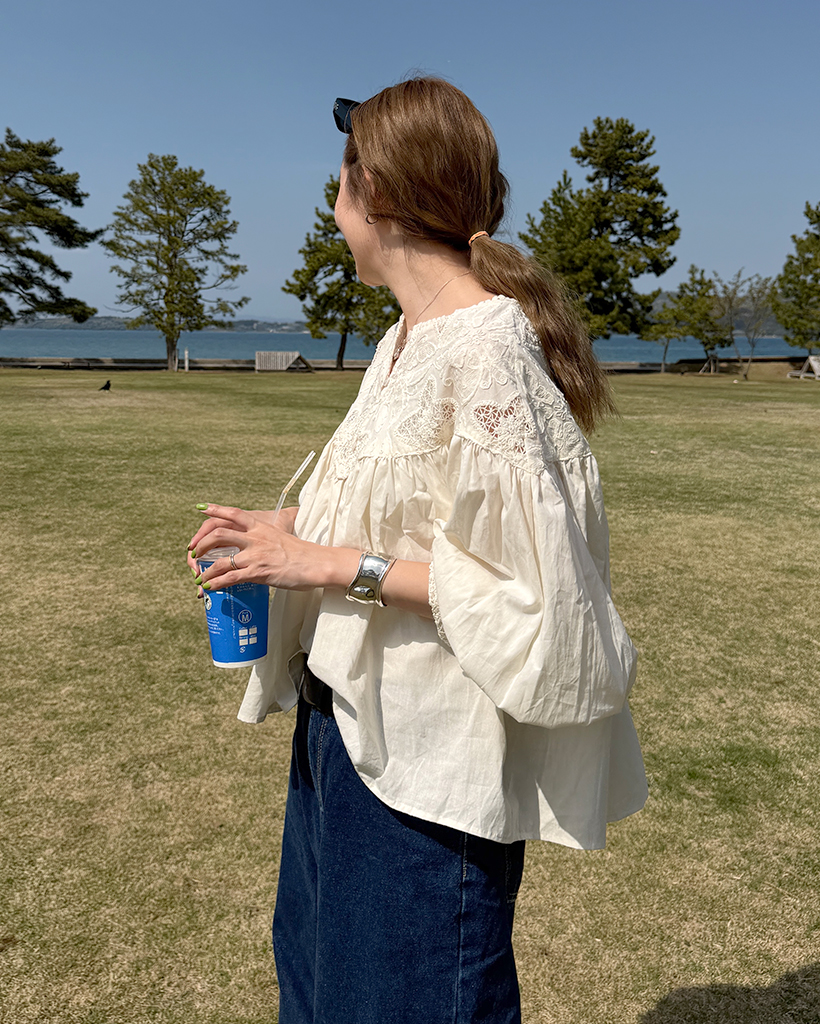 ジャガードレースバルーンフレアブラウス