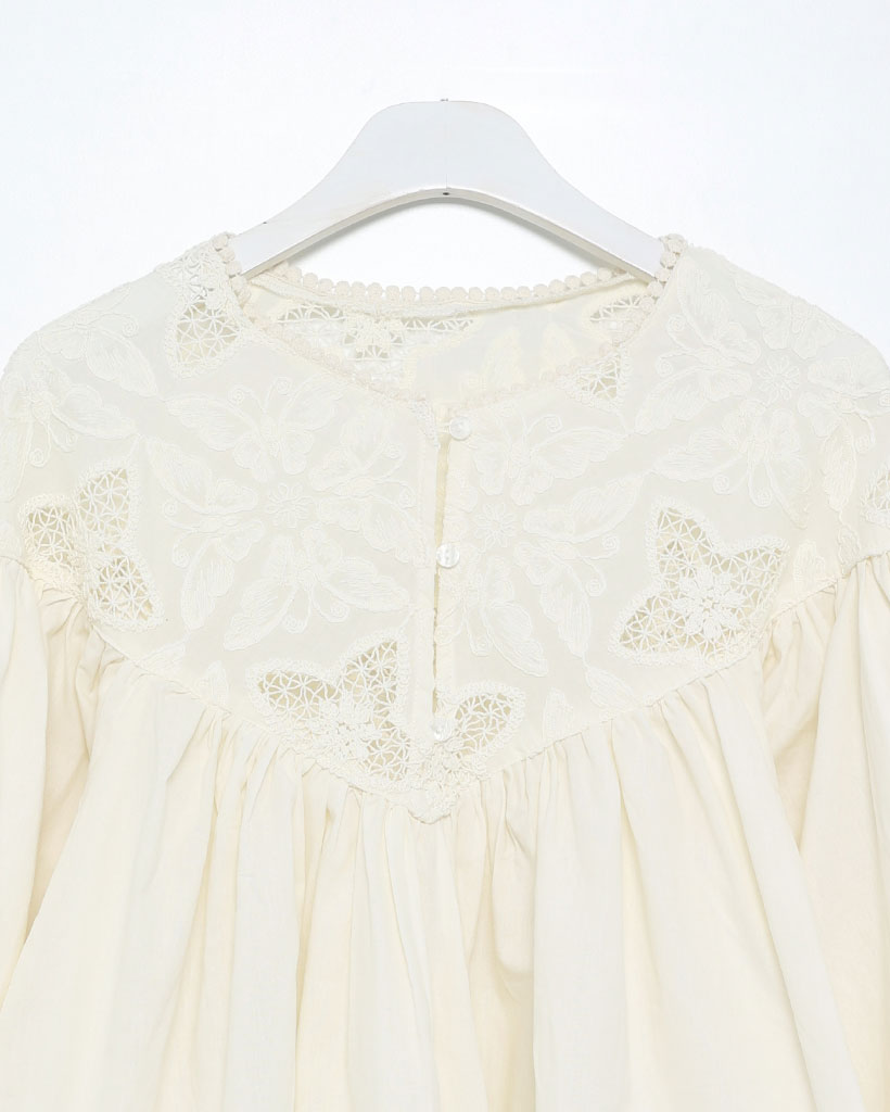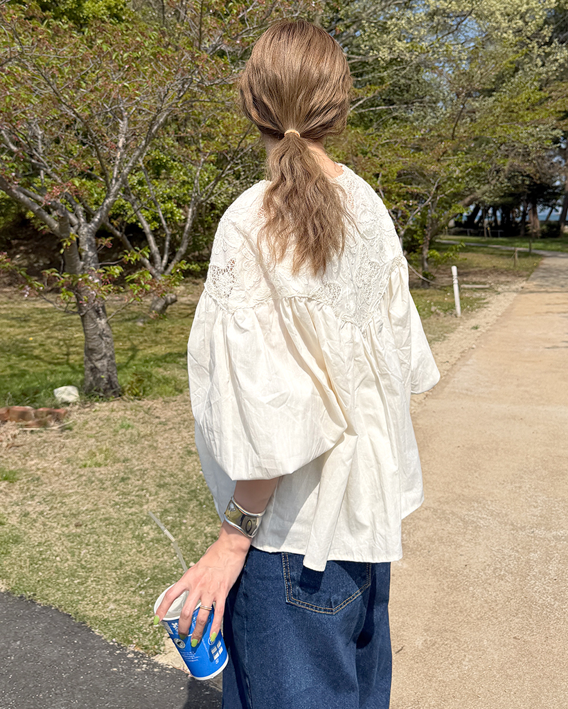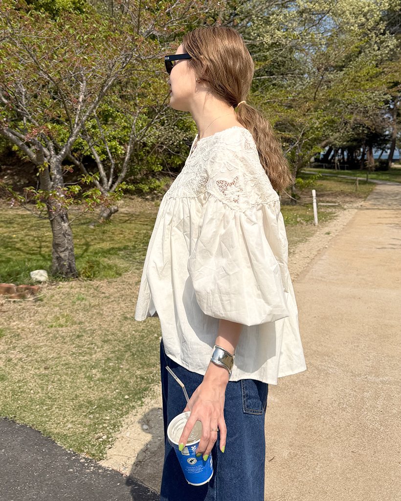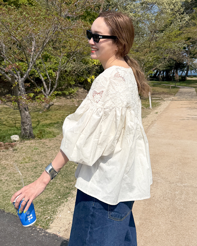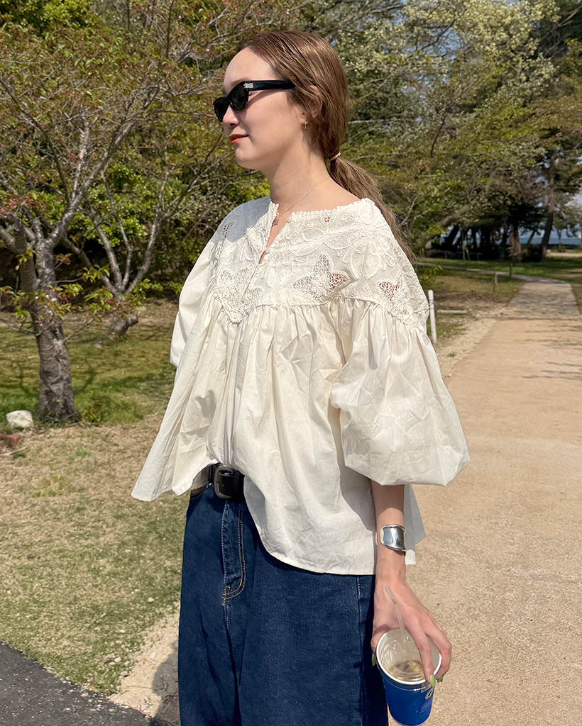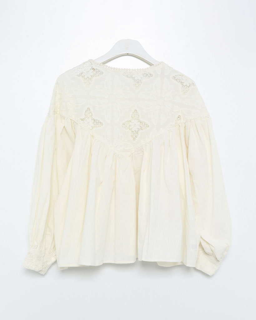 ジャガードレースバルーンフレアブラウス