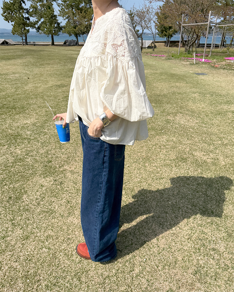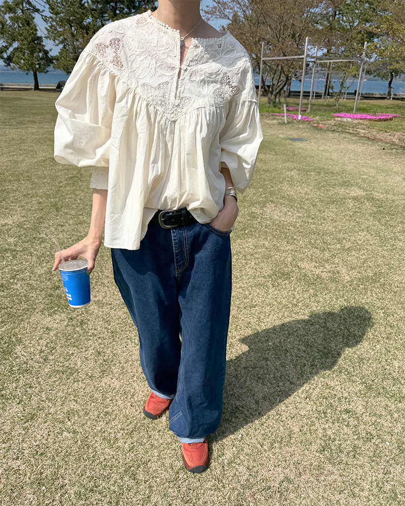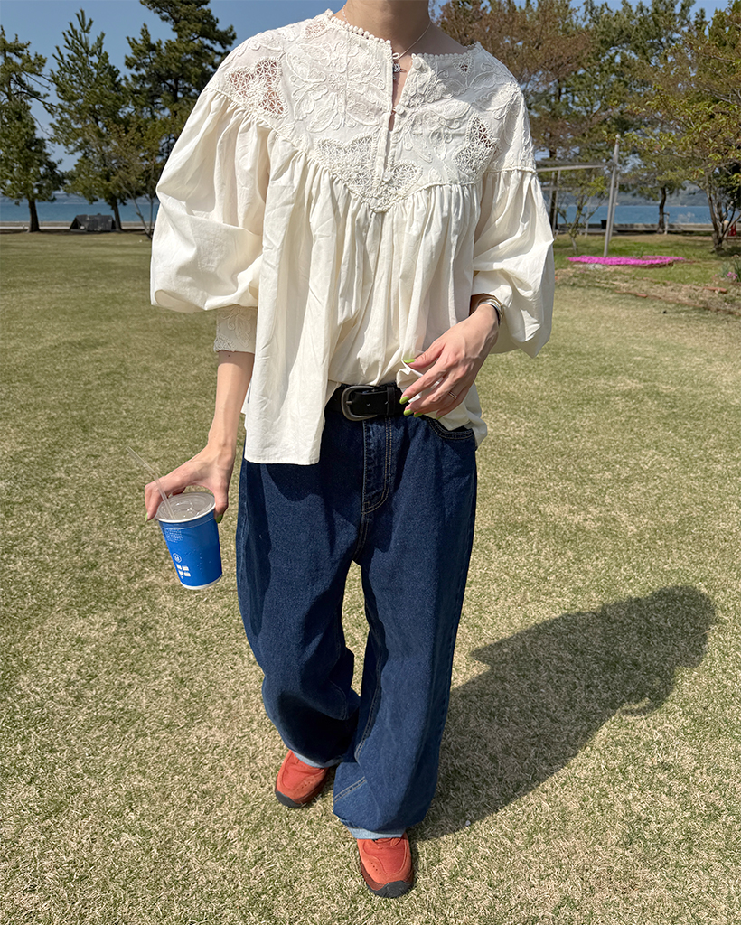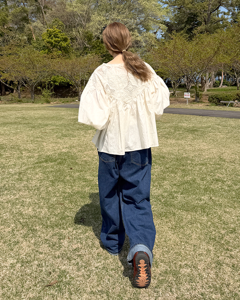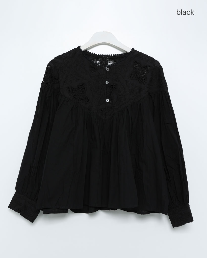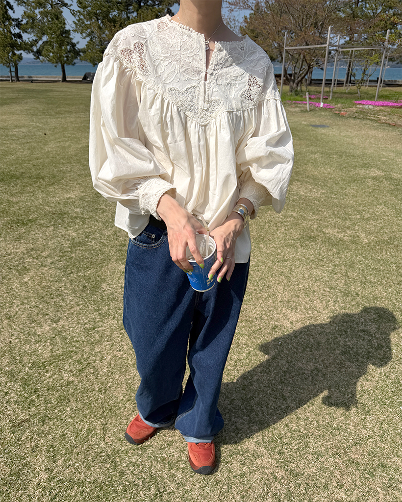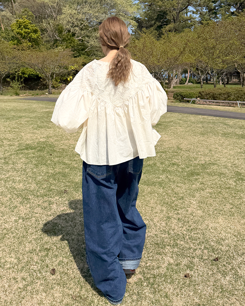 ジャガードレースバルーンフレアブラウス