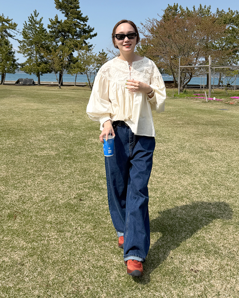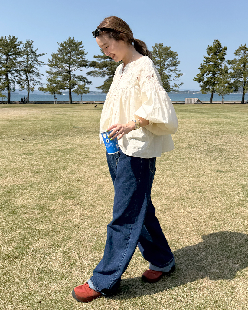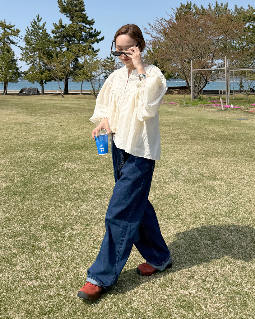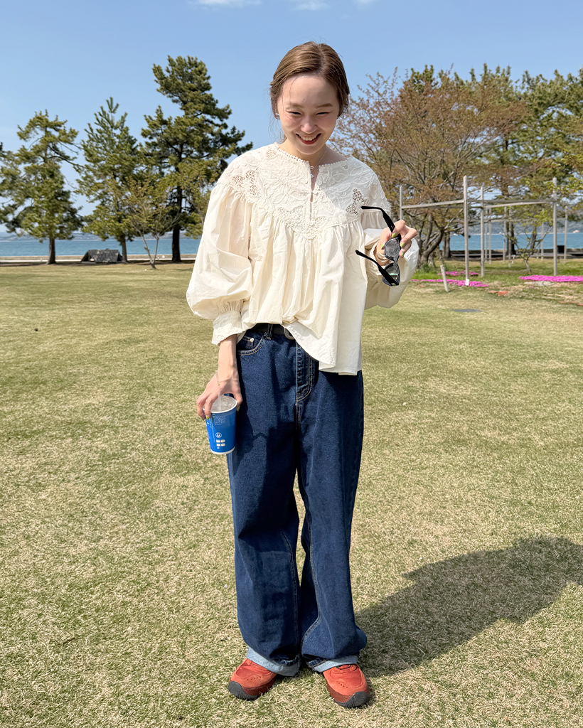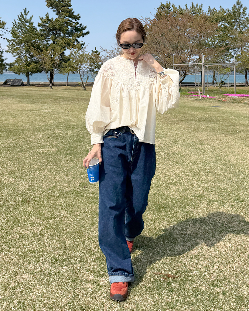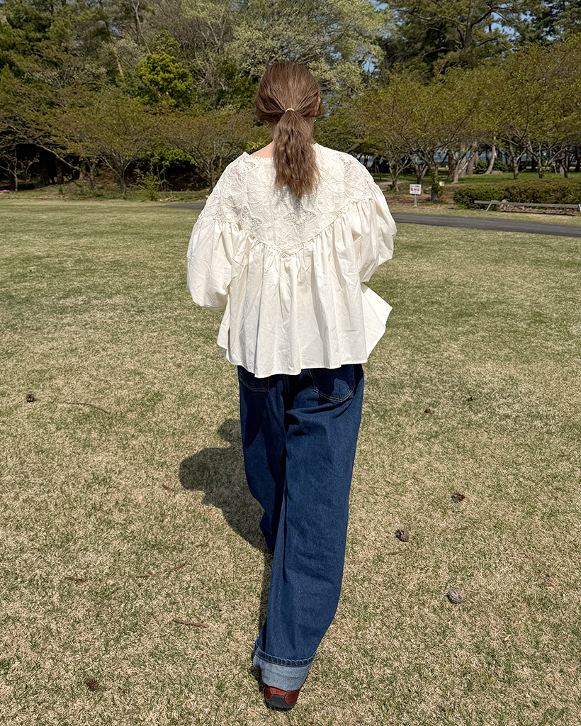 ジャガードレースバルーンフレアブラウス