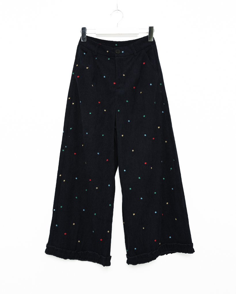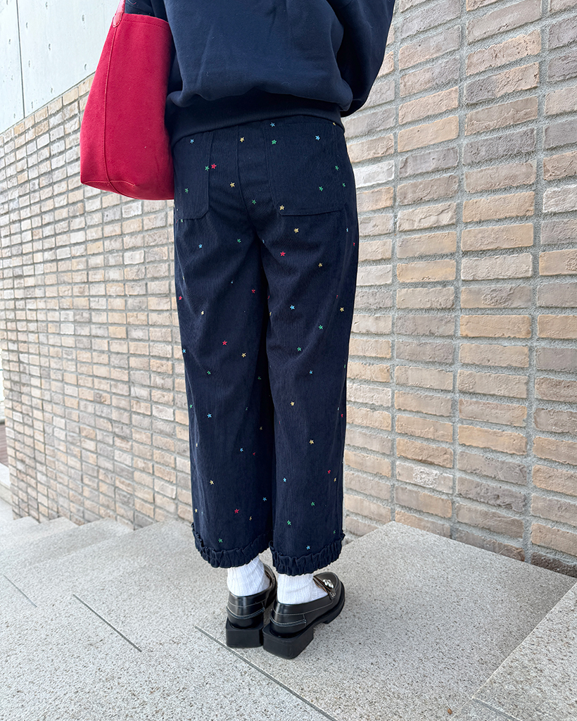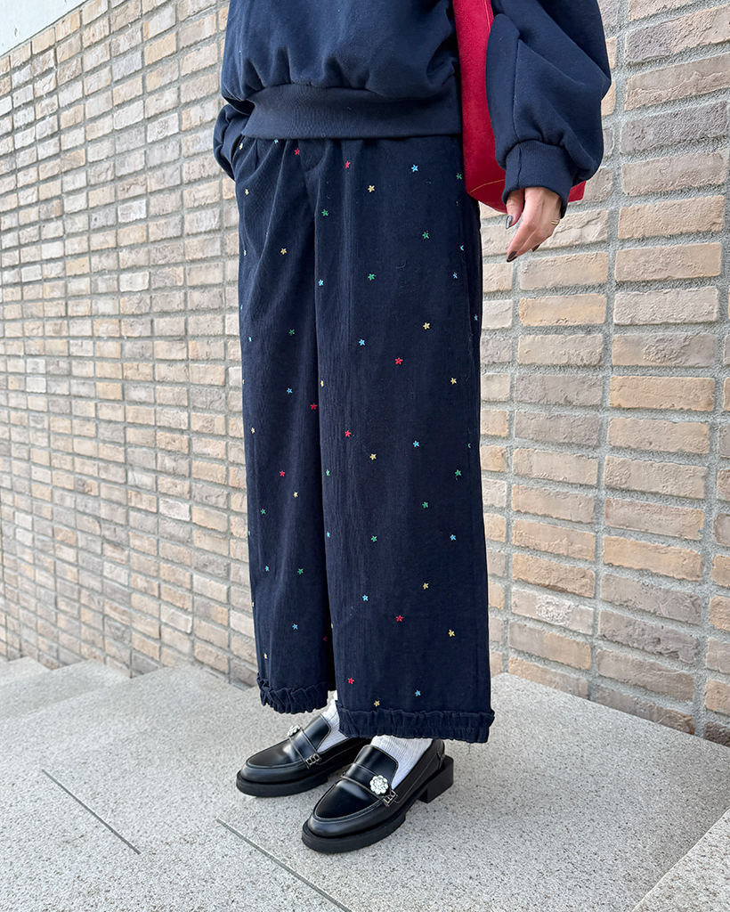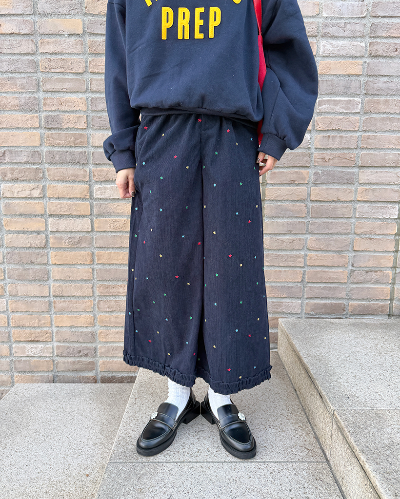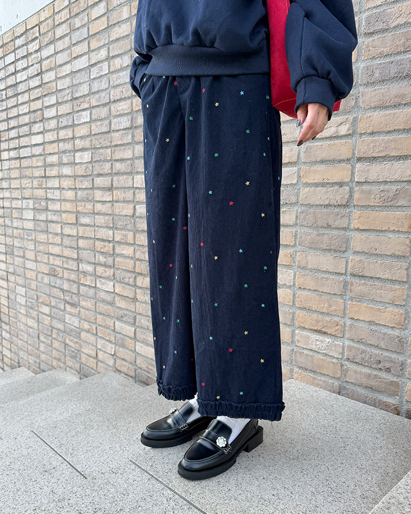 コーデュロイ刺繍ワイドパンツ