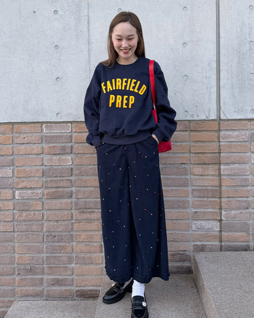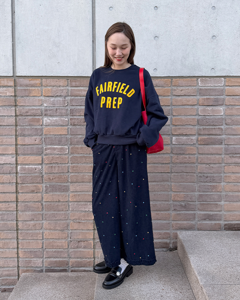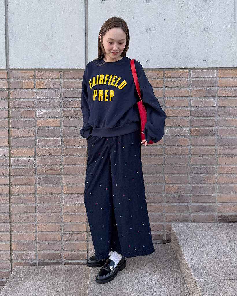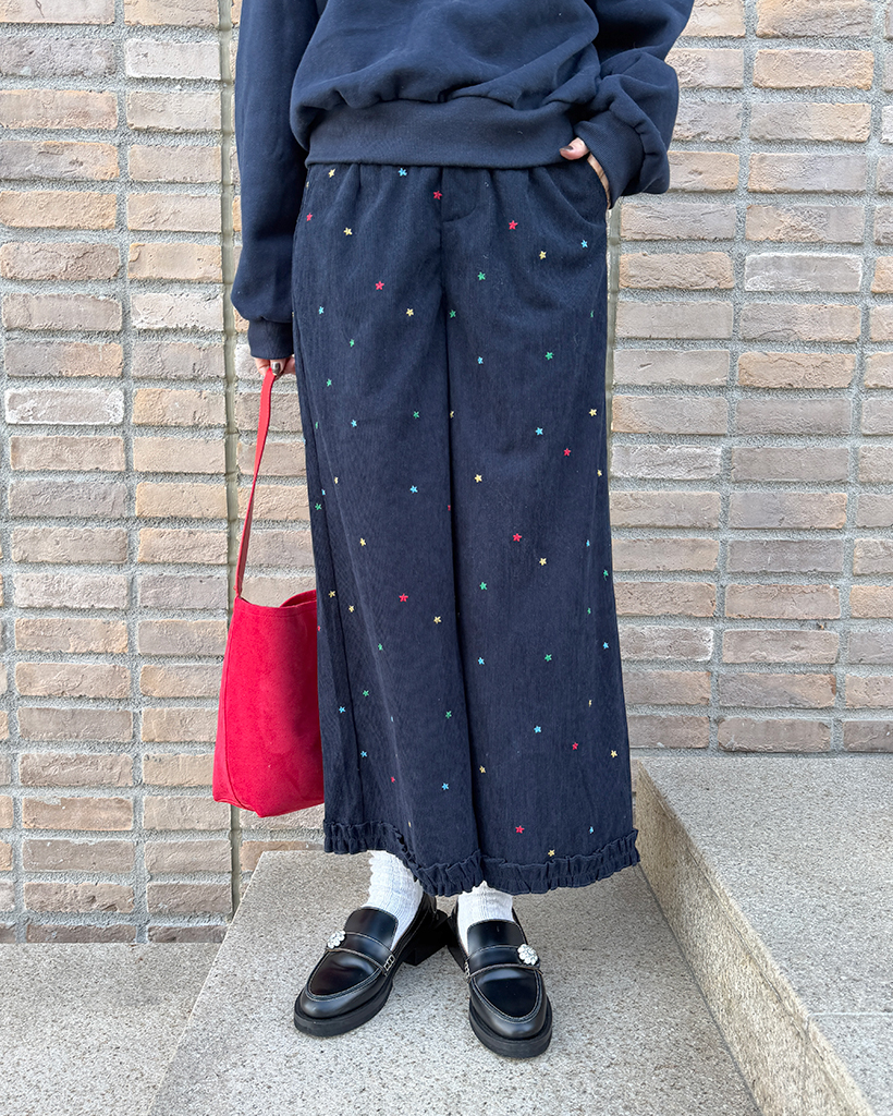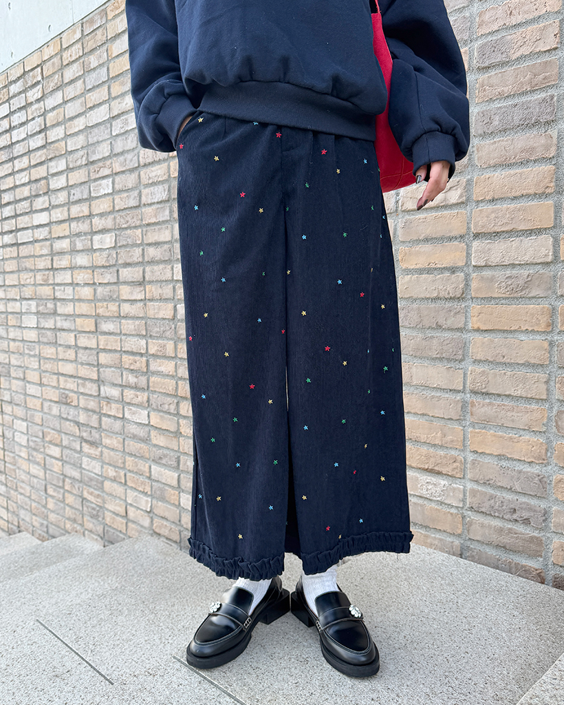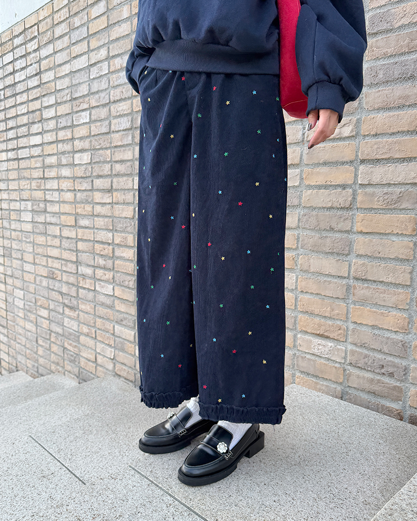 コーデュロイ刺繍ワイドパンツ