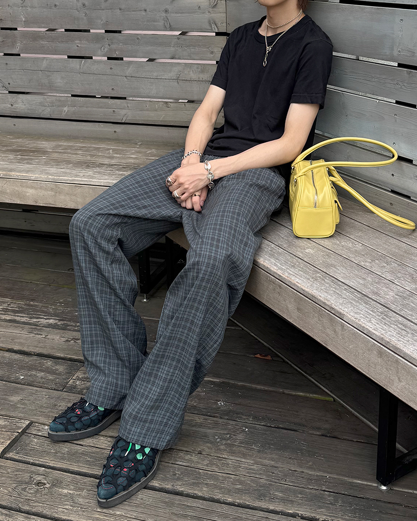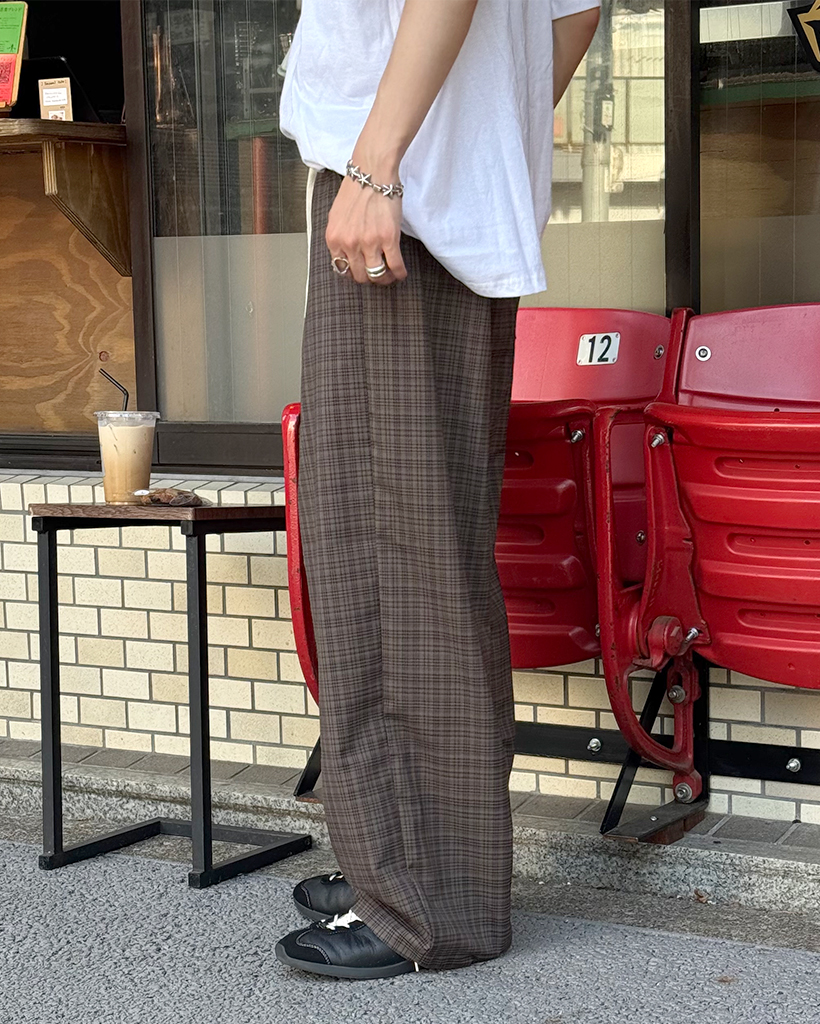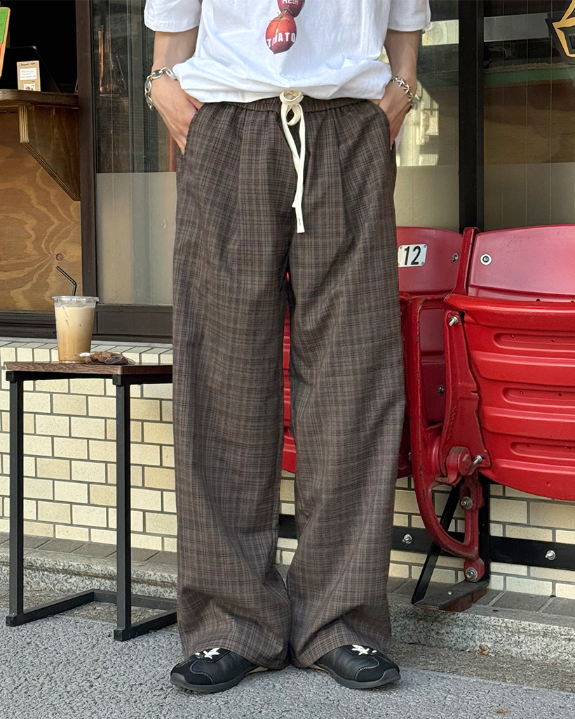 チェックストレスバンディングパンツ