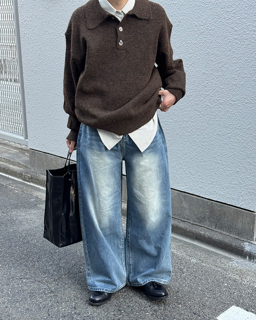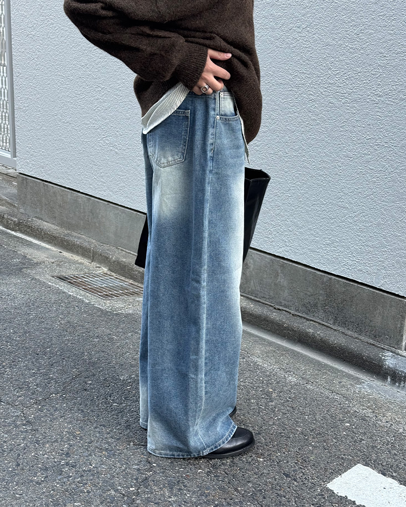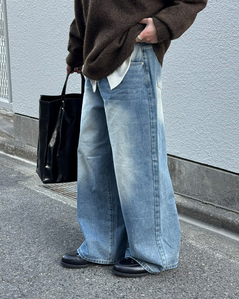 (ユニセックス)ヴィンテージワイドデニムパンツ