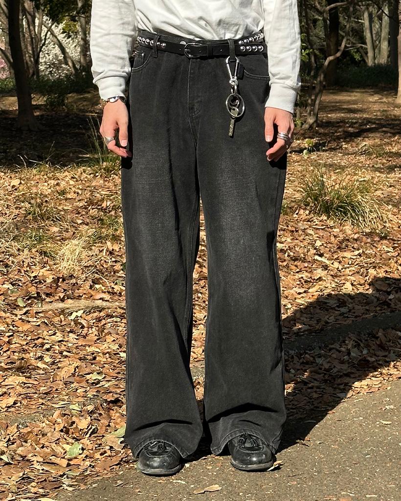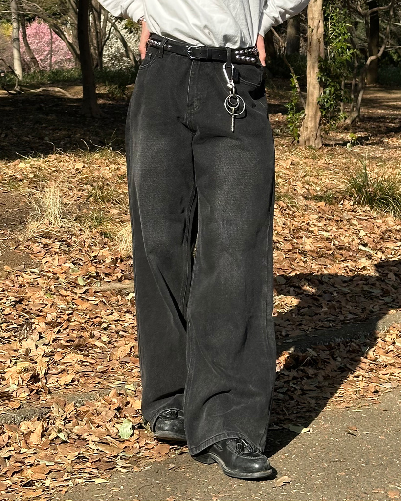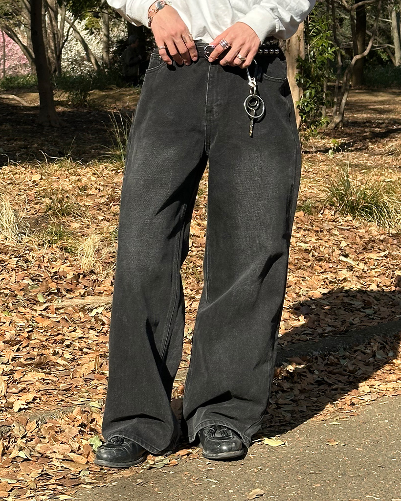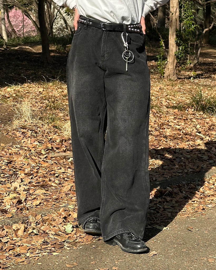 (ユニセックス)ツーボタンデニムワイドパンツ
