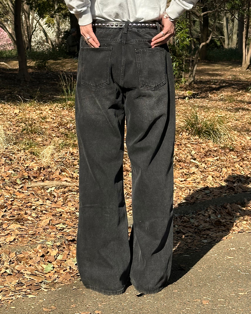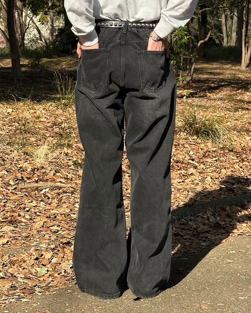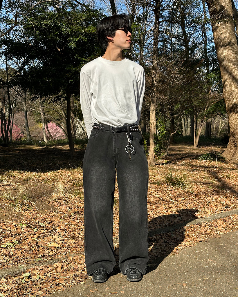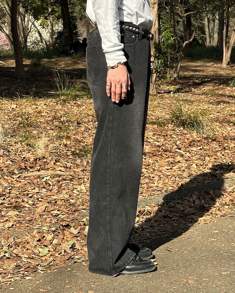 (ユニセックス)ツーボタンデニムワイドパンツ