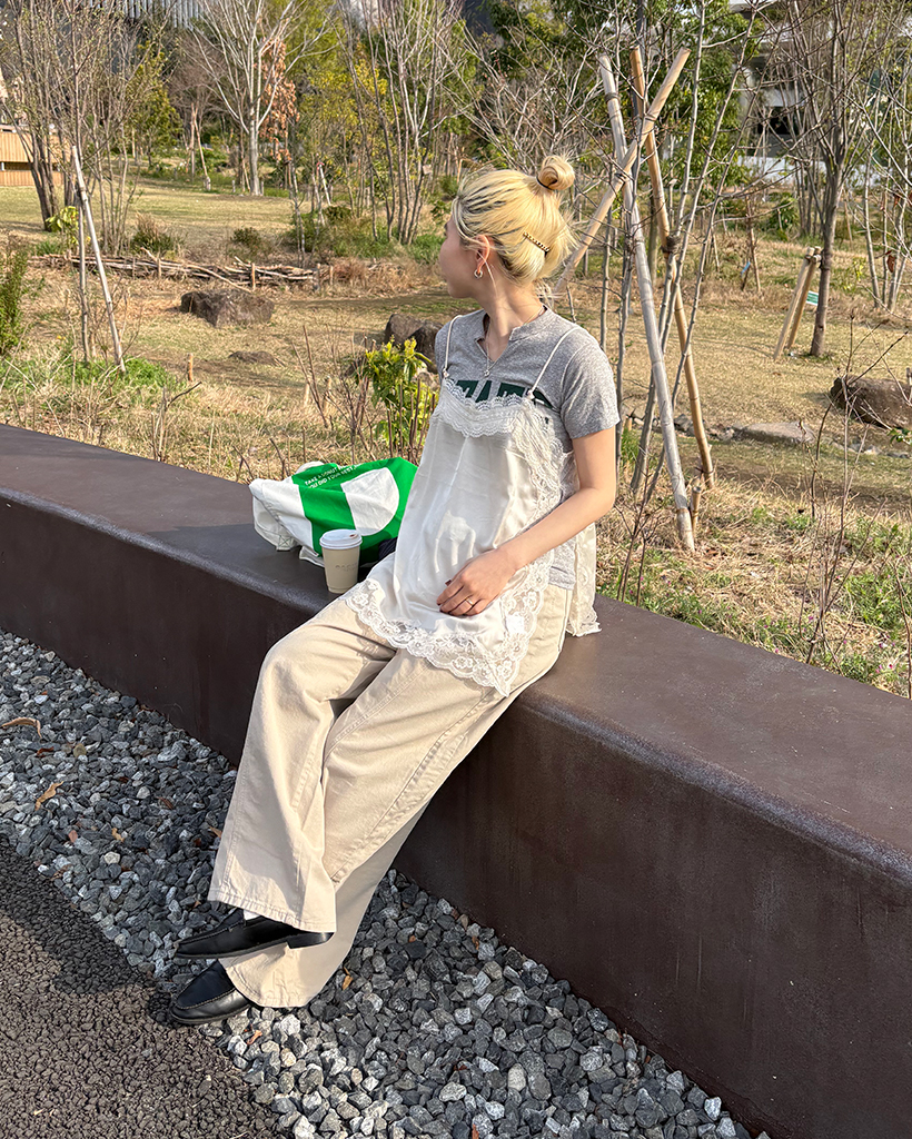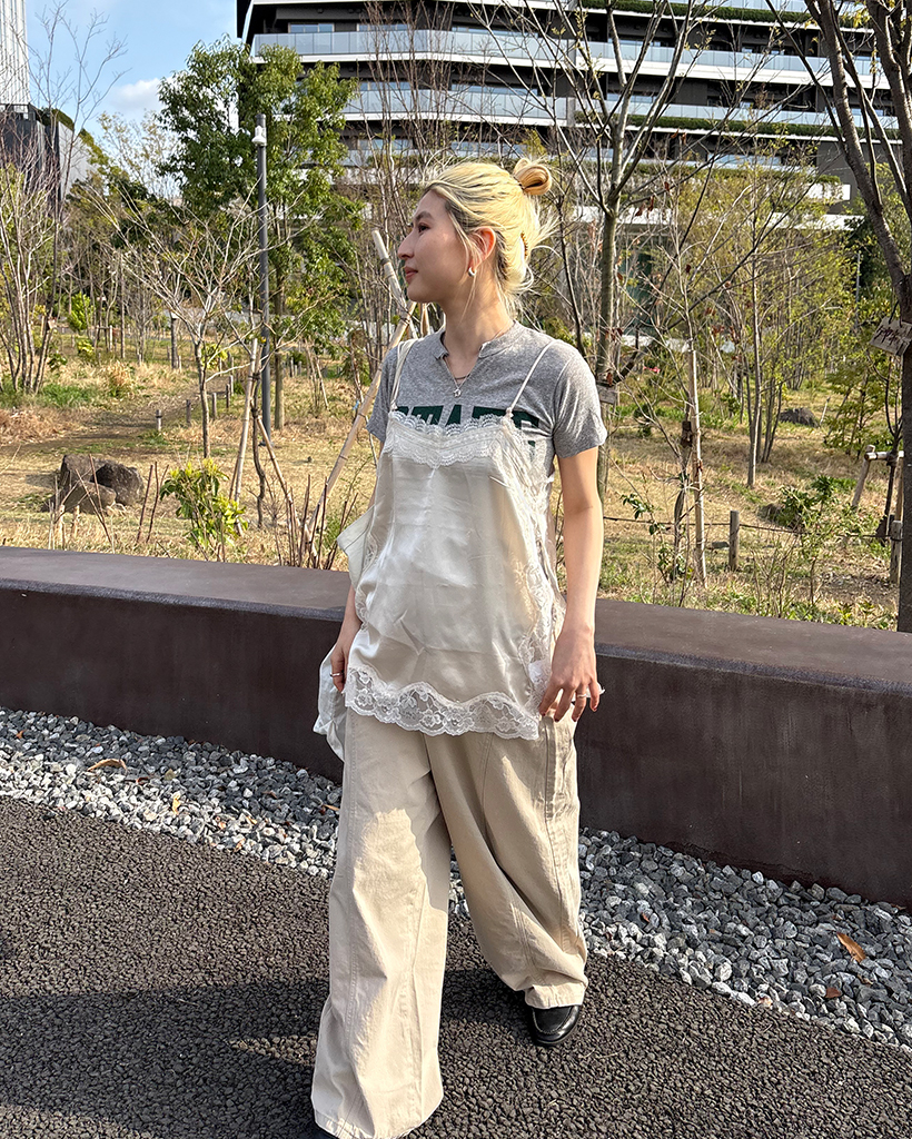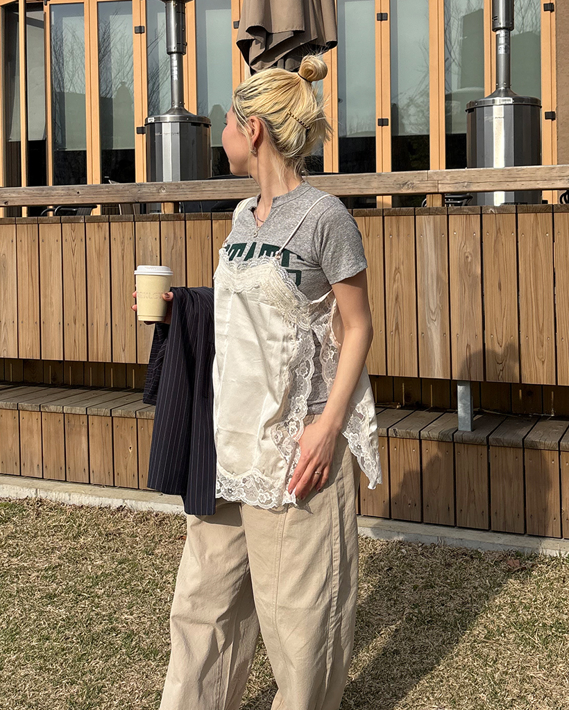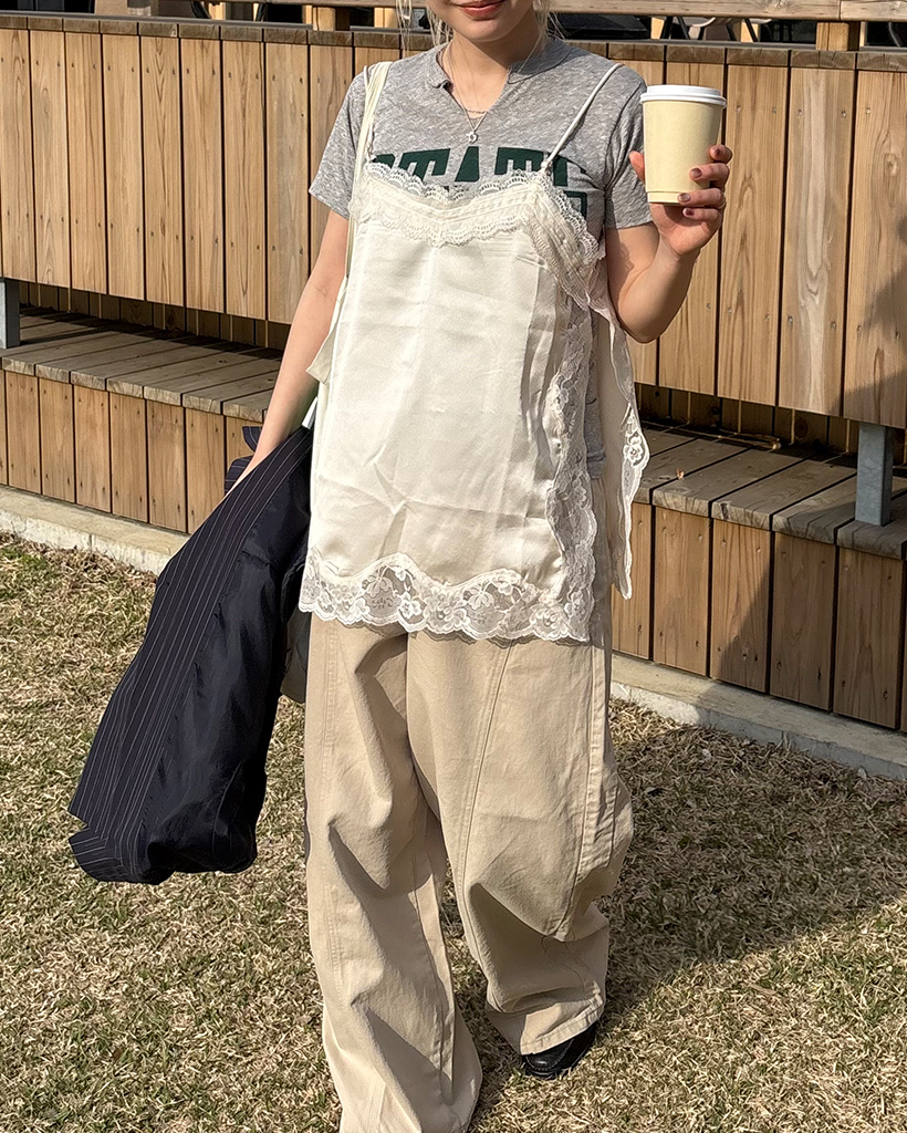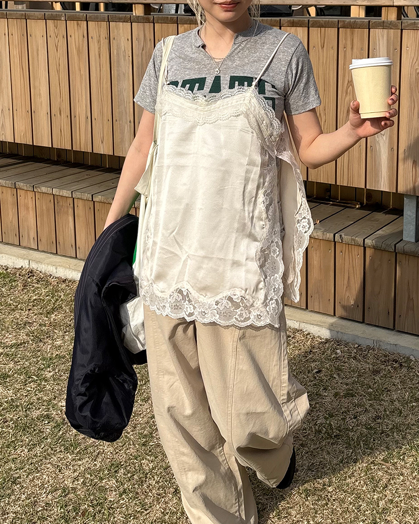 ワイドレースサイドスリットキャミソール
