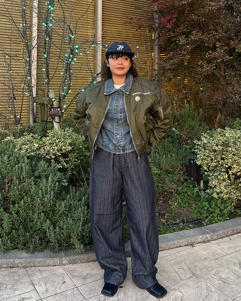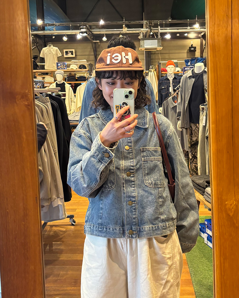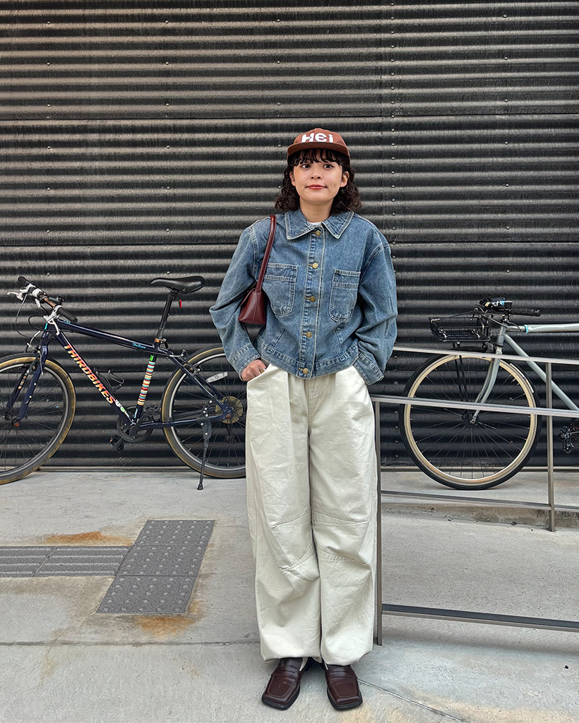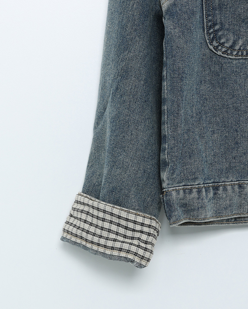 チェックバイカラーデニムジャケット