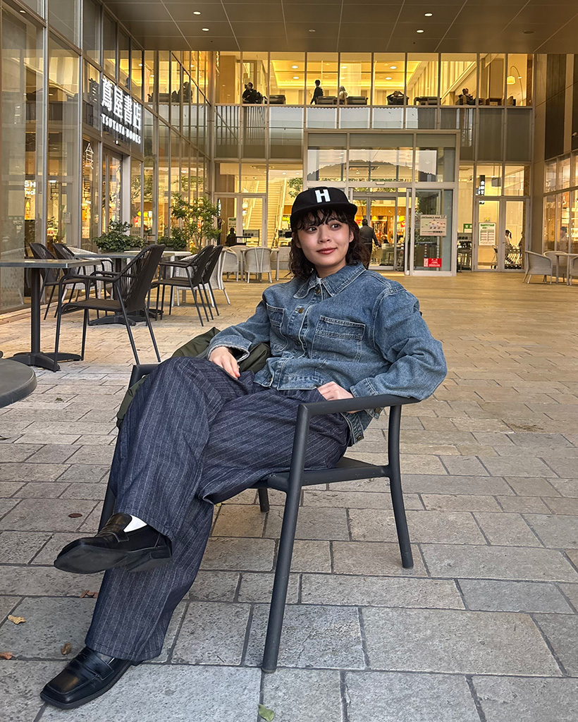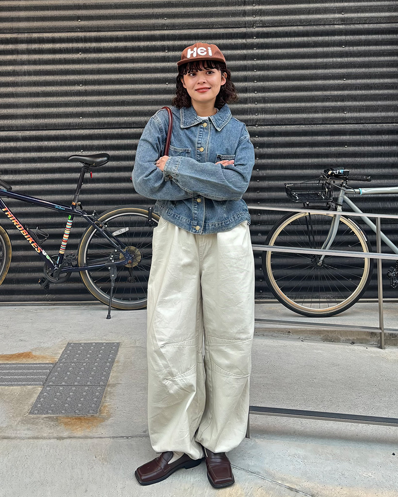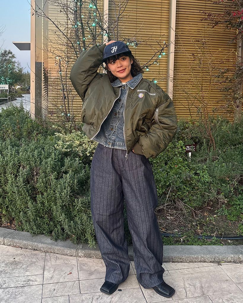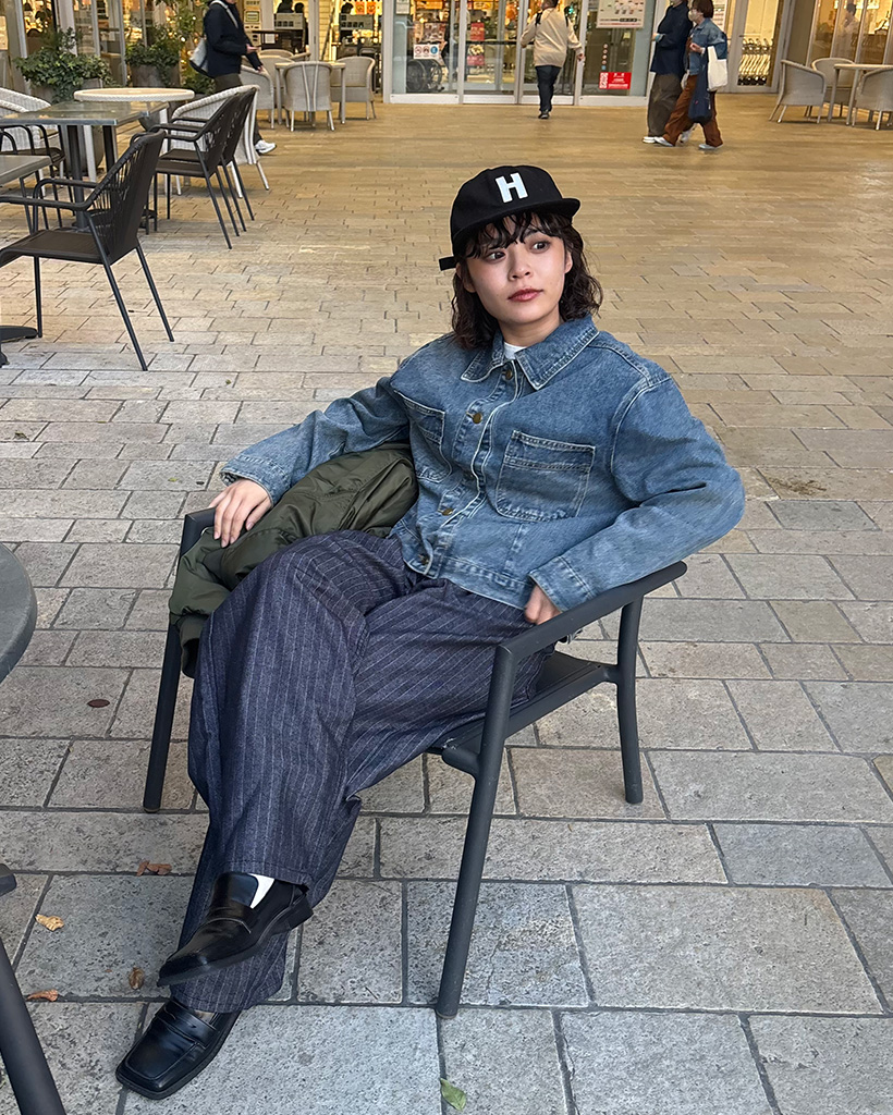 チェックバイカラーデニムジャケット