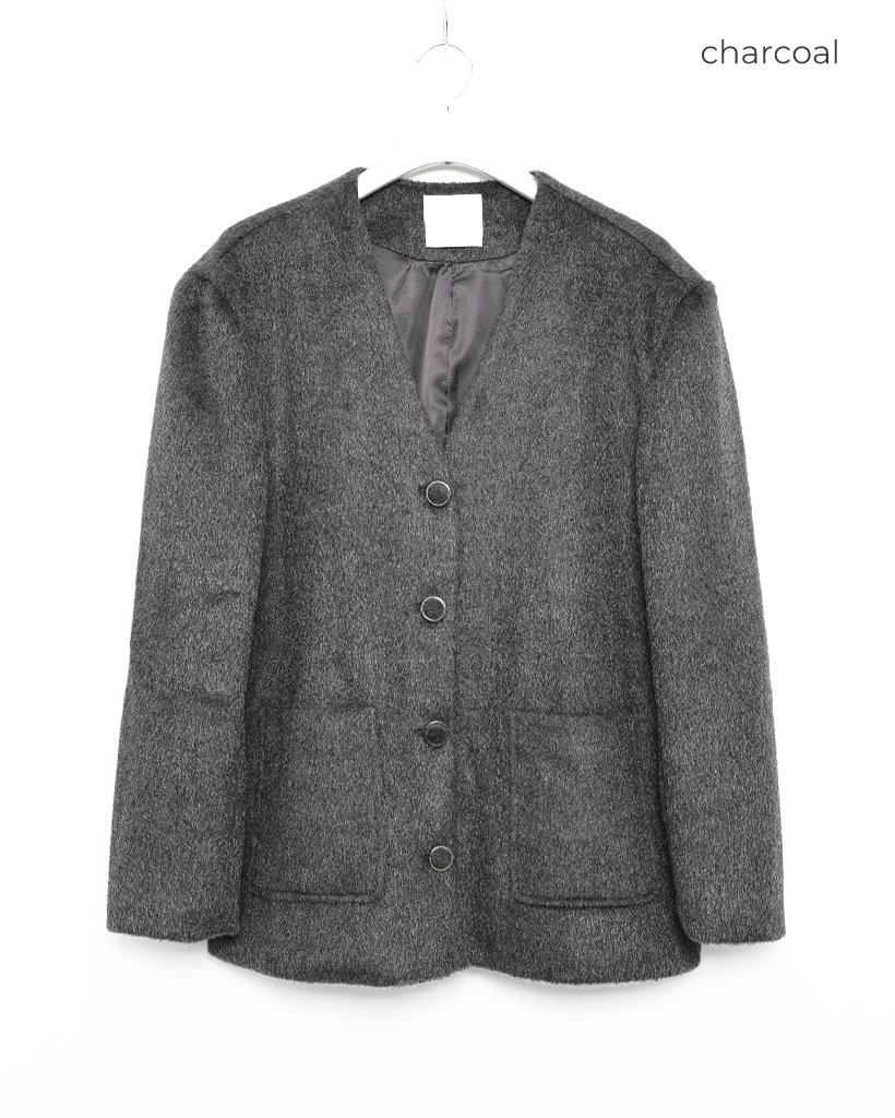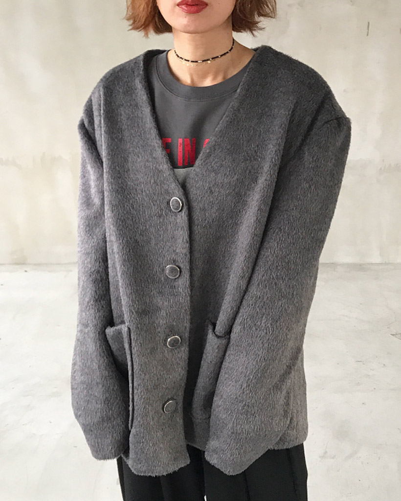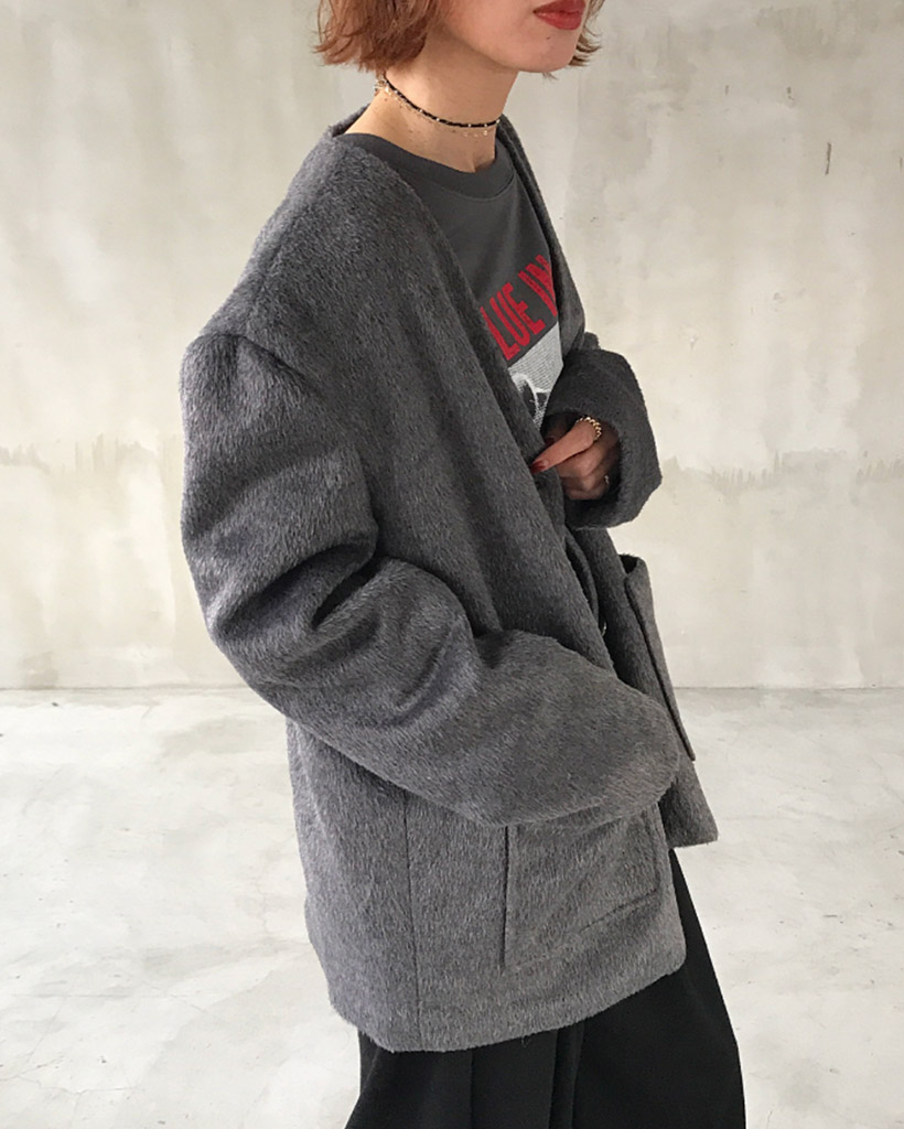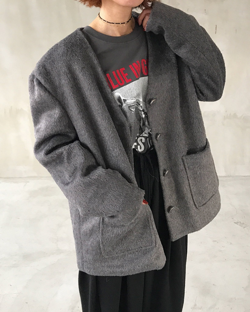 ノーカラーヘアリージャケット