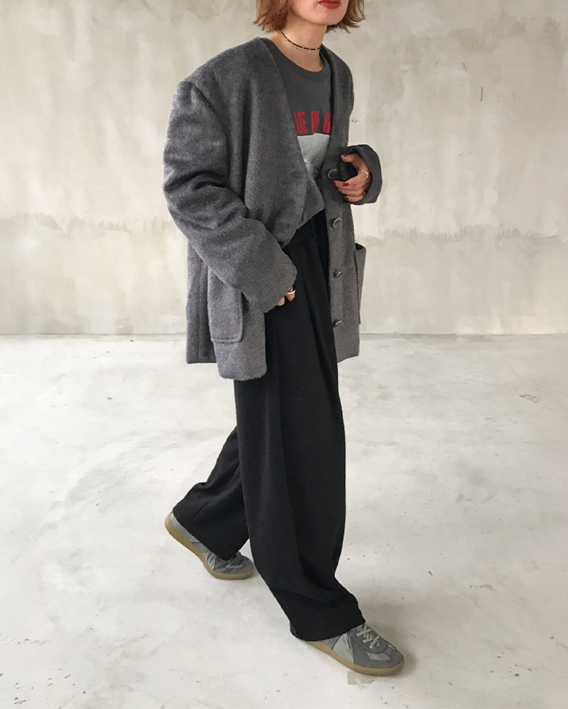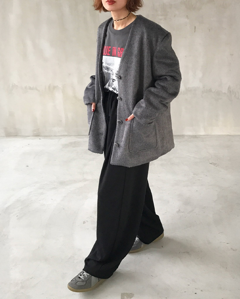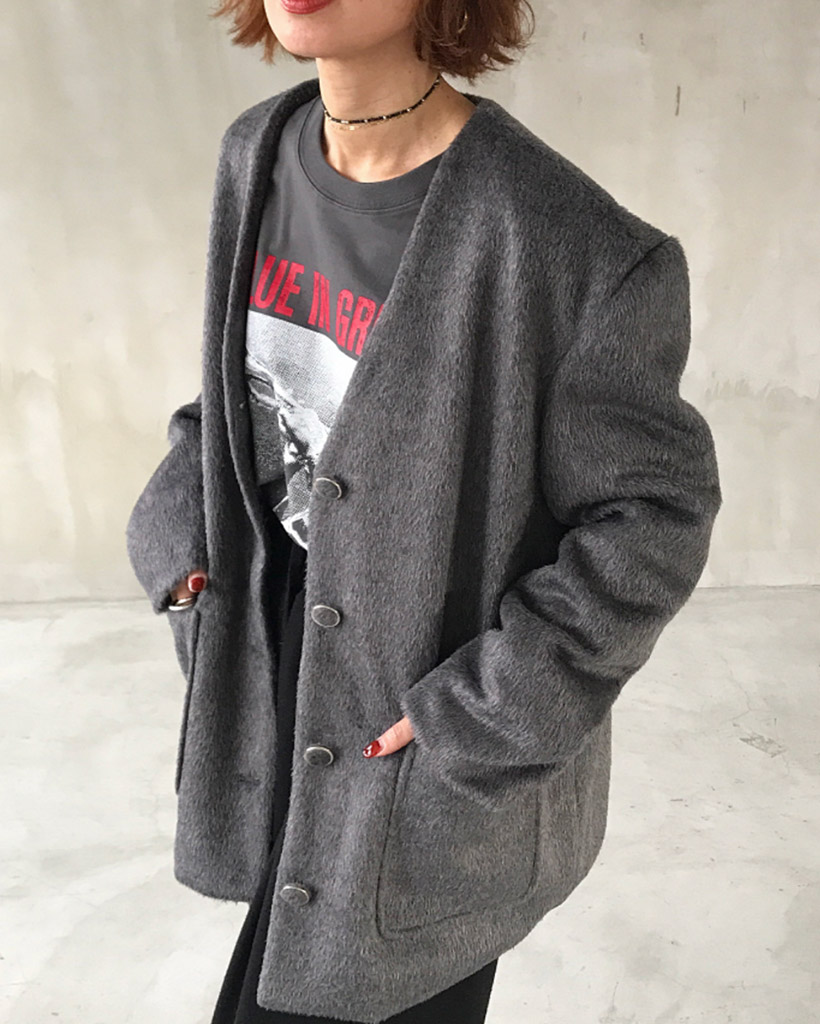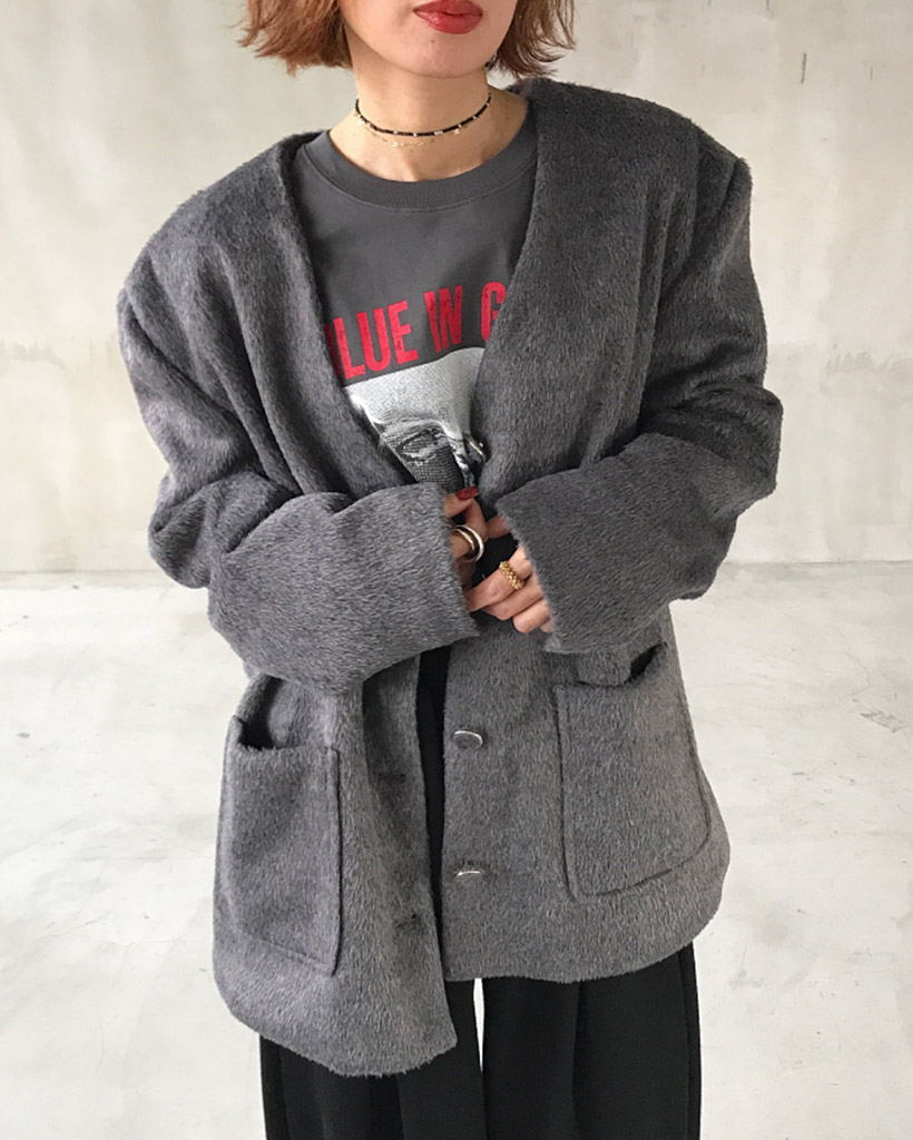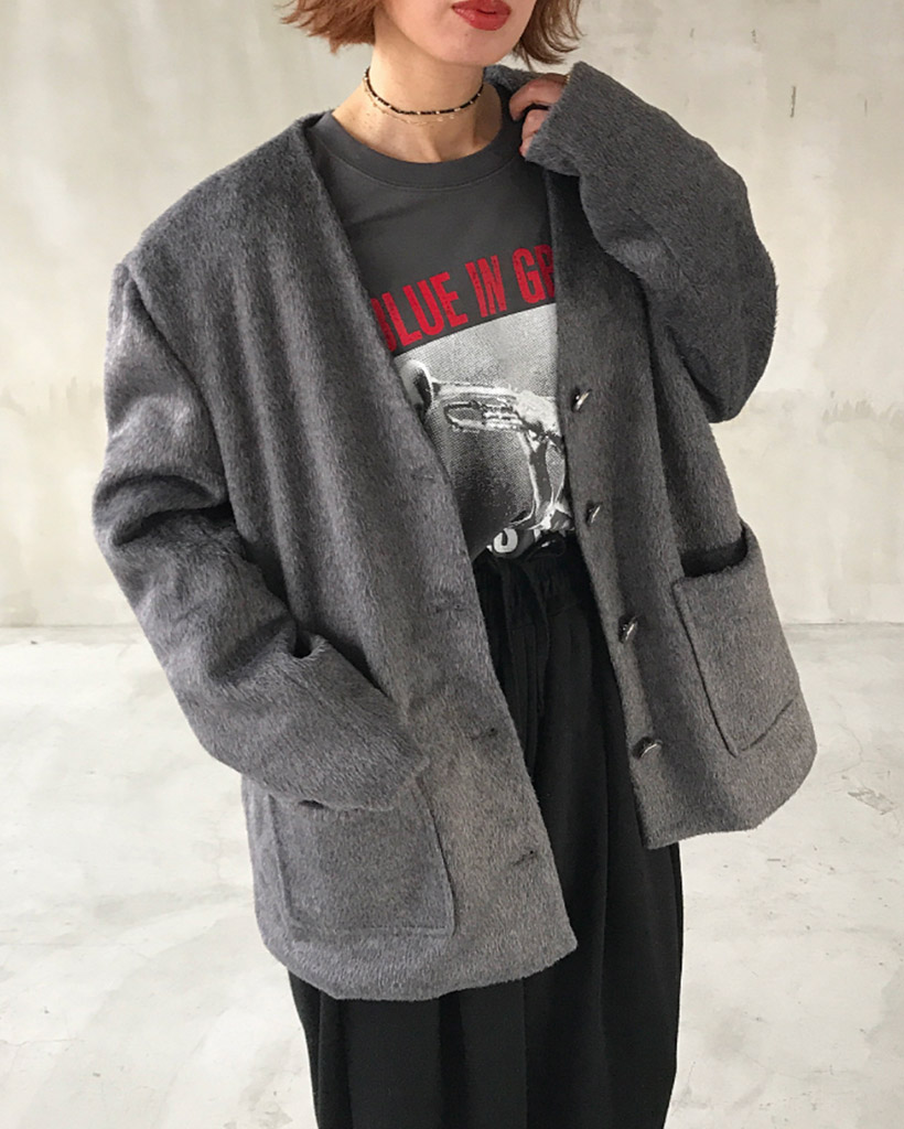 ノーカラーヘアリージャケット