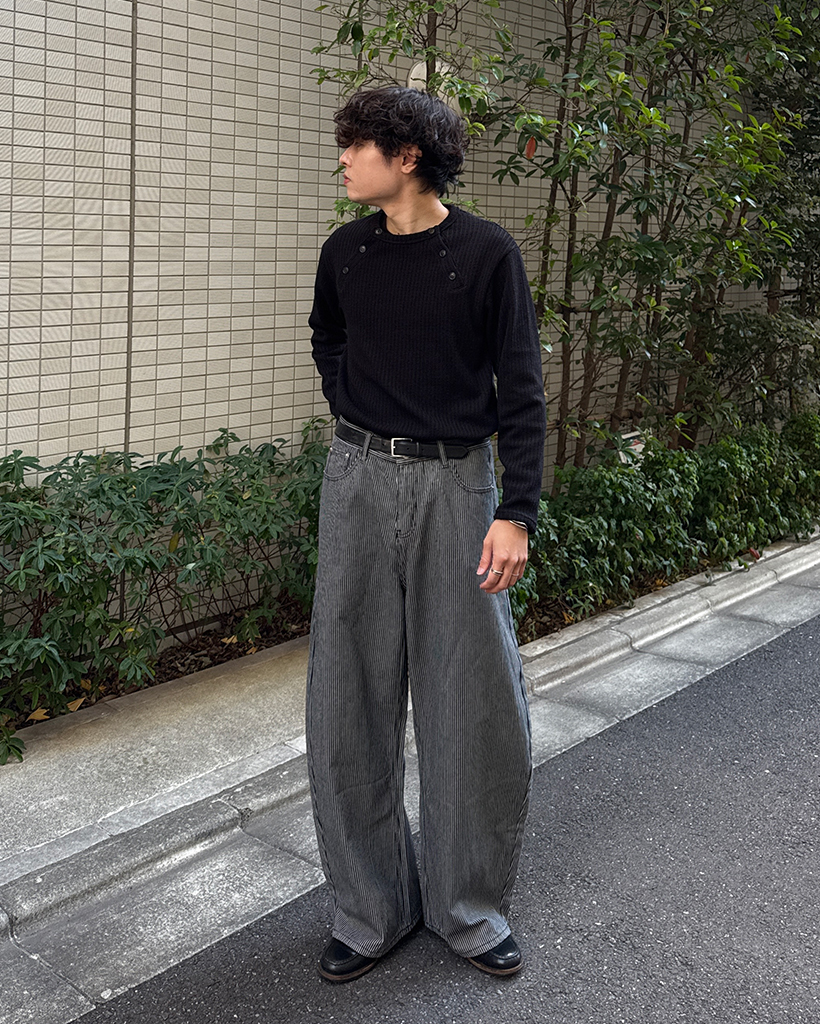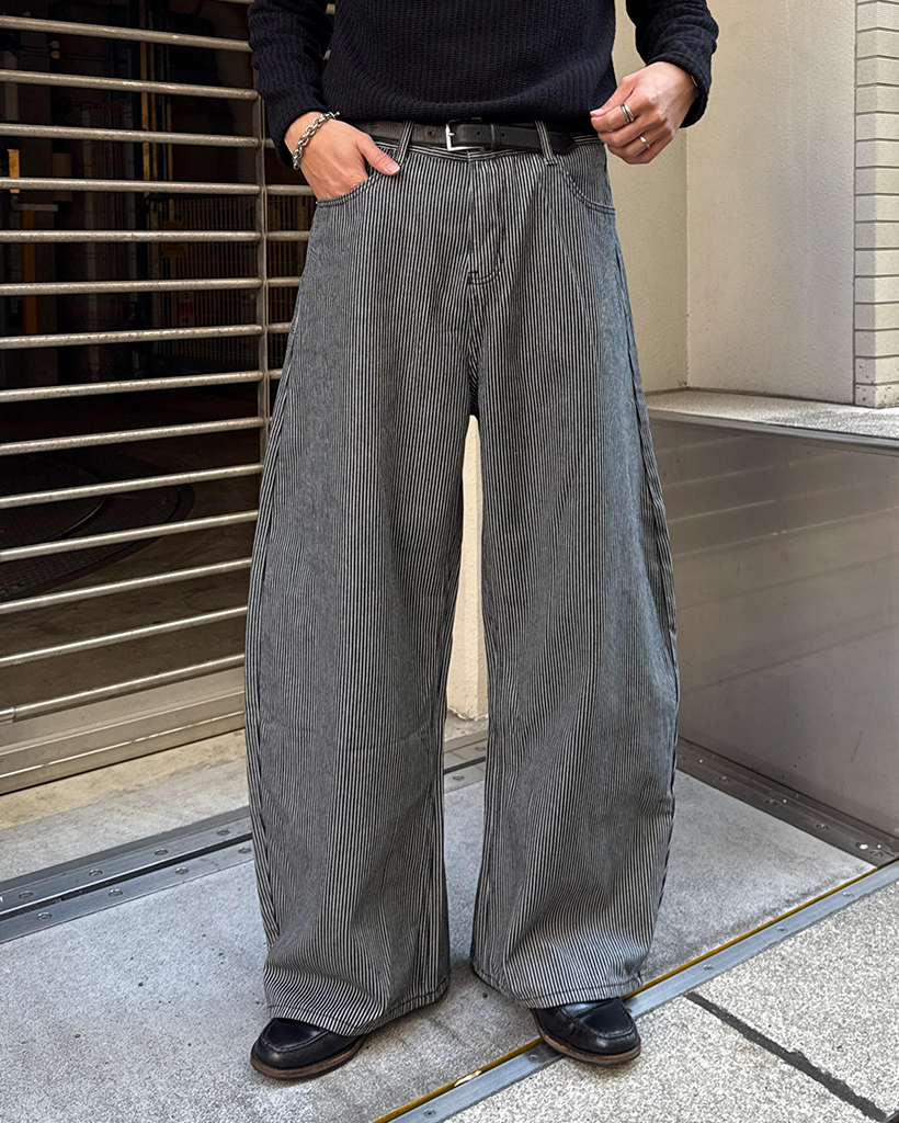 ピンストライプワイドデニムパンツ