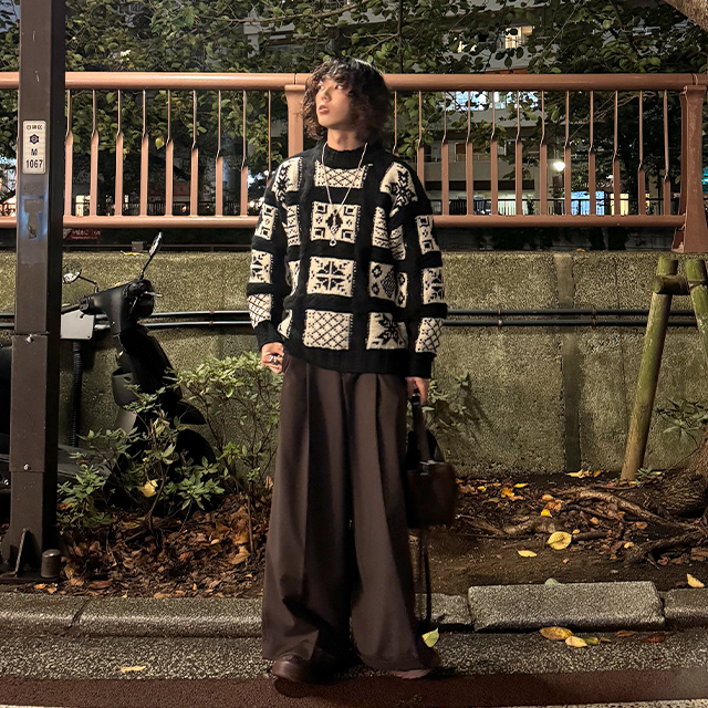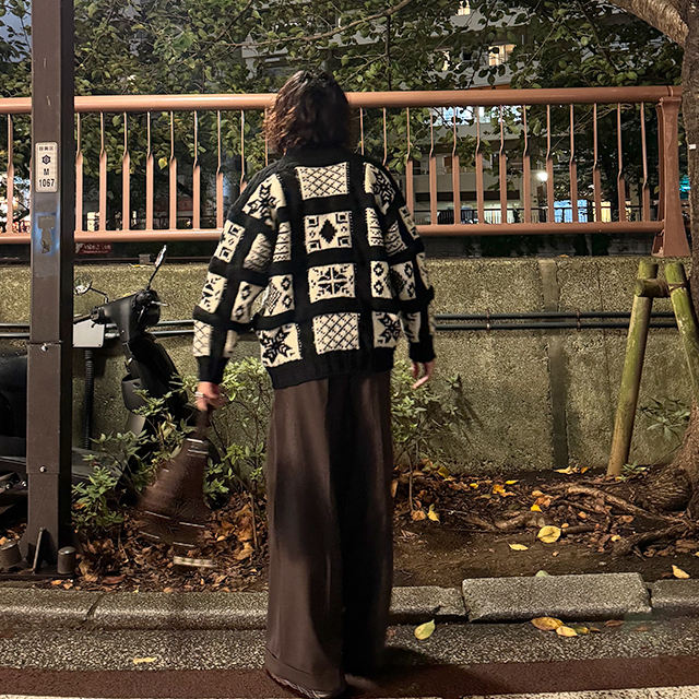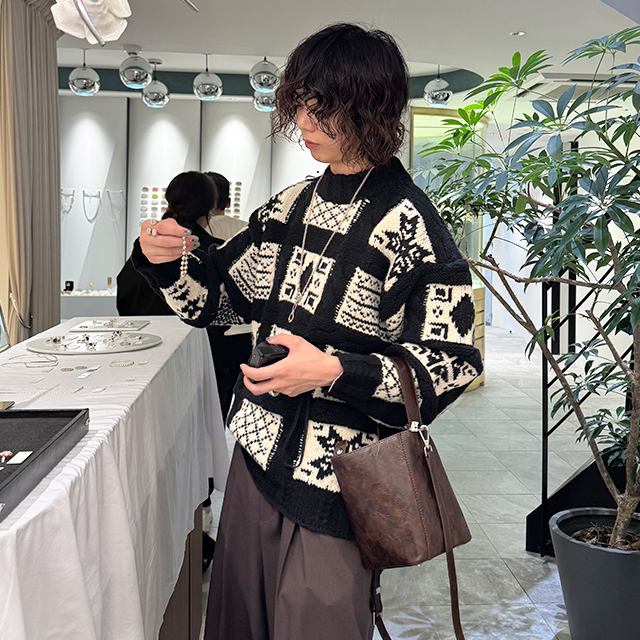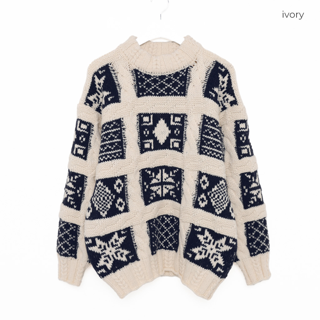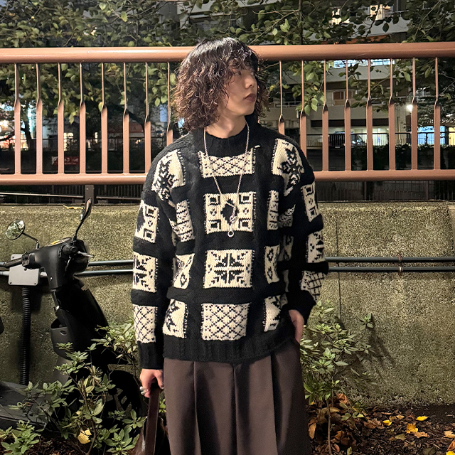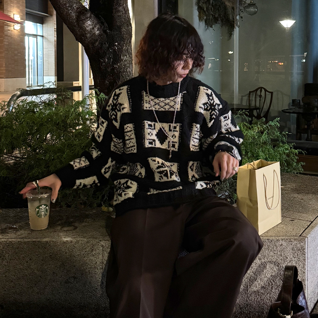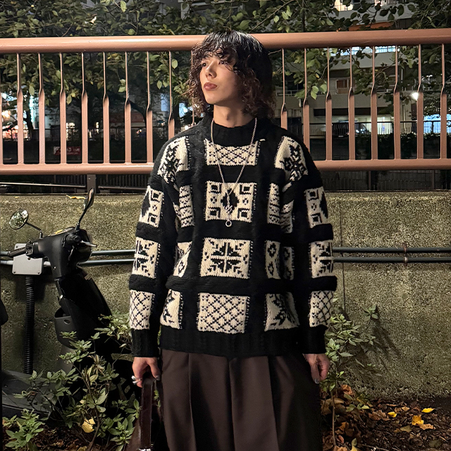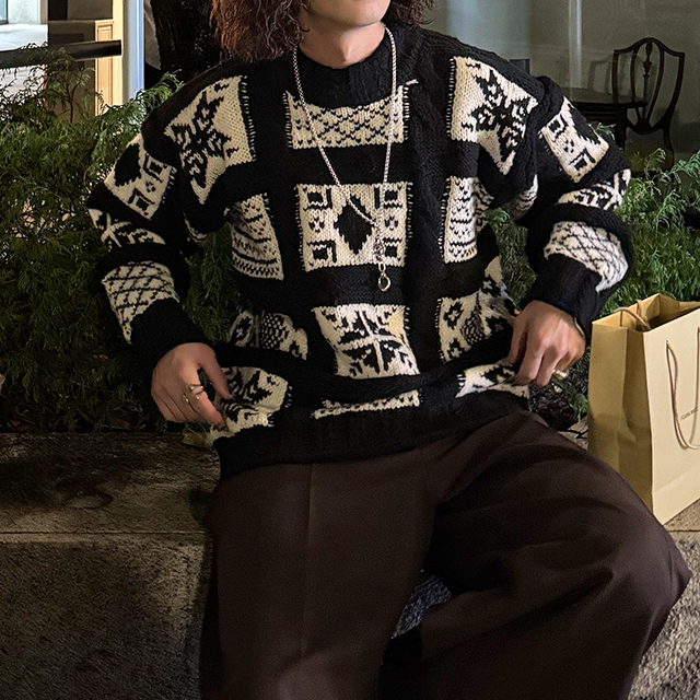 (ユニセックス)ノルディック柄ルーズフィットニット