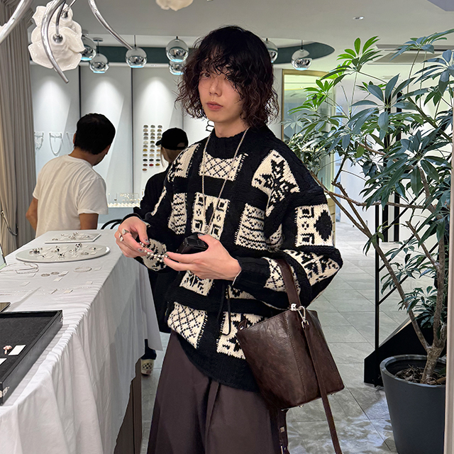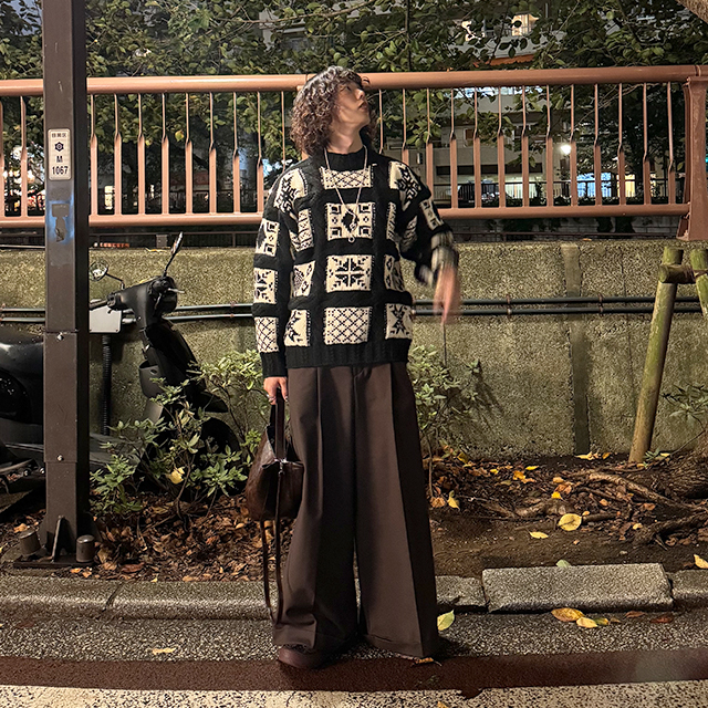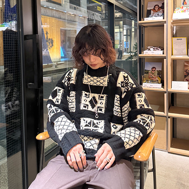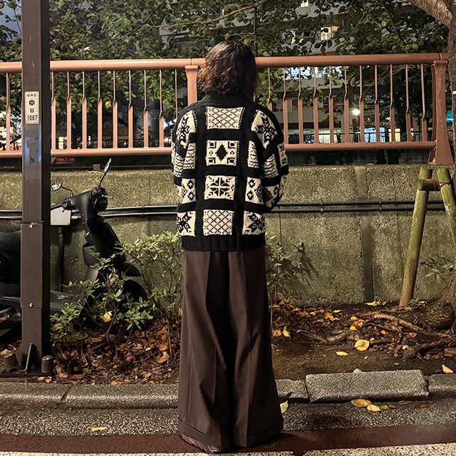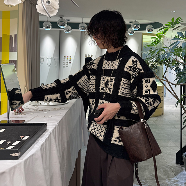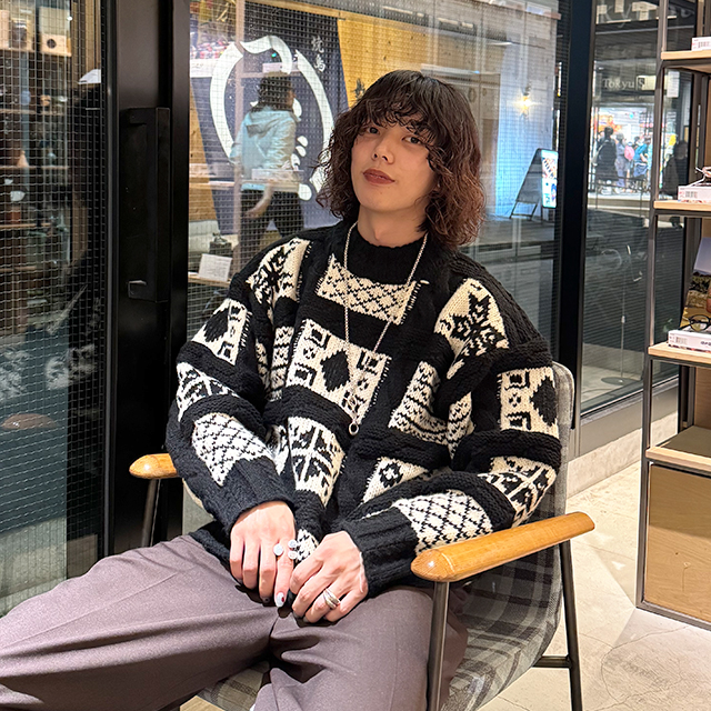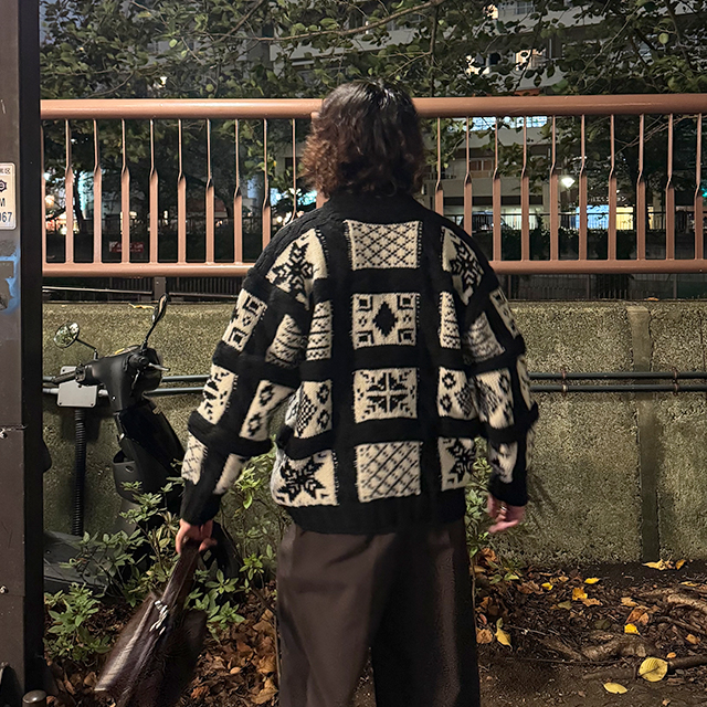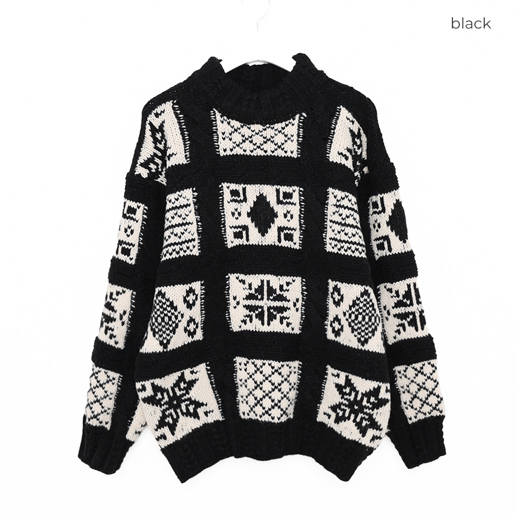 (ユニセックス)ノルディック柄ルーズフィットニット