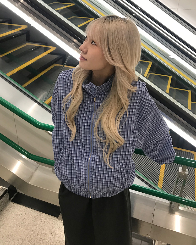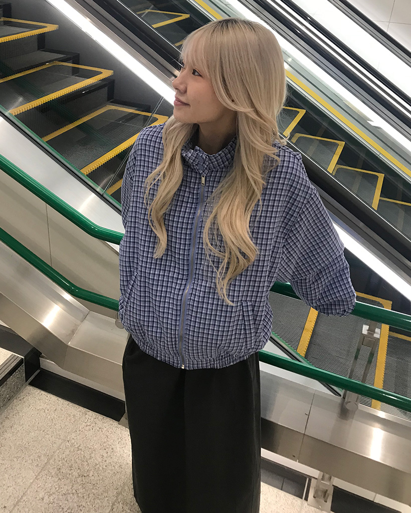 ギンガムチェックハーフジッププルオーバー