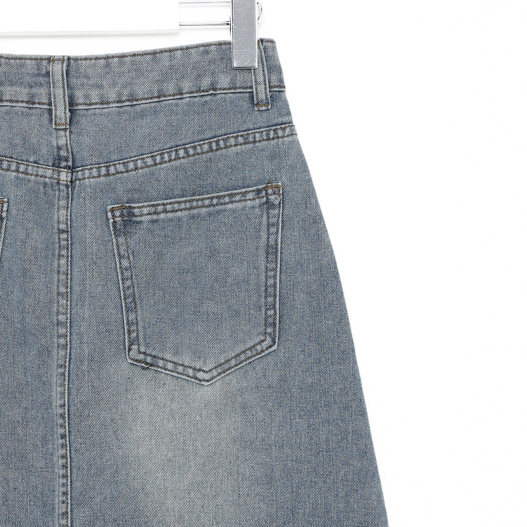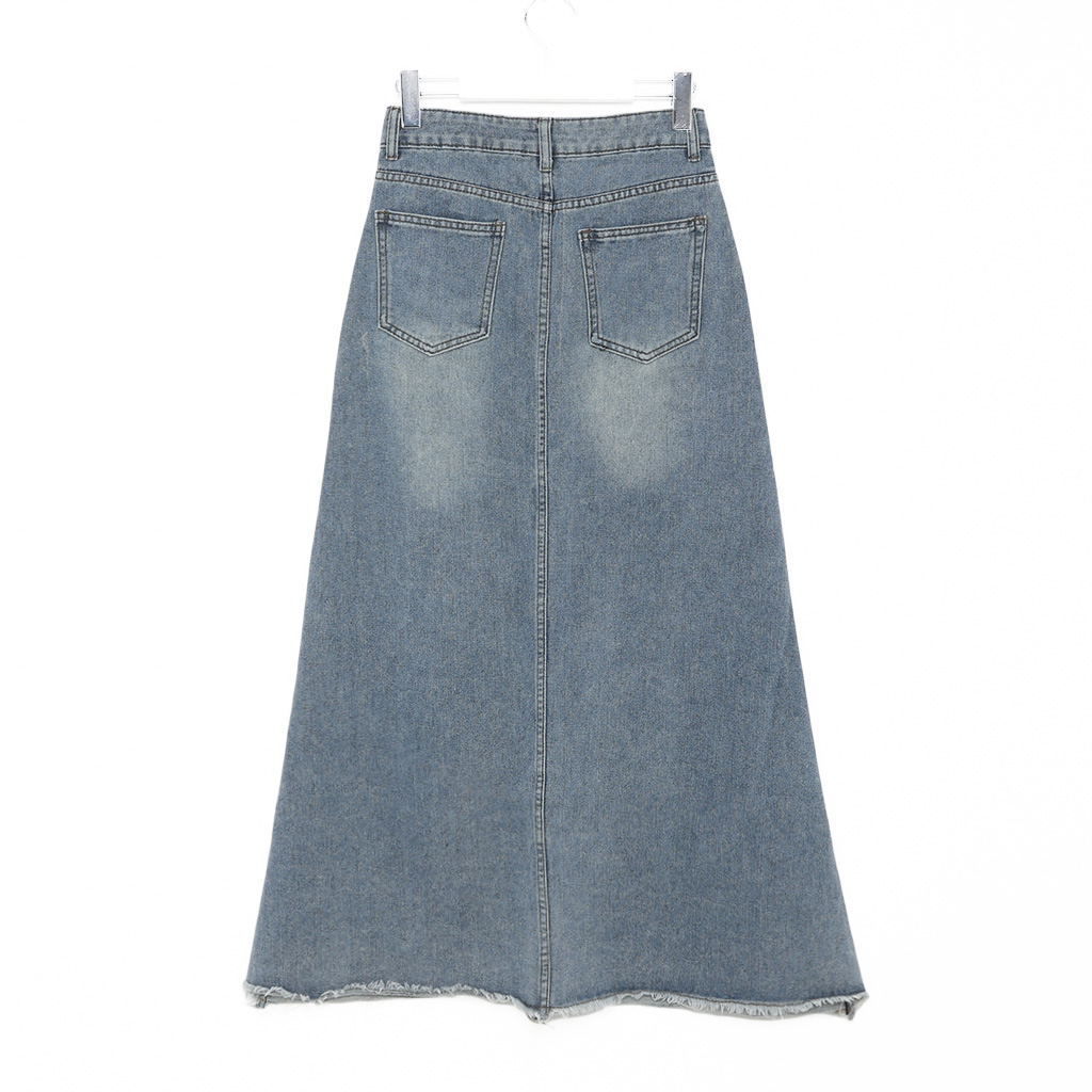 ボタンポケットウォッシングデニムロングスカート