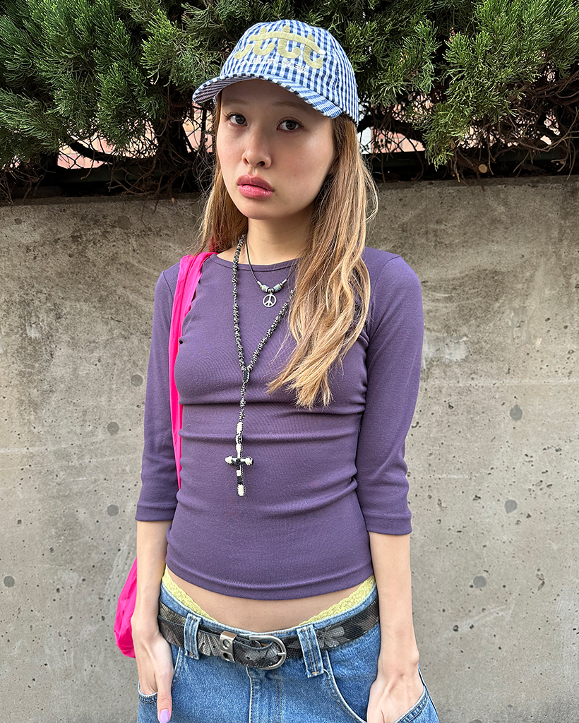 ジュエルネッククロップドスリーブTシャツ