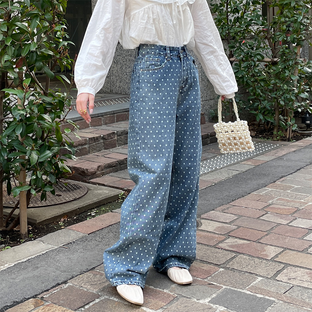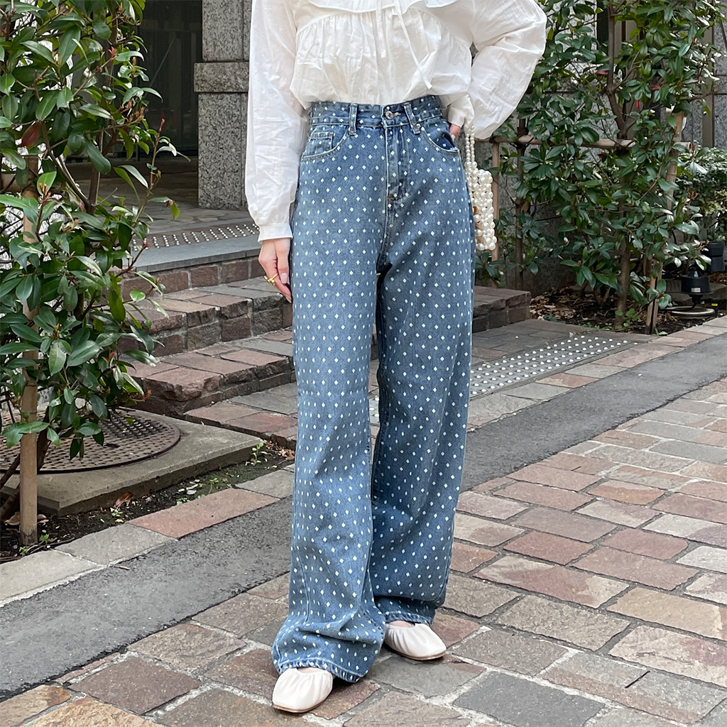ドットパターンデニムパンツ