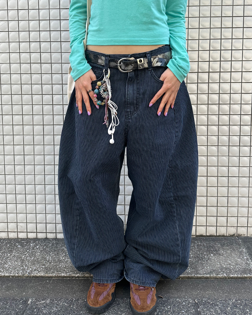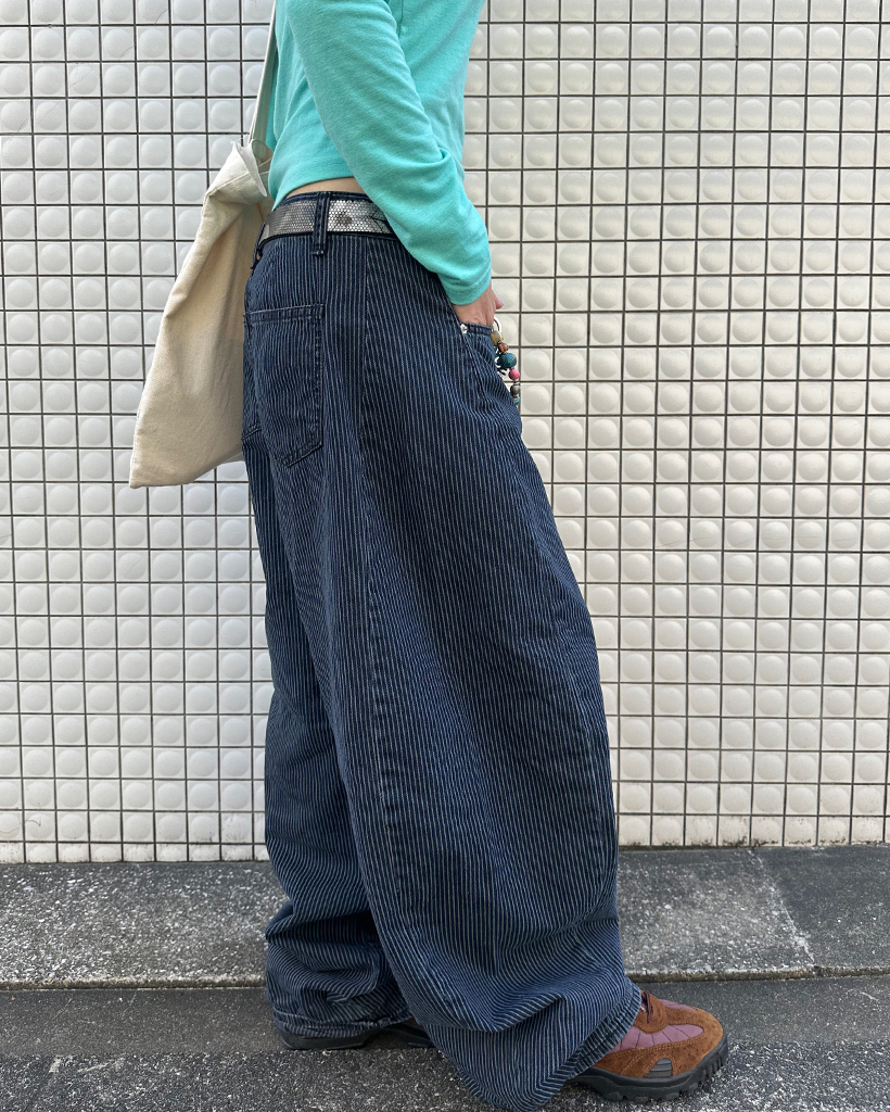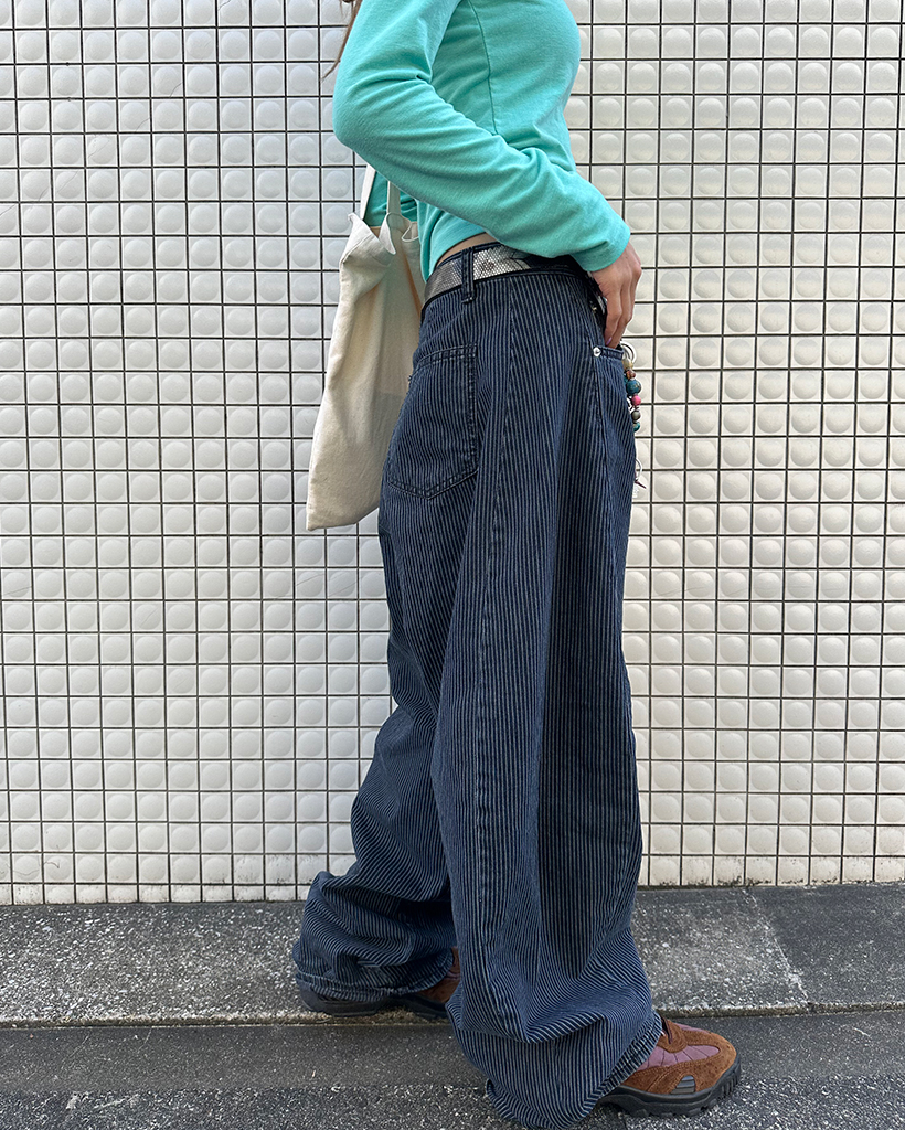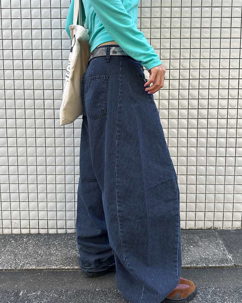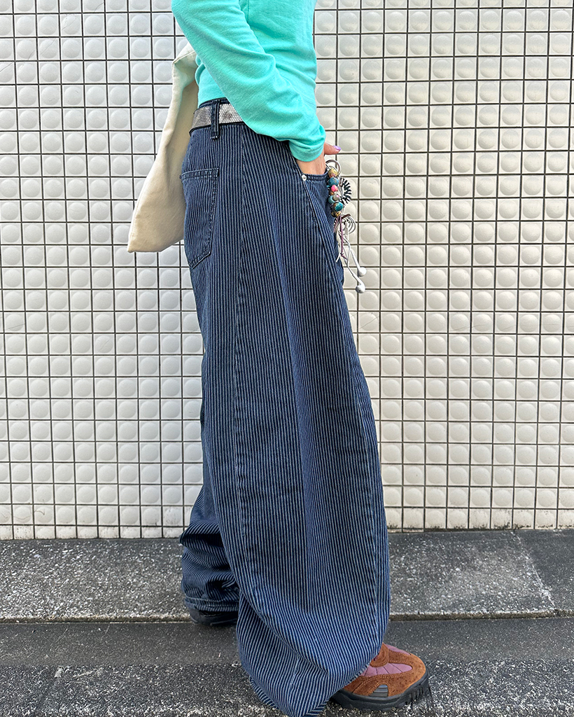 ストライプワイドサマーデニムパンツ