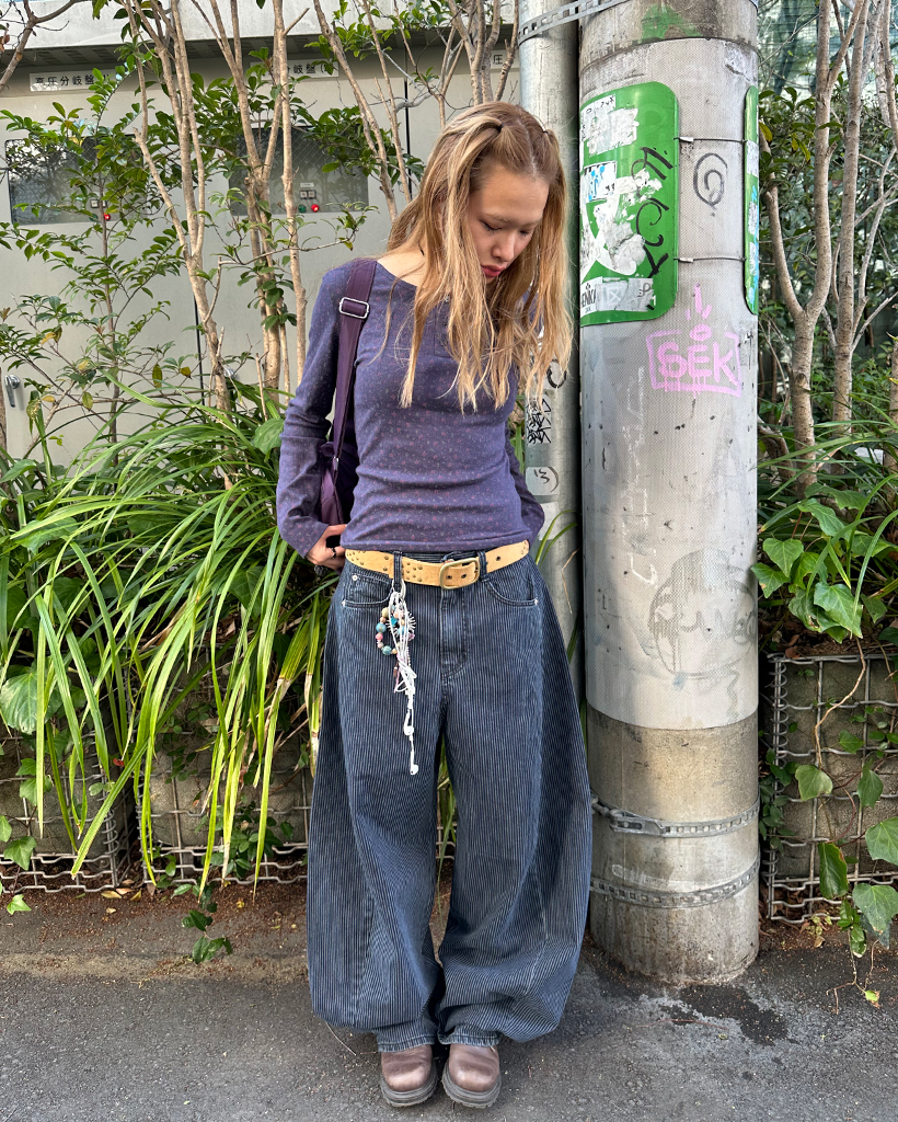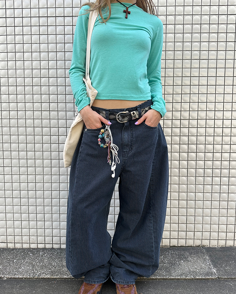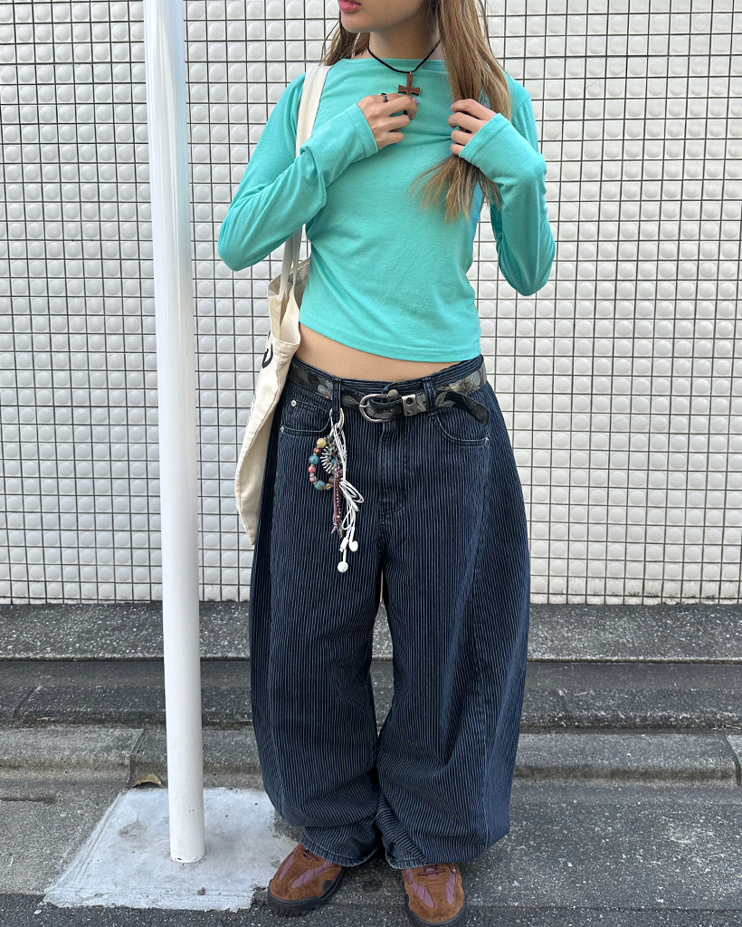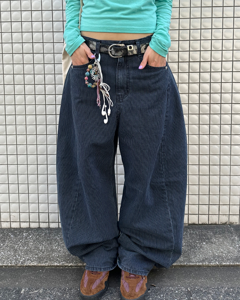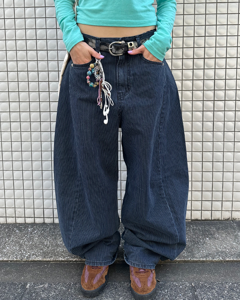 ストライプワイドサマーデニムパンツ