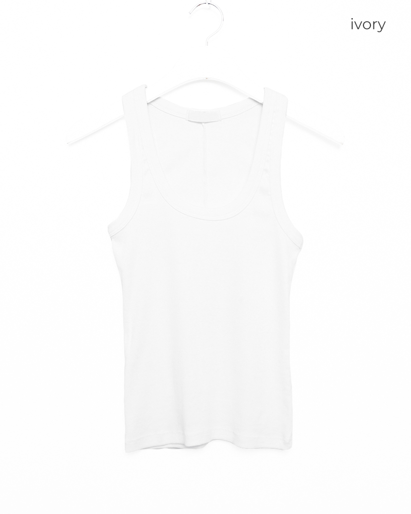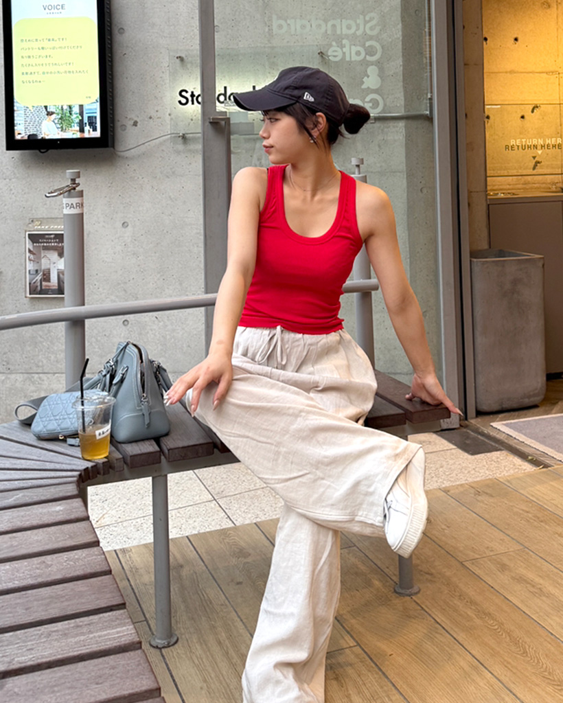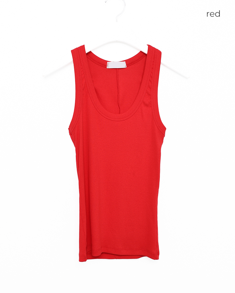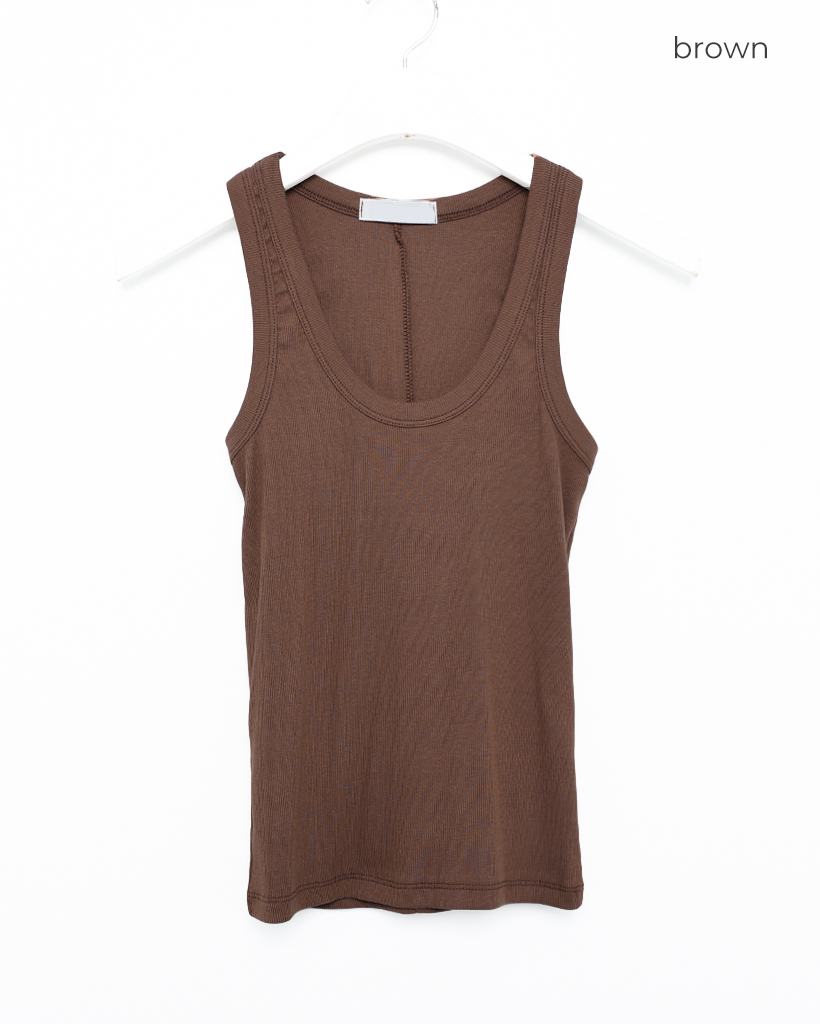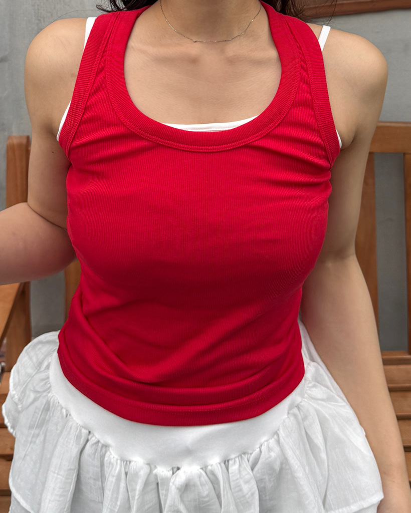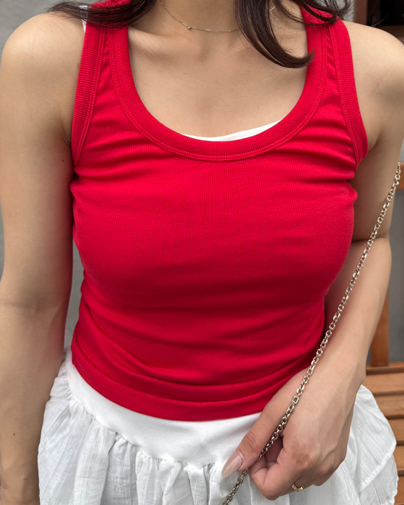 Uネックリブニットノースリーブ