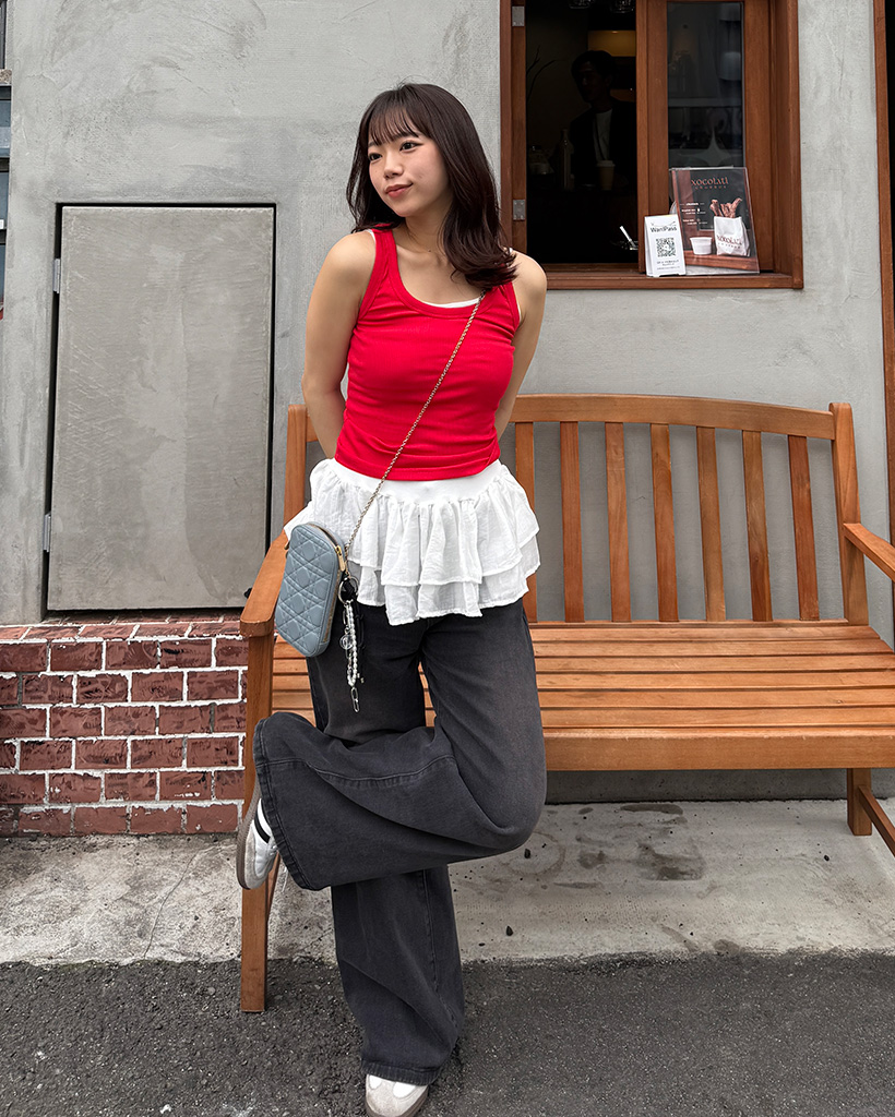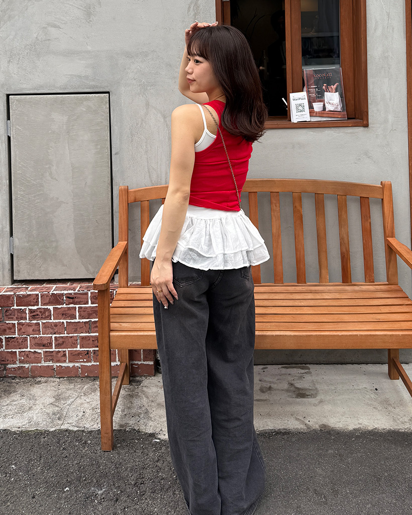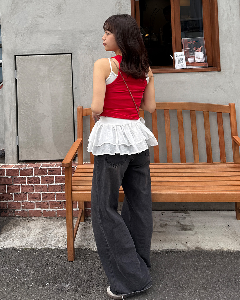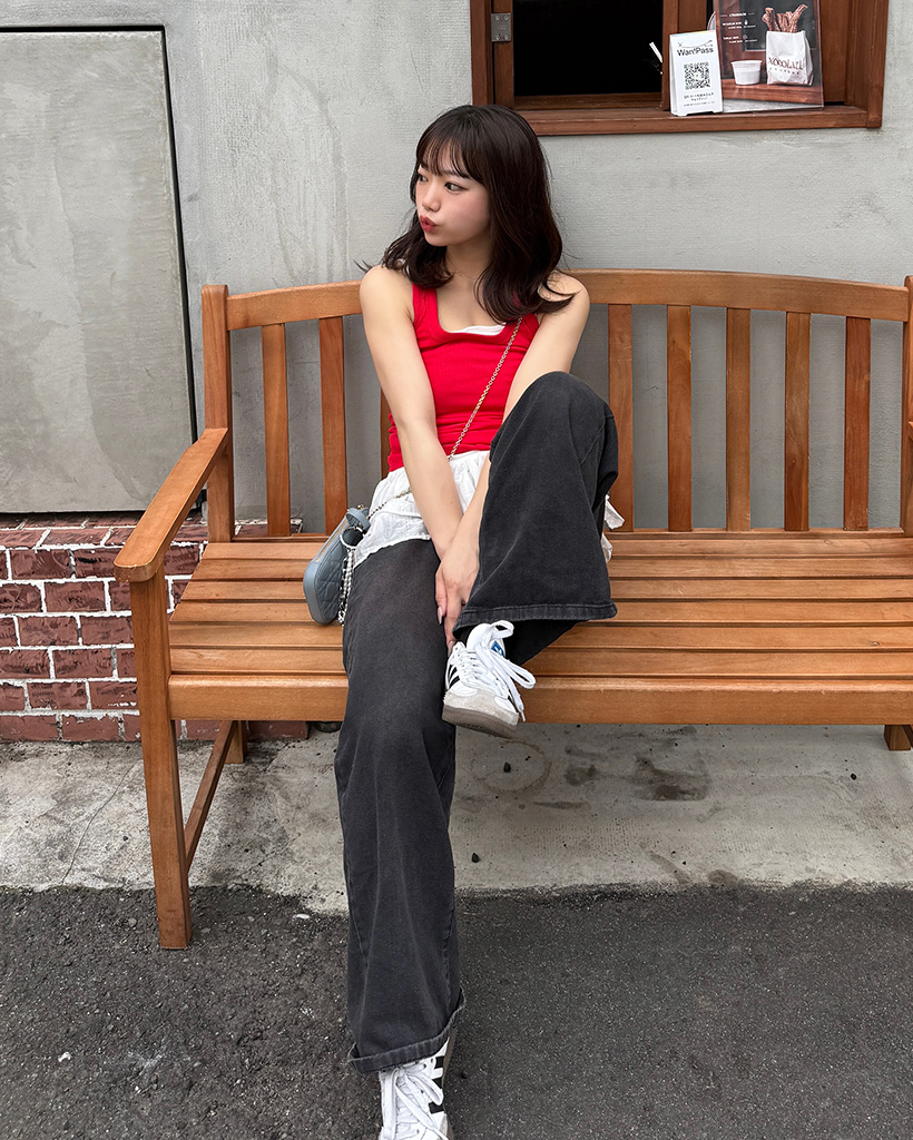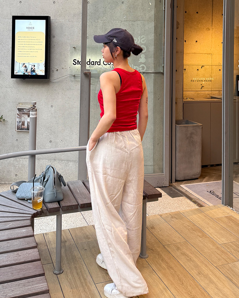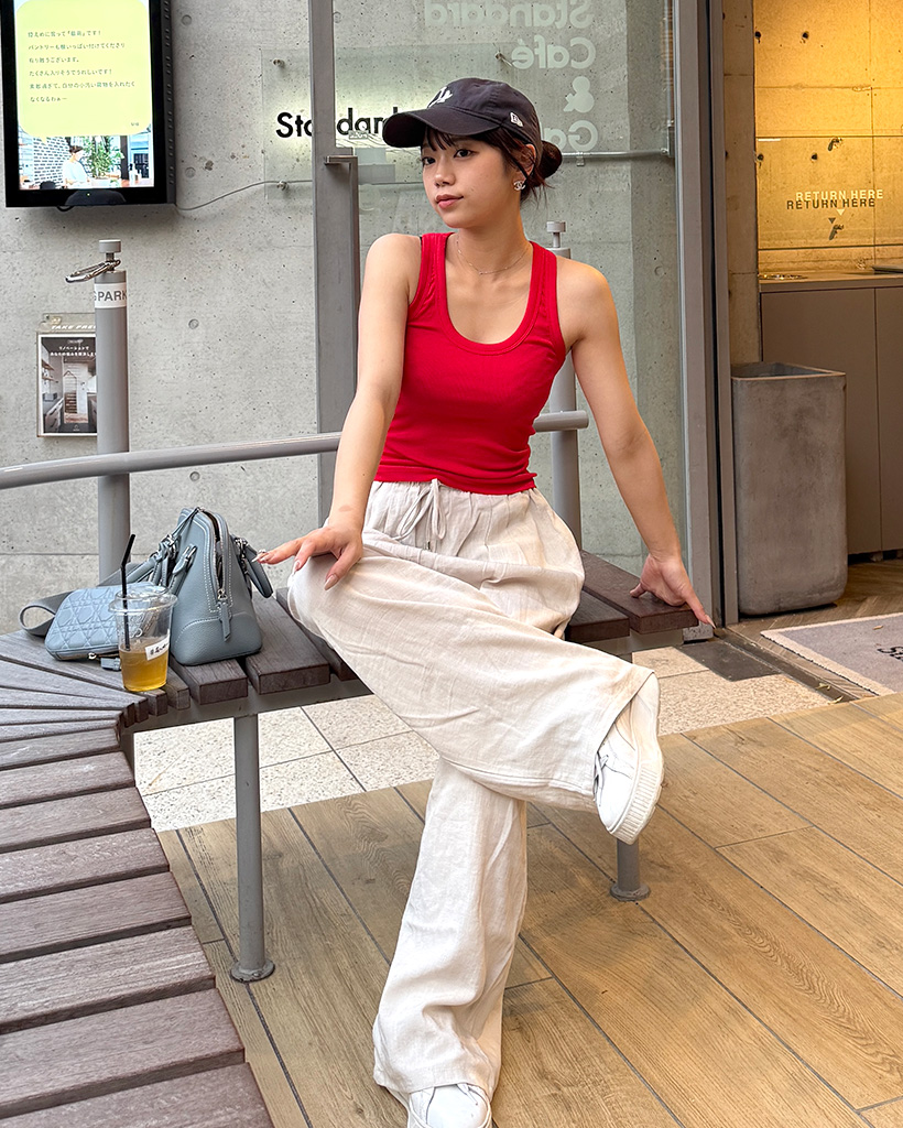 Uネックリブニットノースリーブ