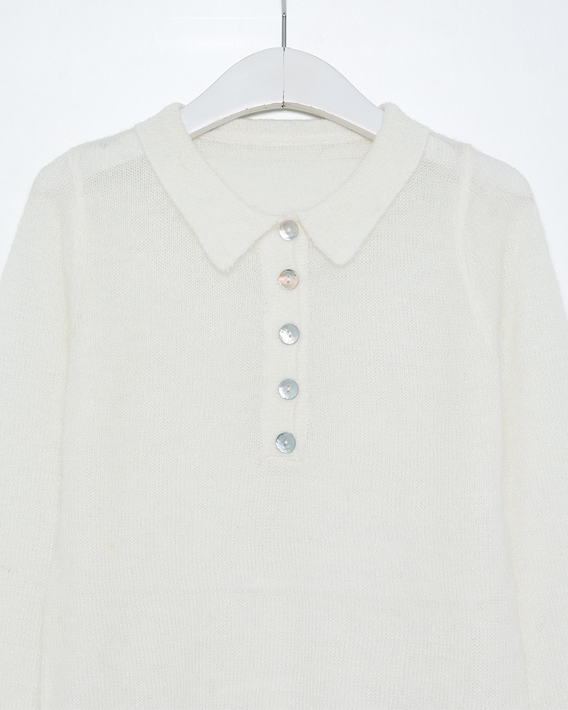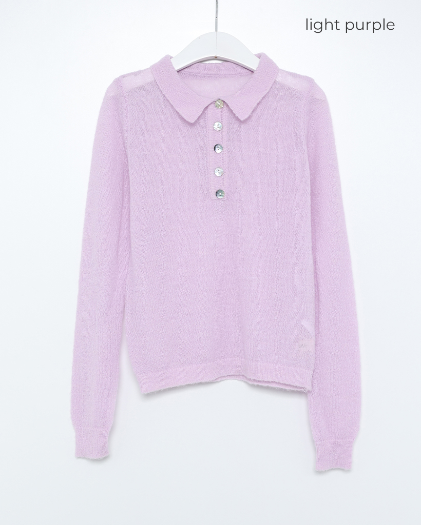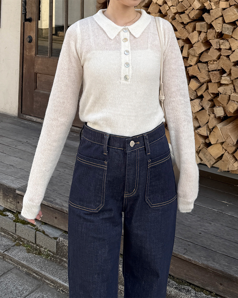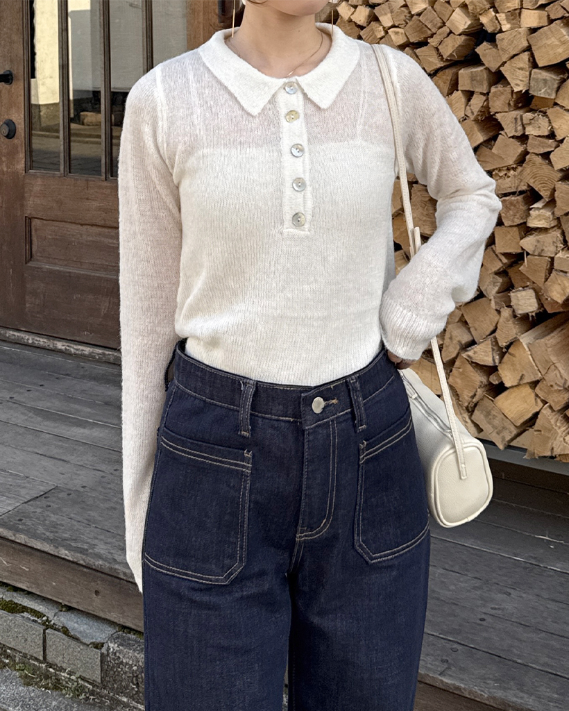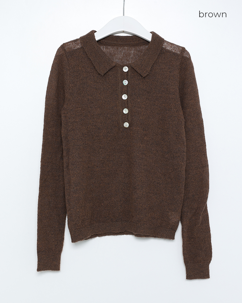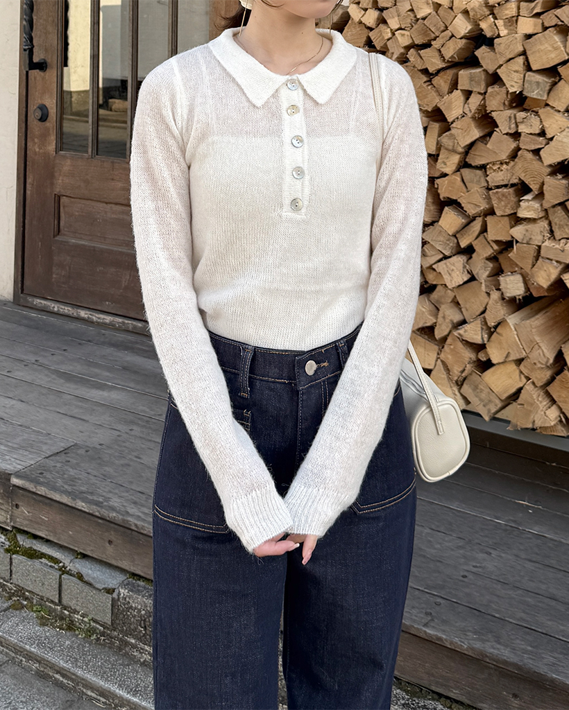 シースルーハーフオープンカラーニット