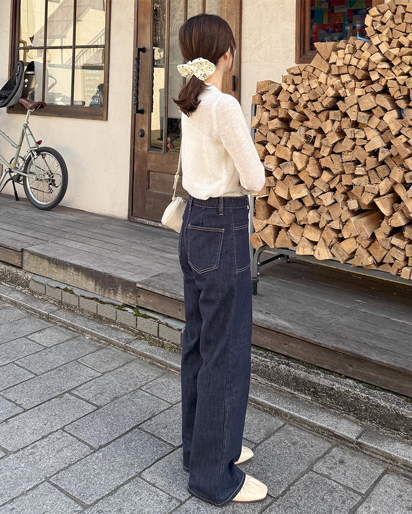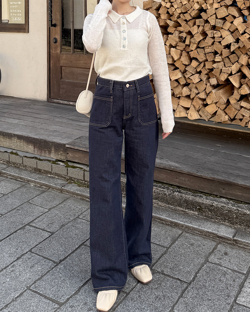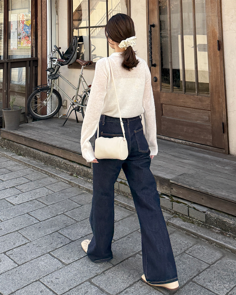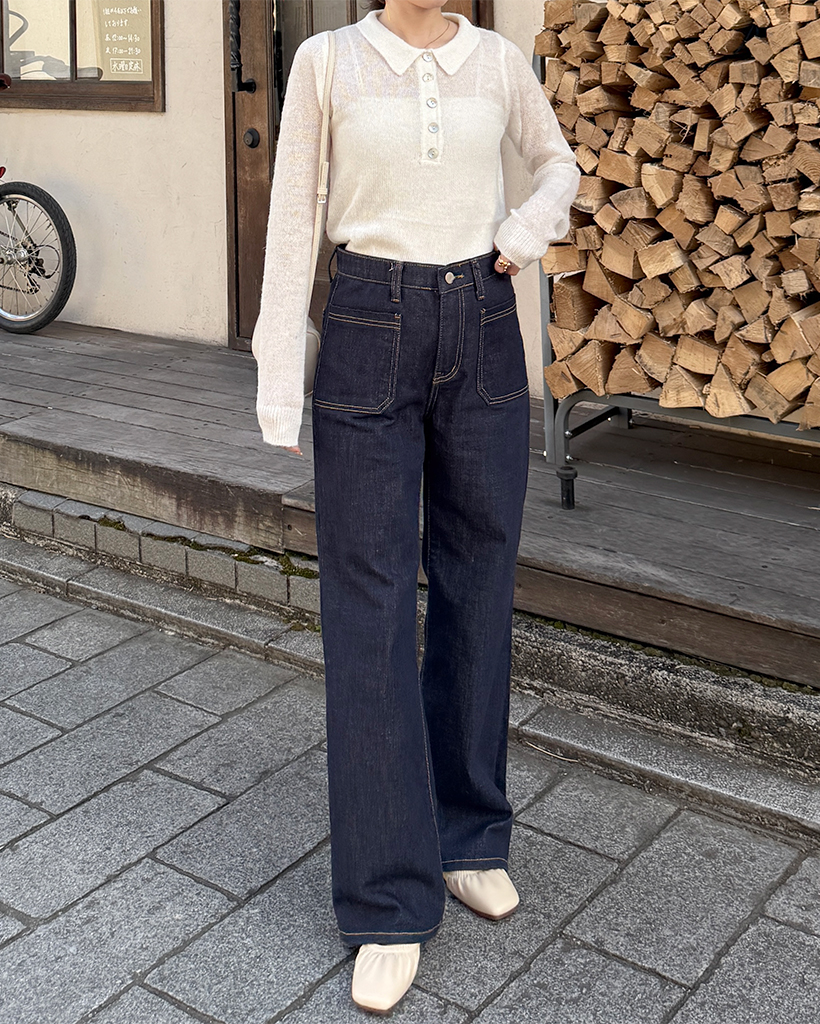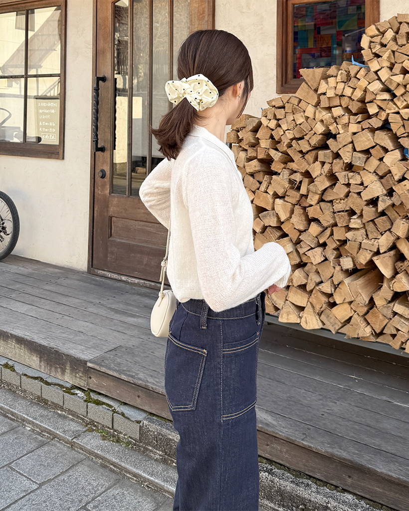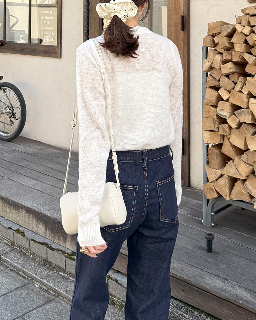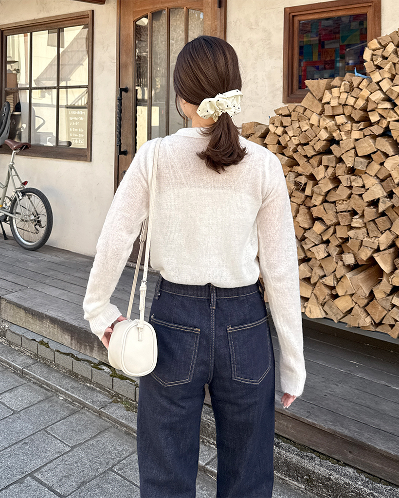 シースルーハーフオープンカラーニット