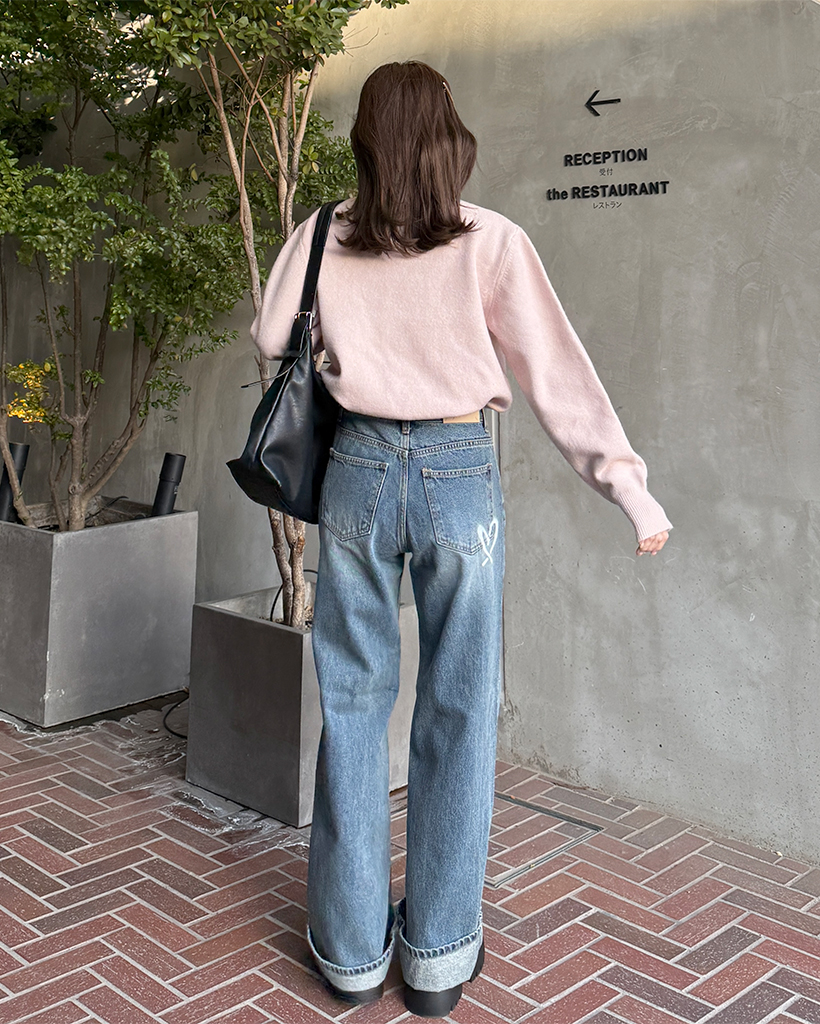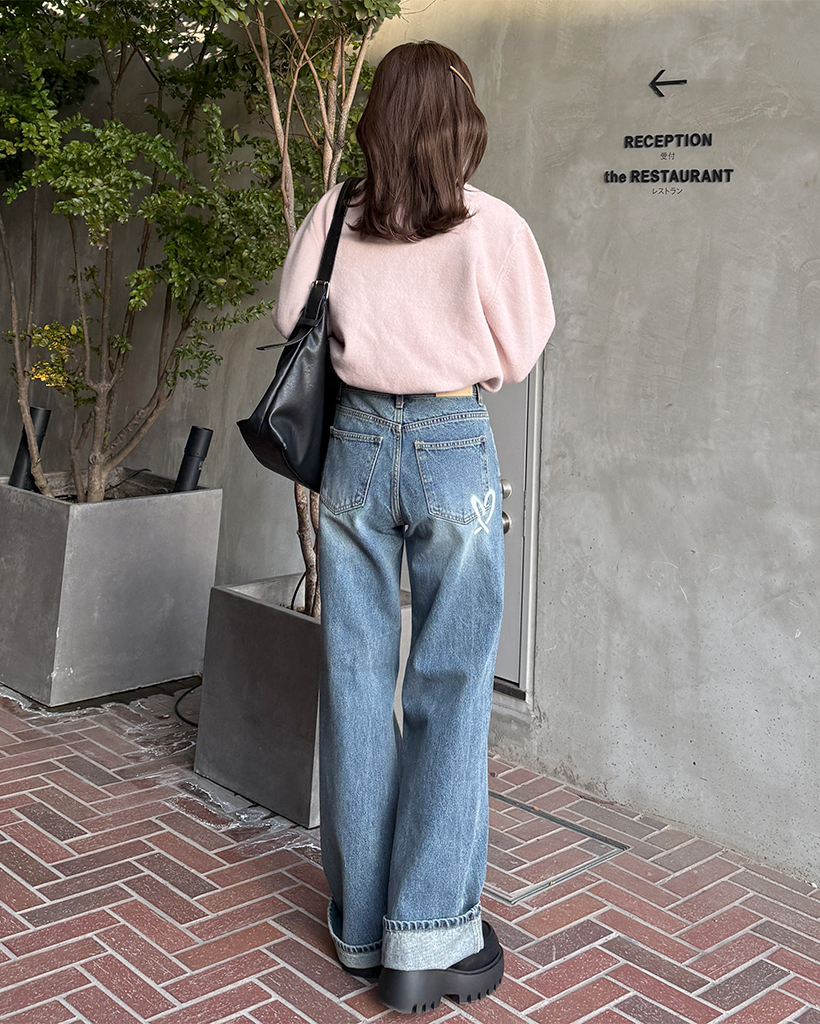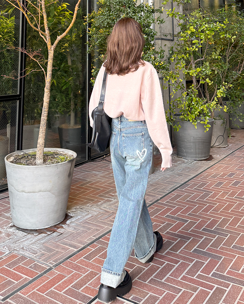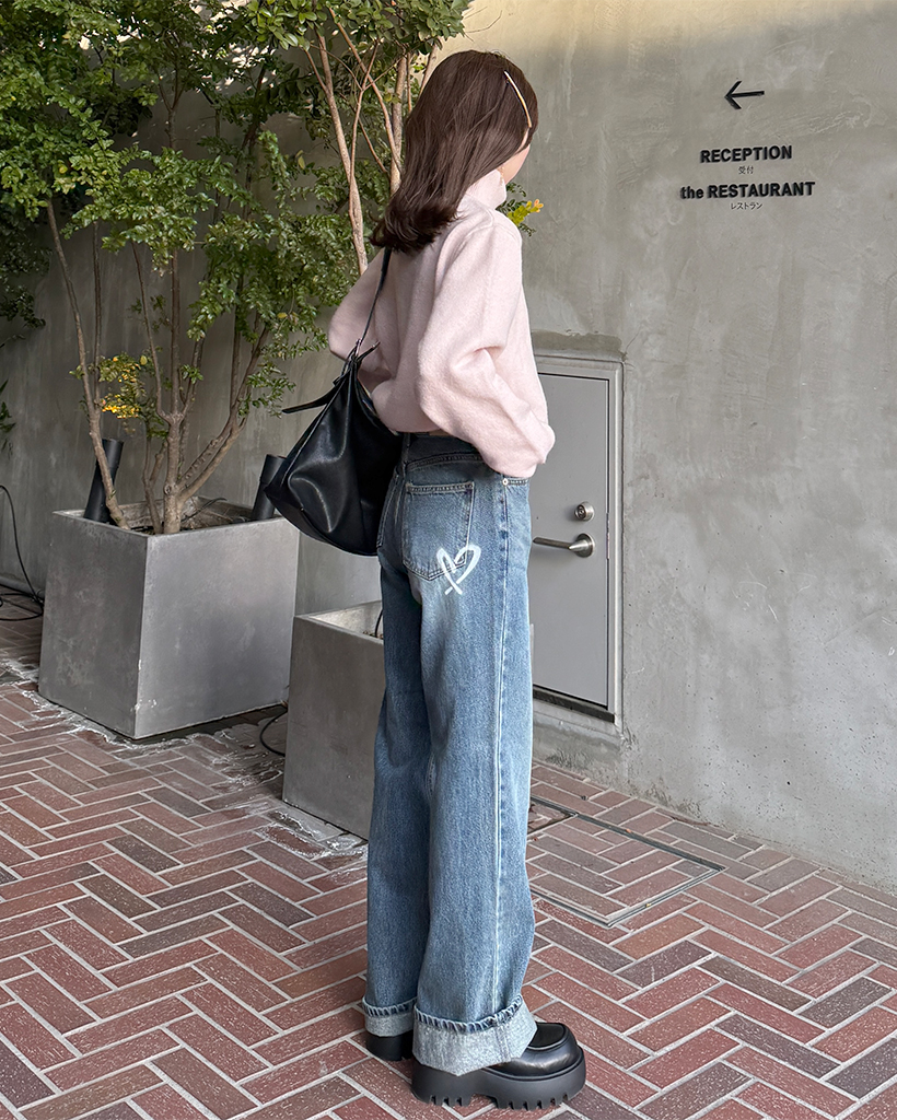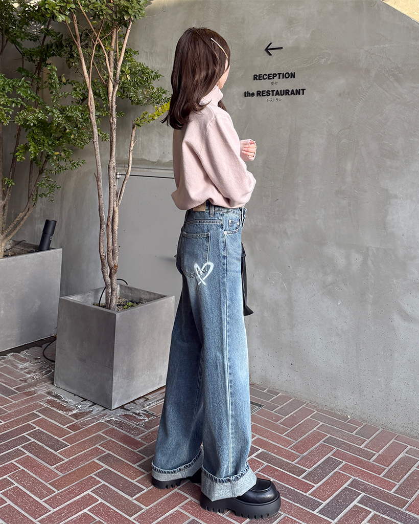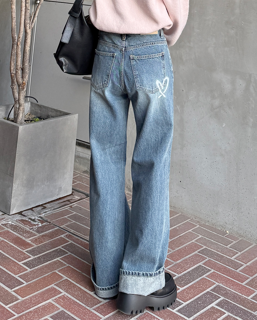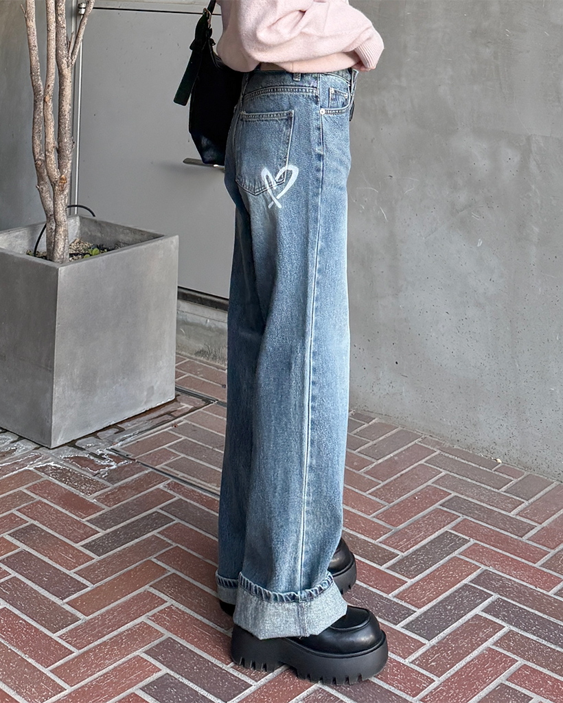 バックハートペイントデニムパンツ