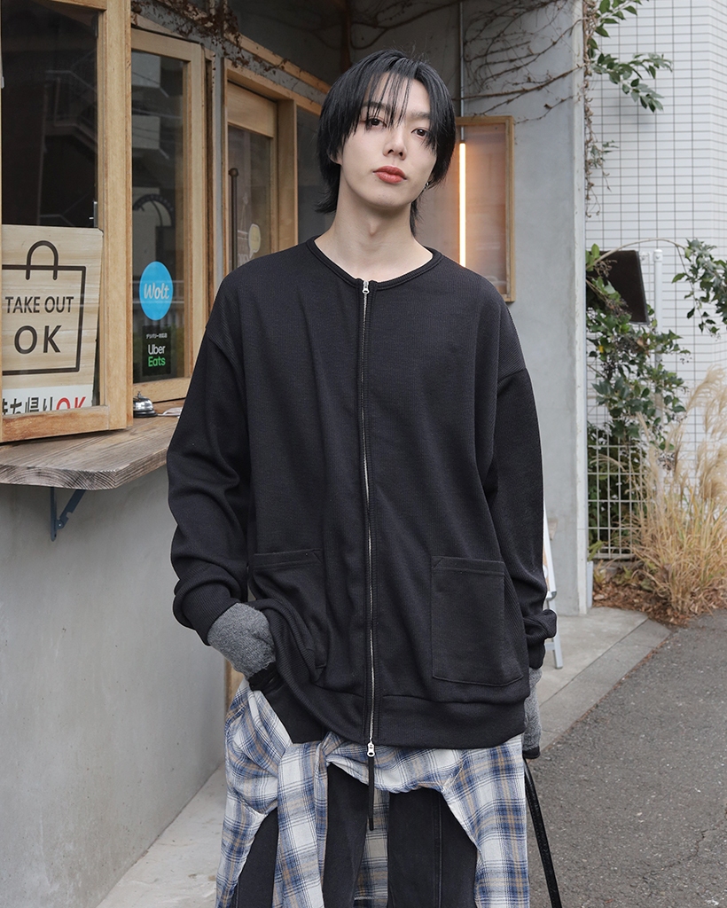 リブポケットニットジップアップ