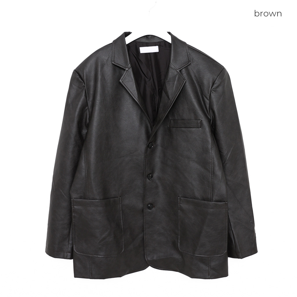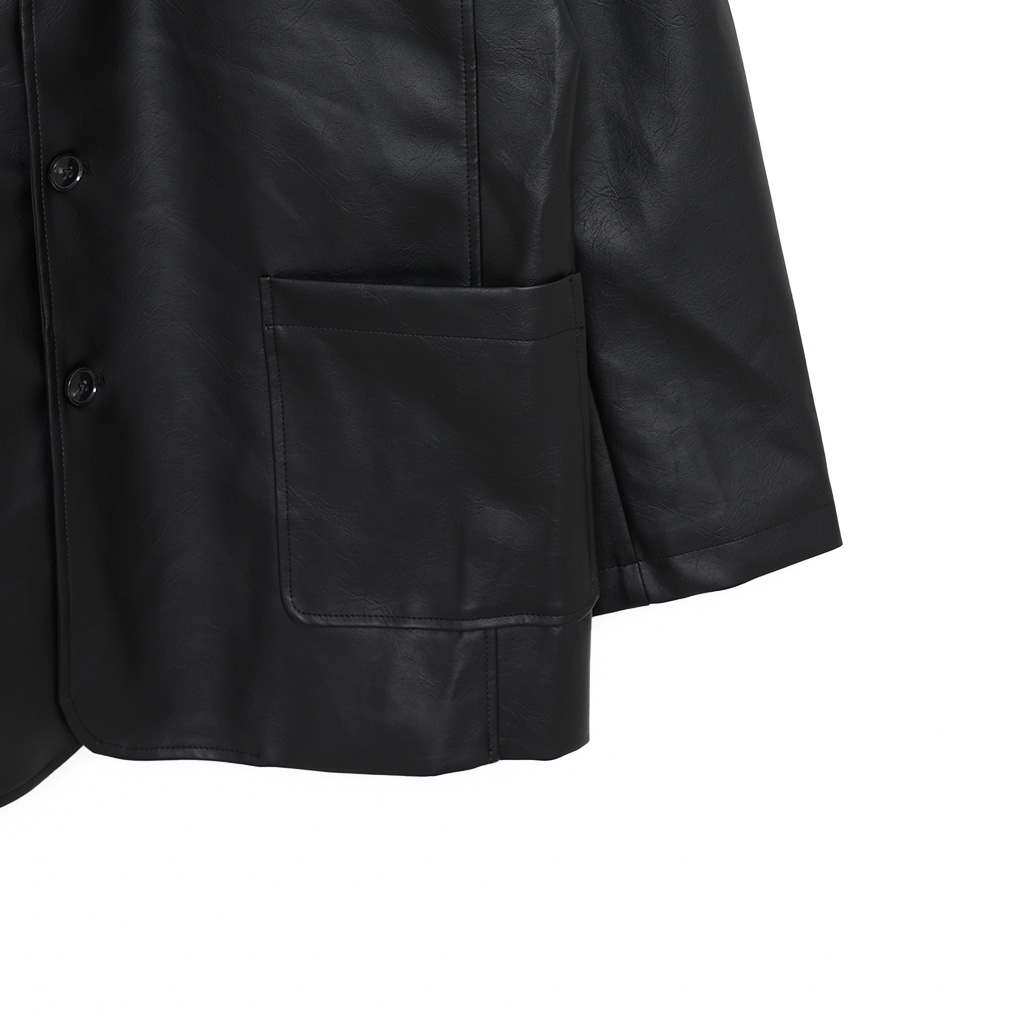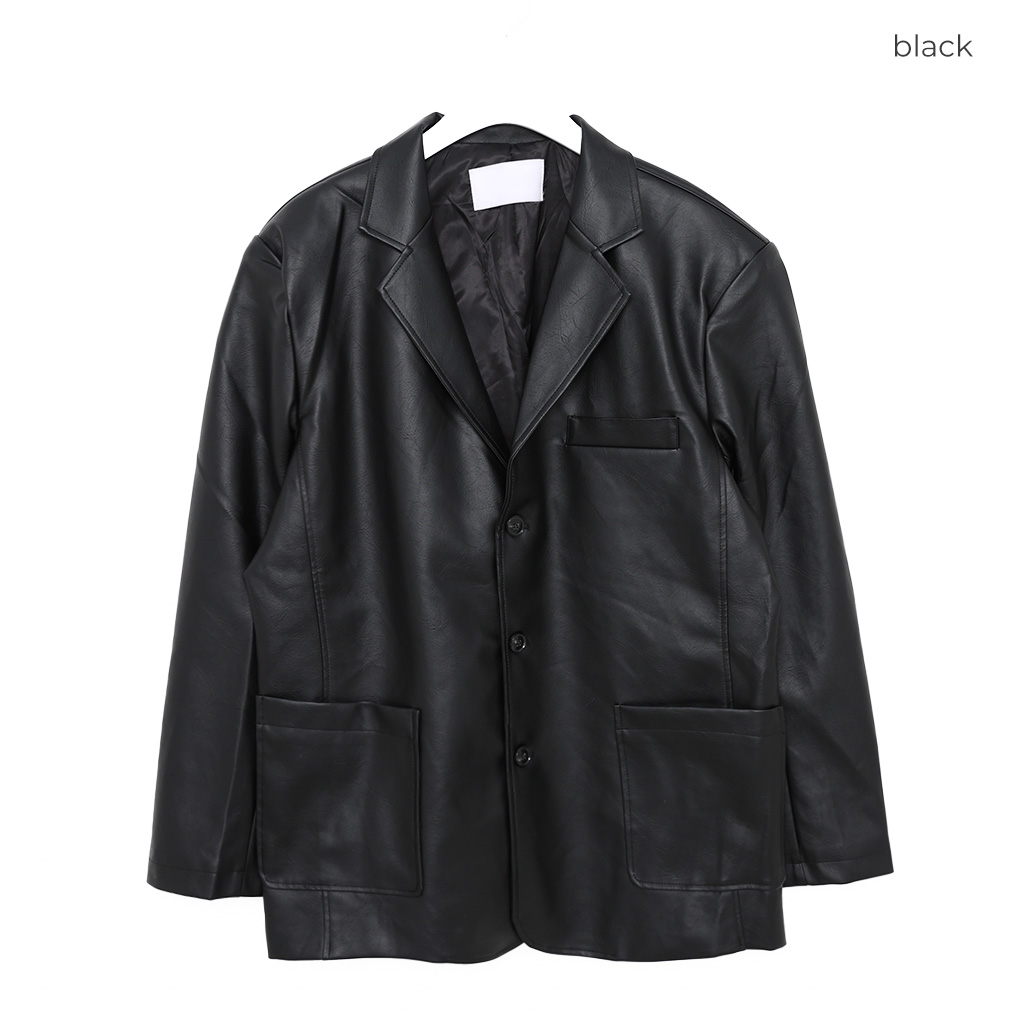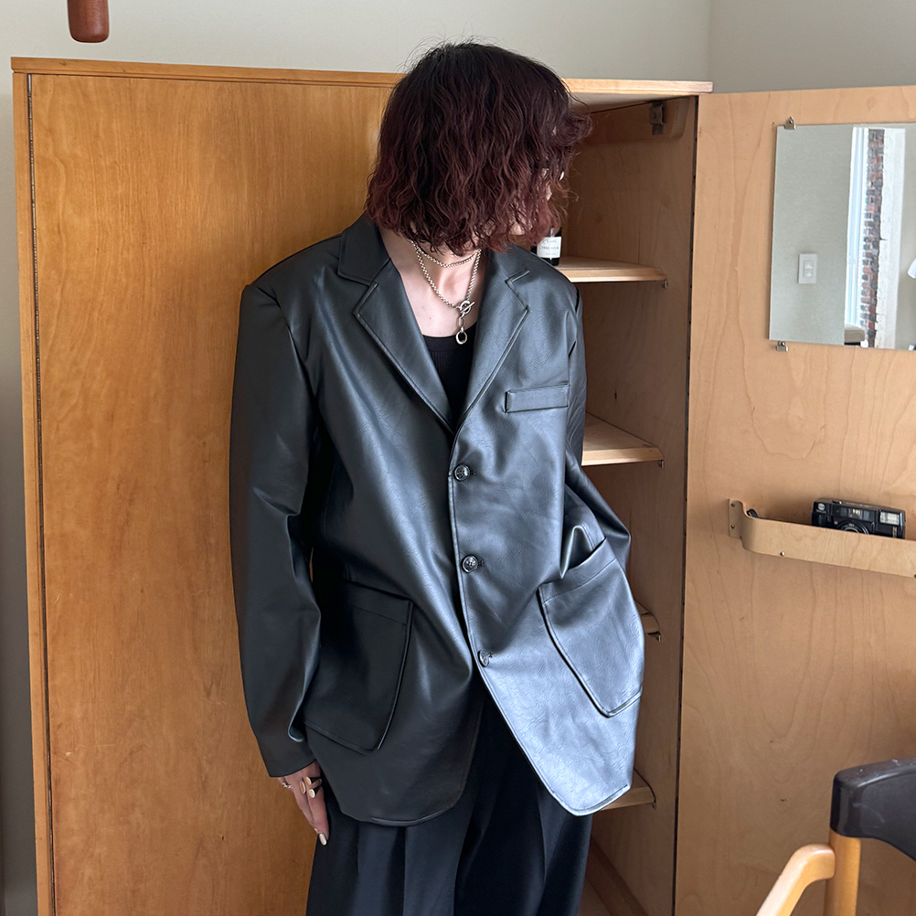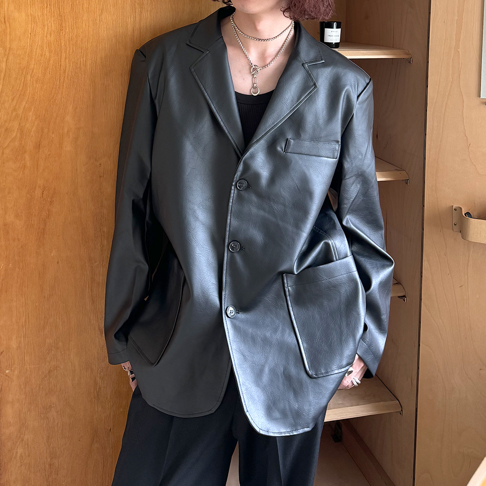 (ユニセックス)フェイクレザースリーボタンオーバーフィットジャケット