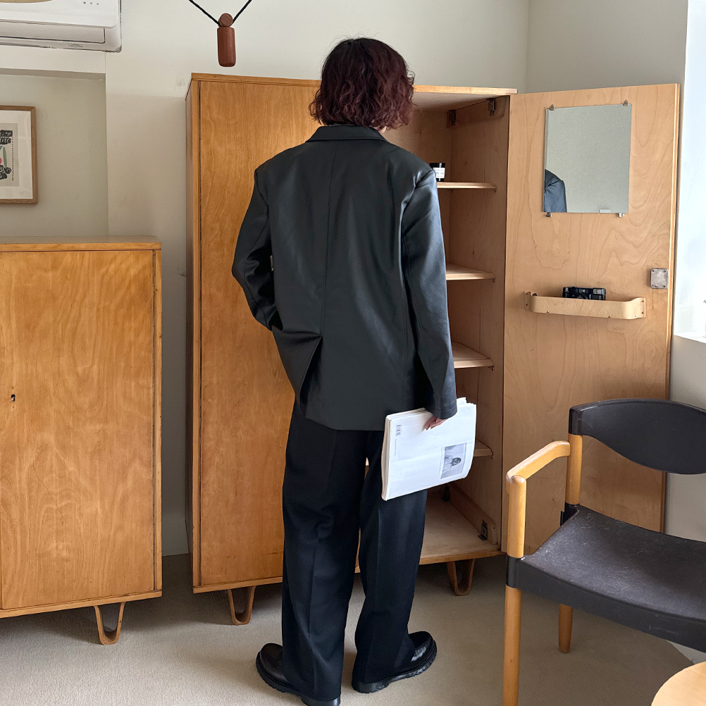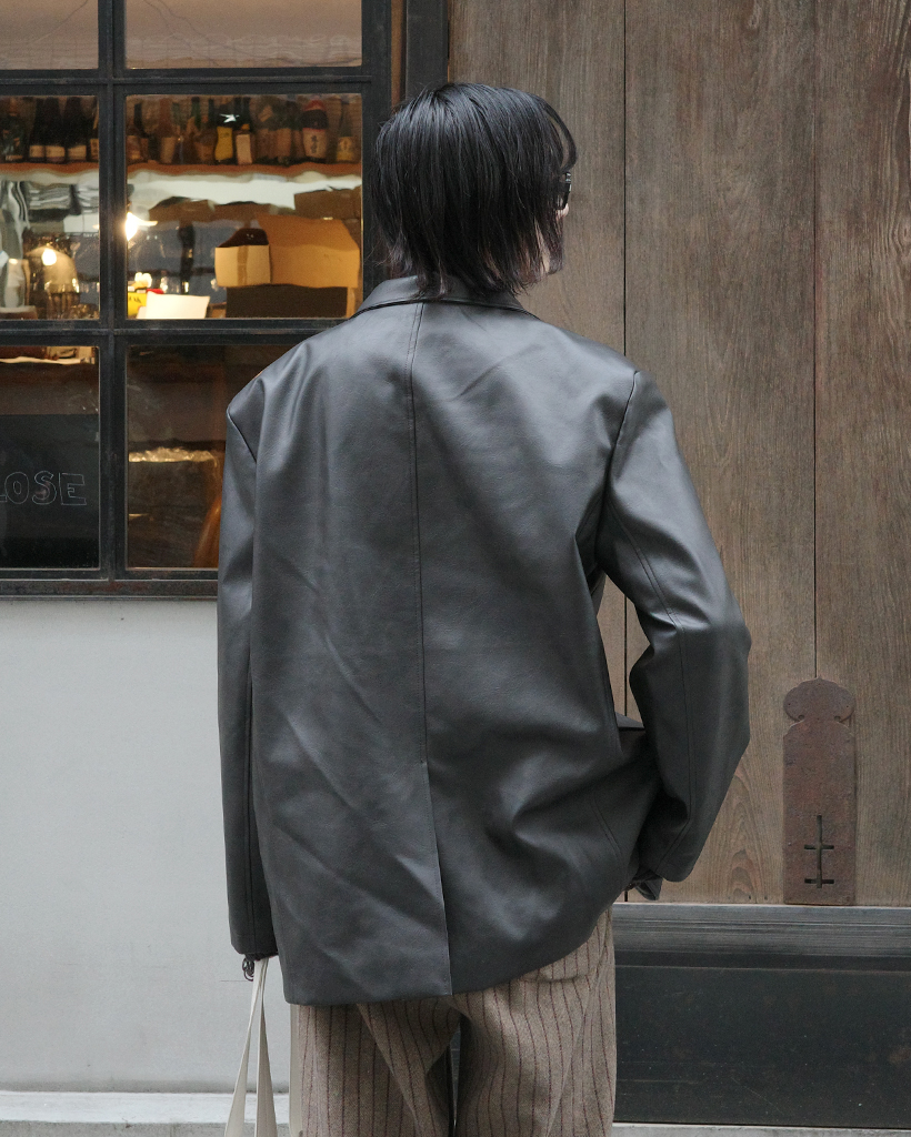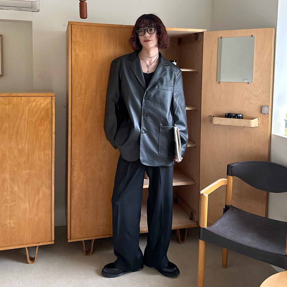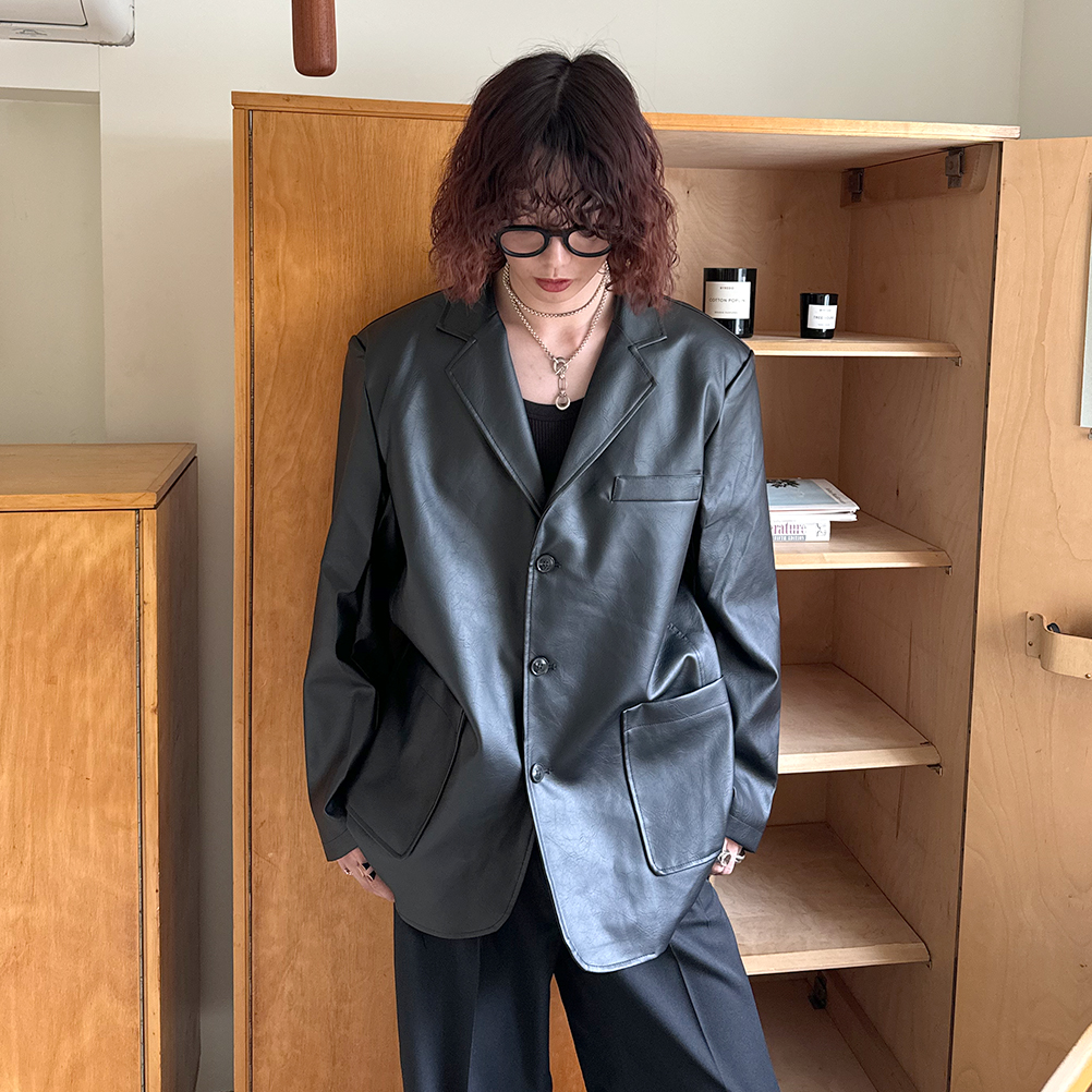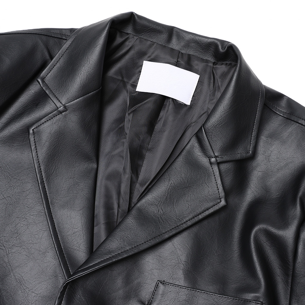 (ユニセックス)フェイクレザースリーボタンオーバーフィットジャケット