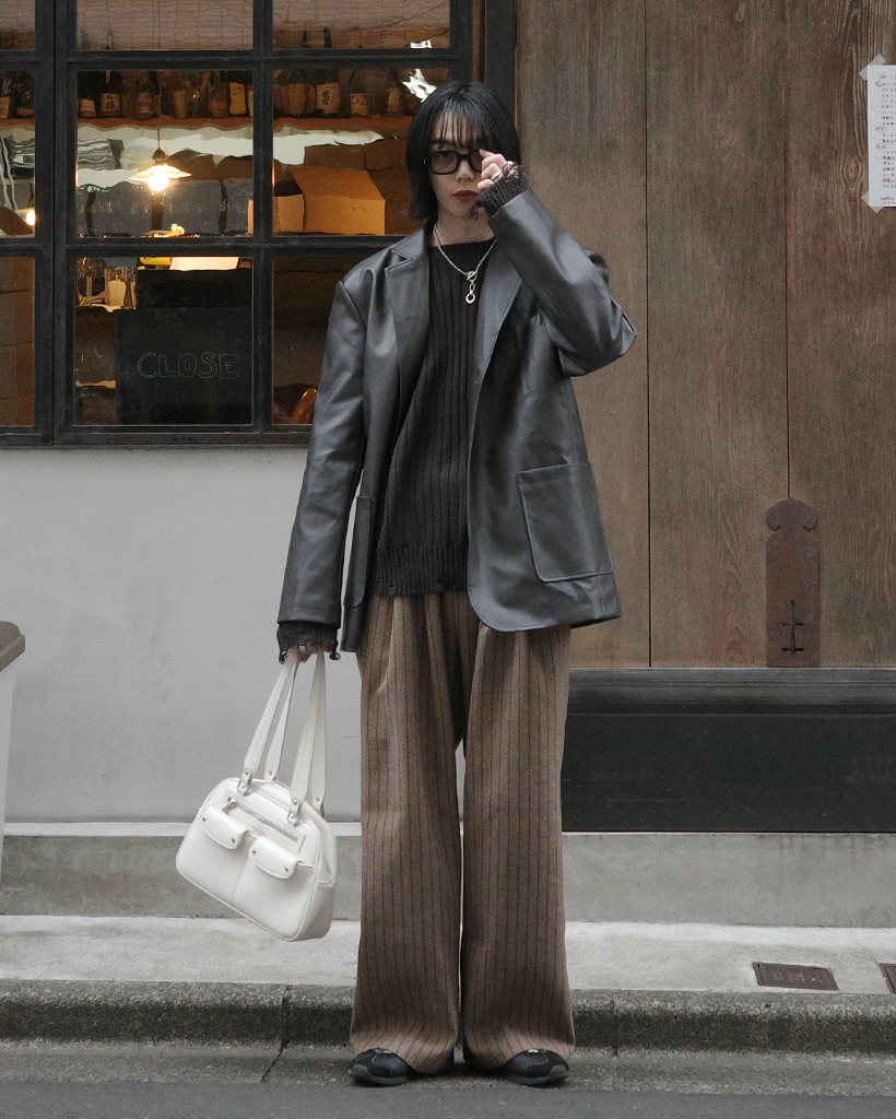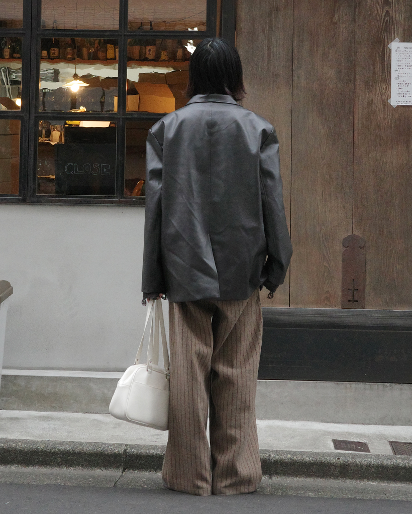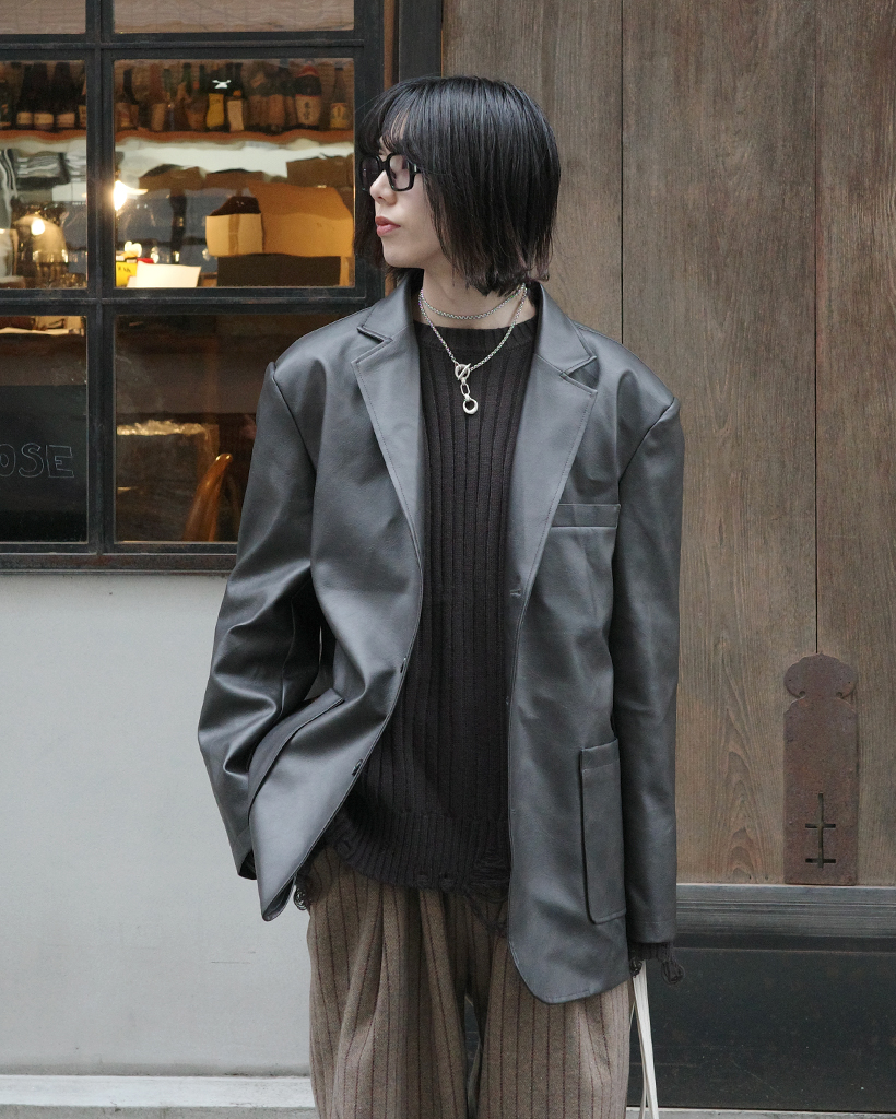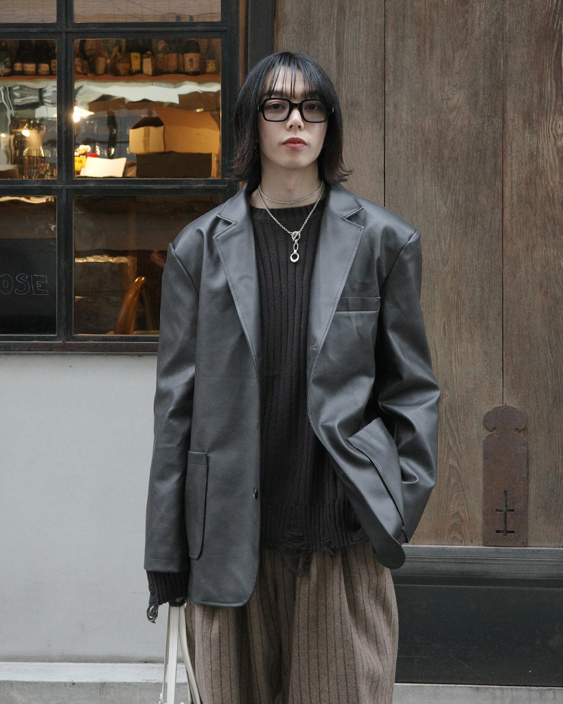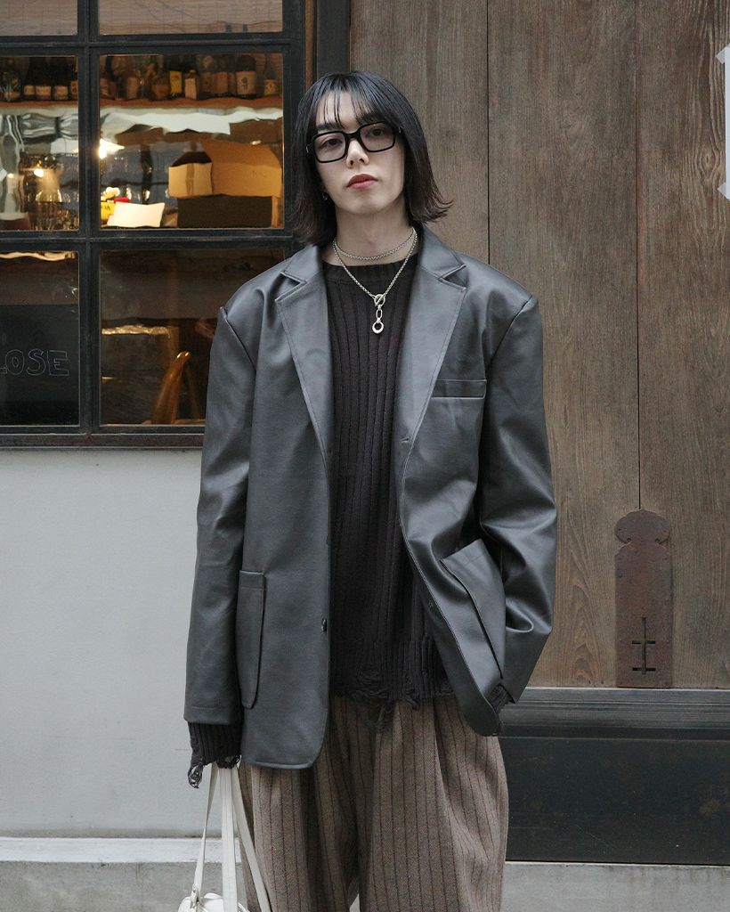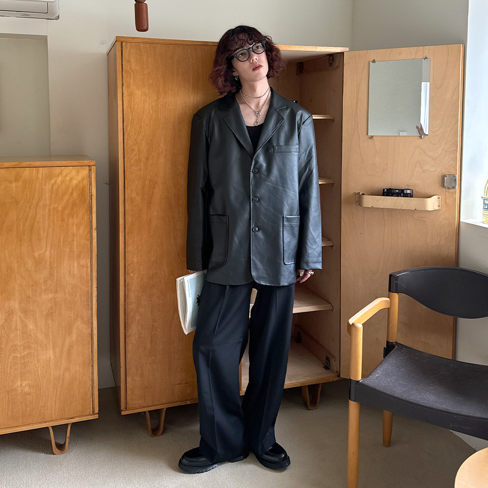 (ユニセックス)フェイクレザースリーボタンオーバーフィットジャケット