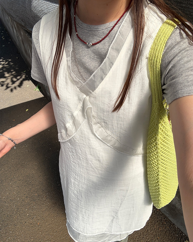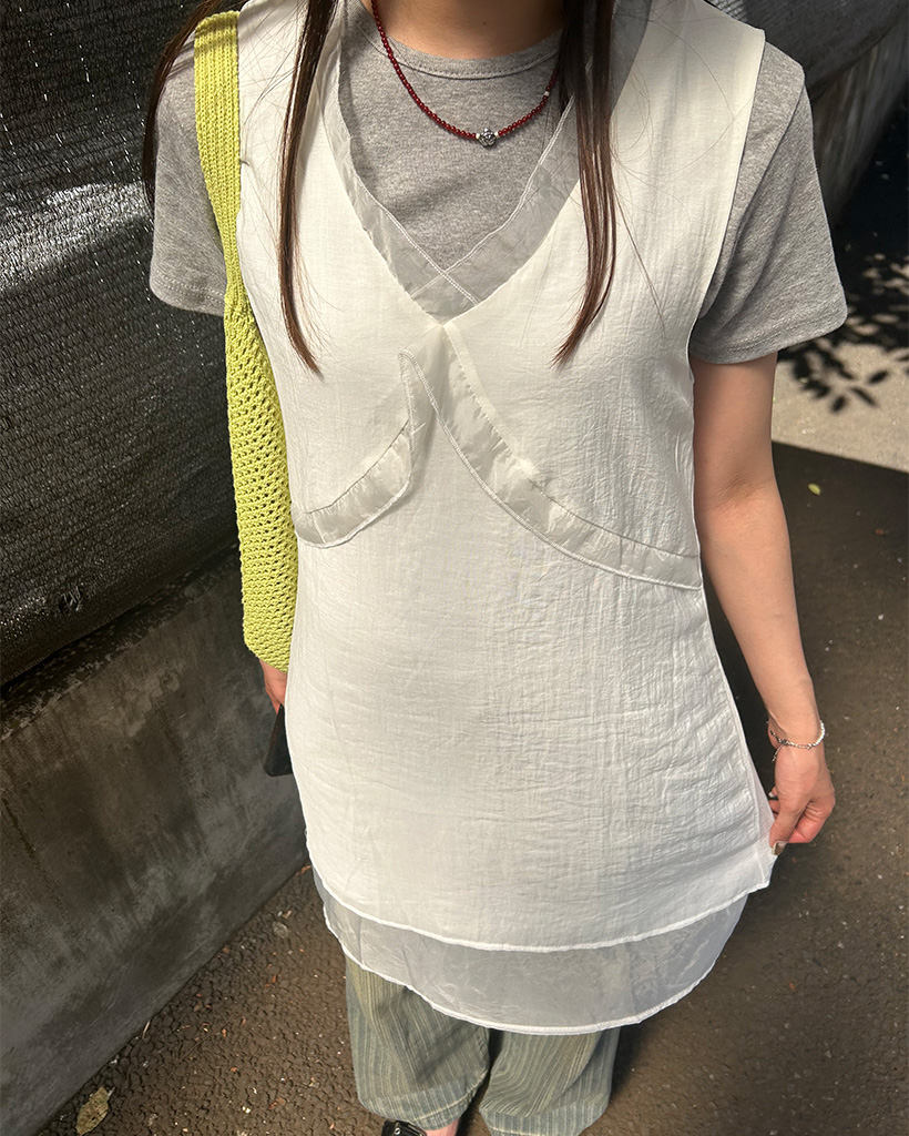 Vネックレイヤードミニドレス