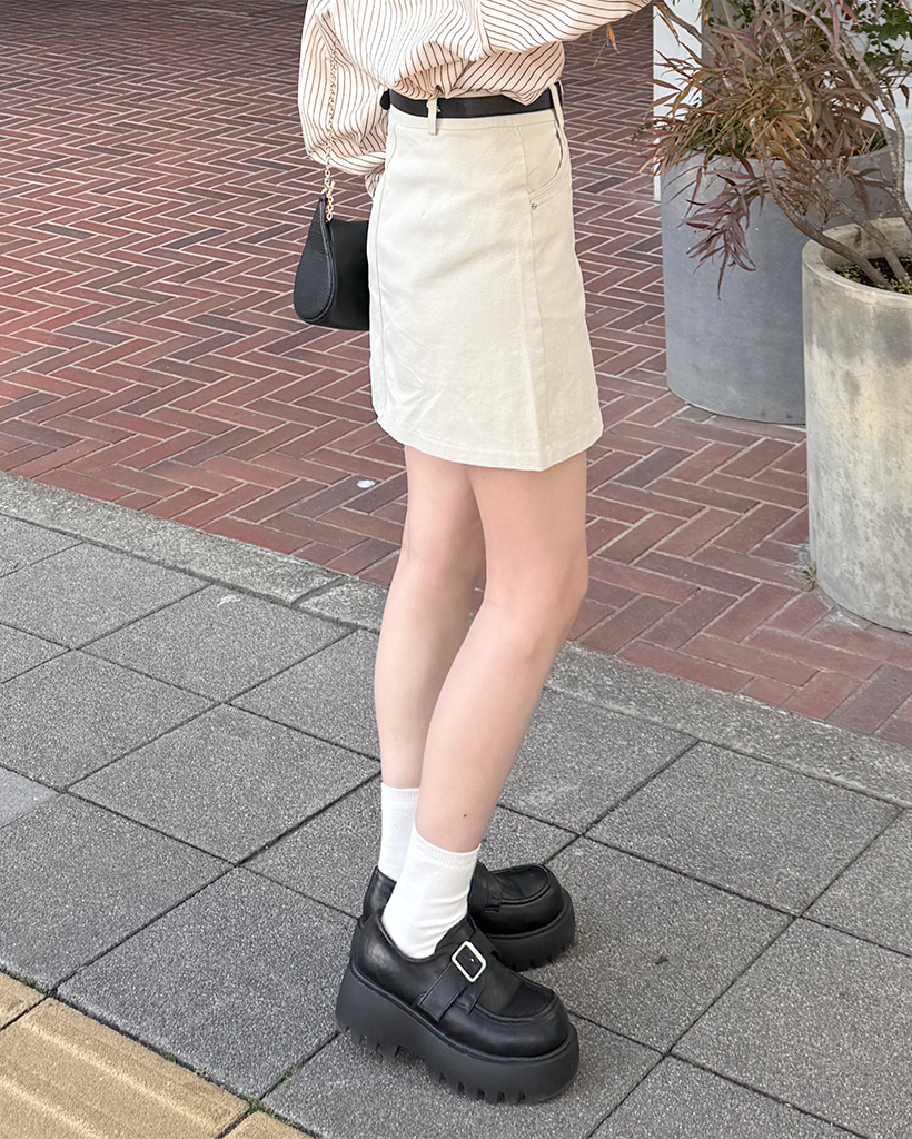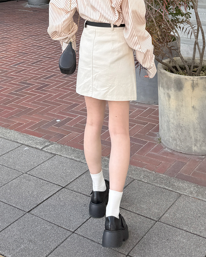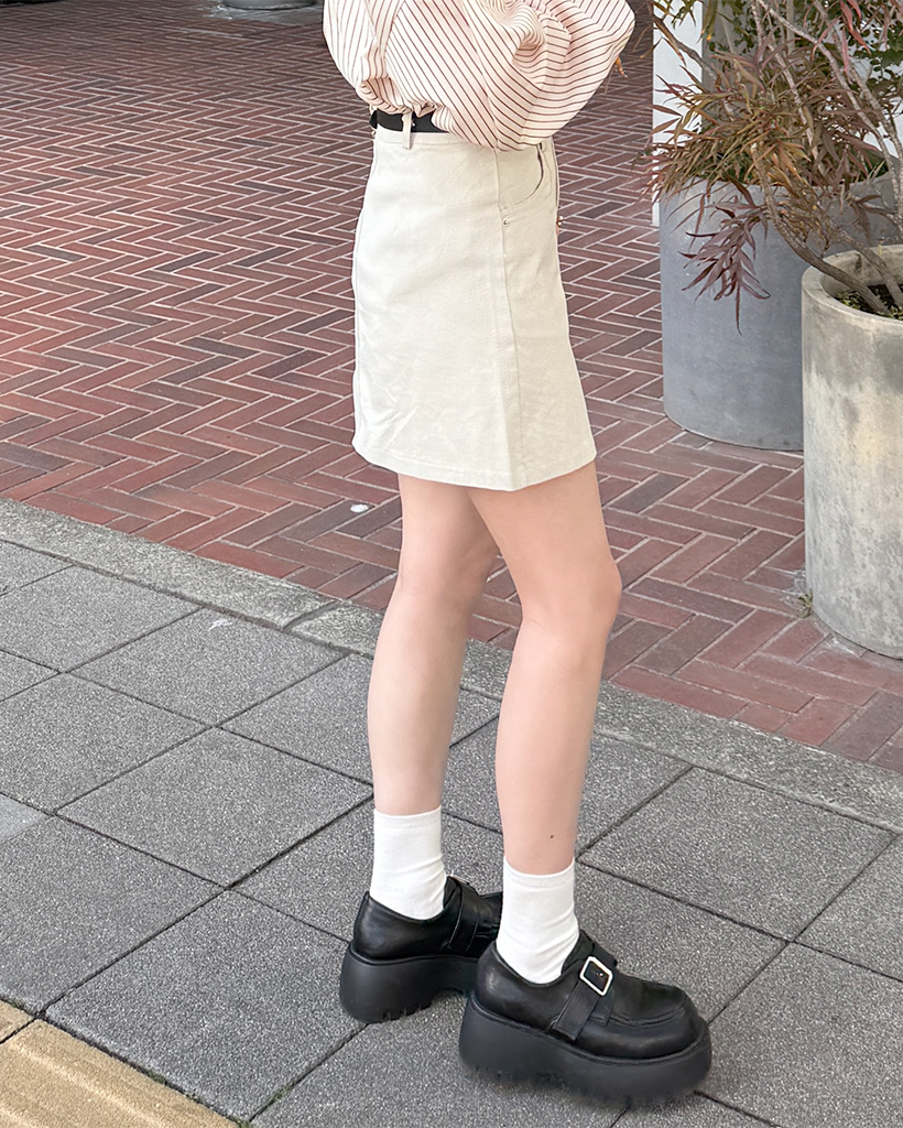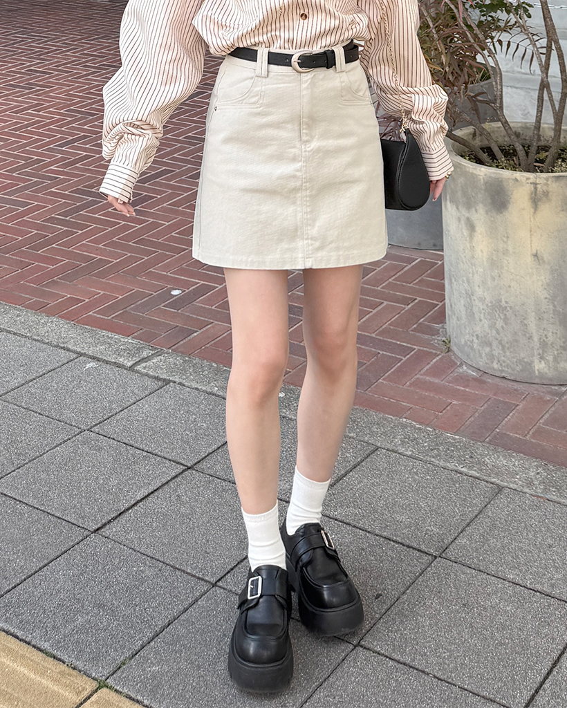 ベルトセットコットンシンプルミニスカート