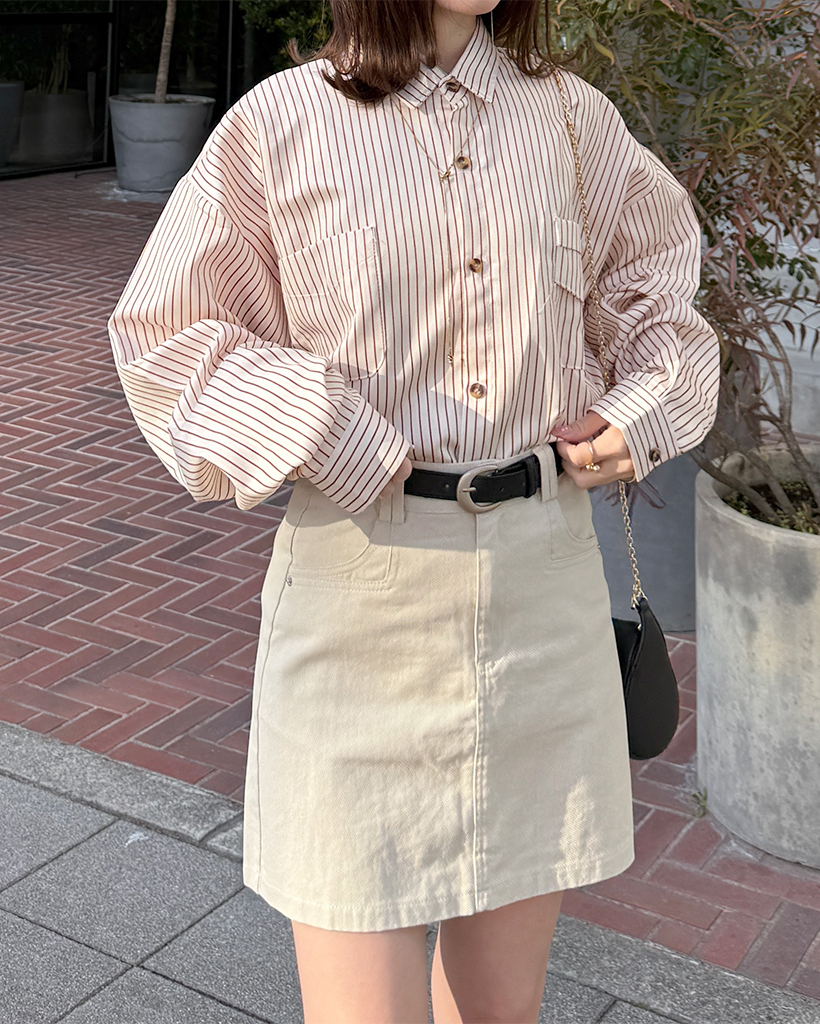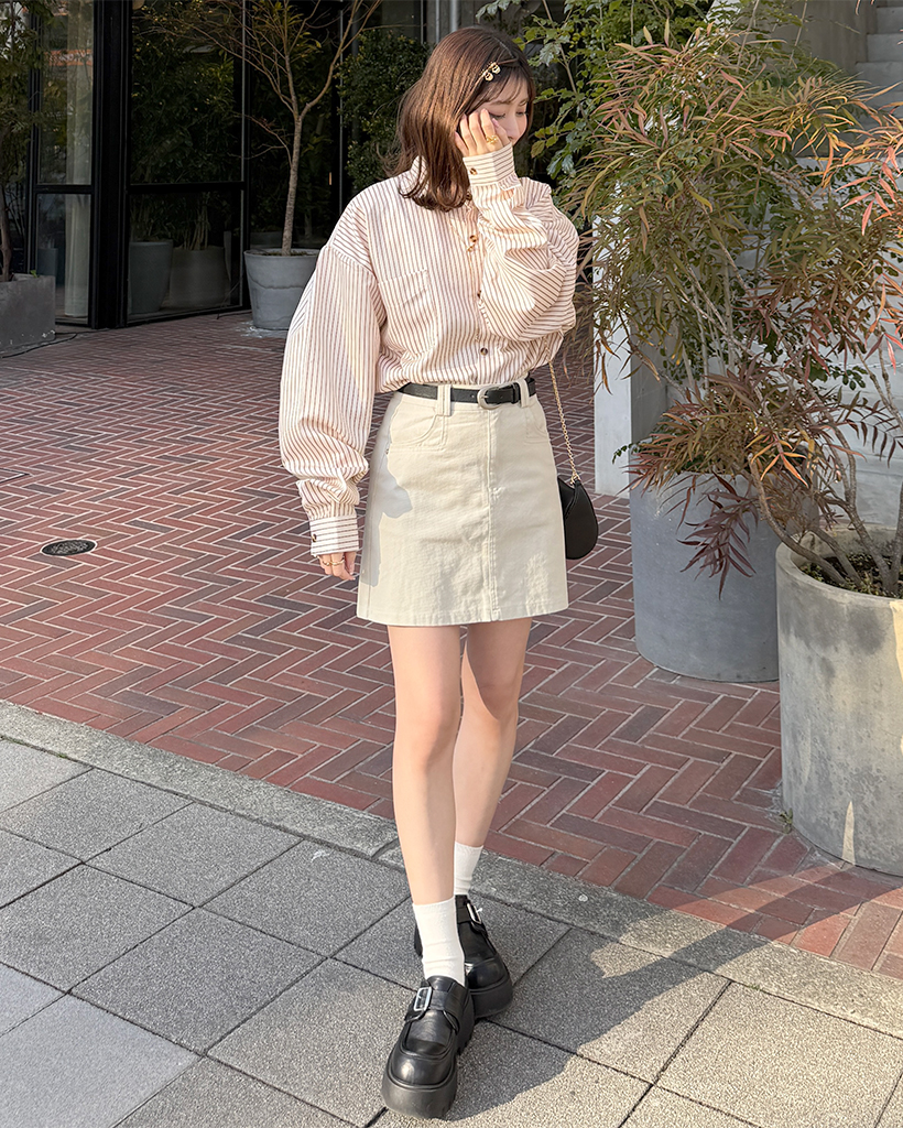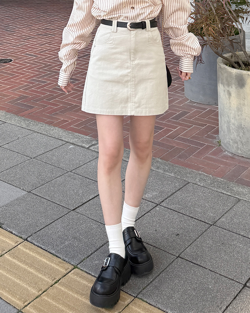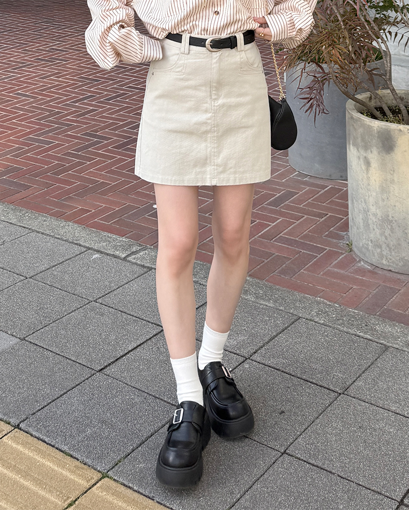 ベルトセットコットンシンプルミニスカート