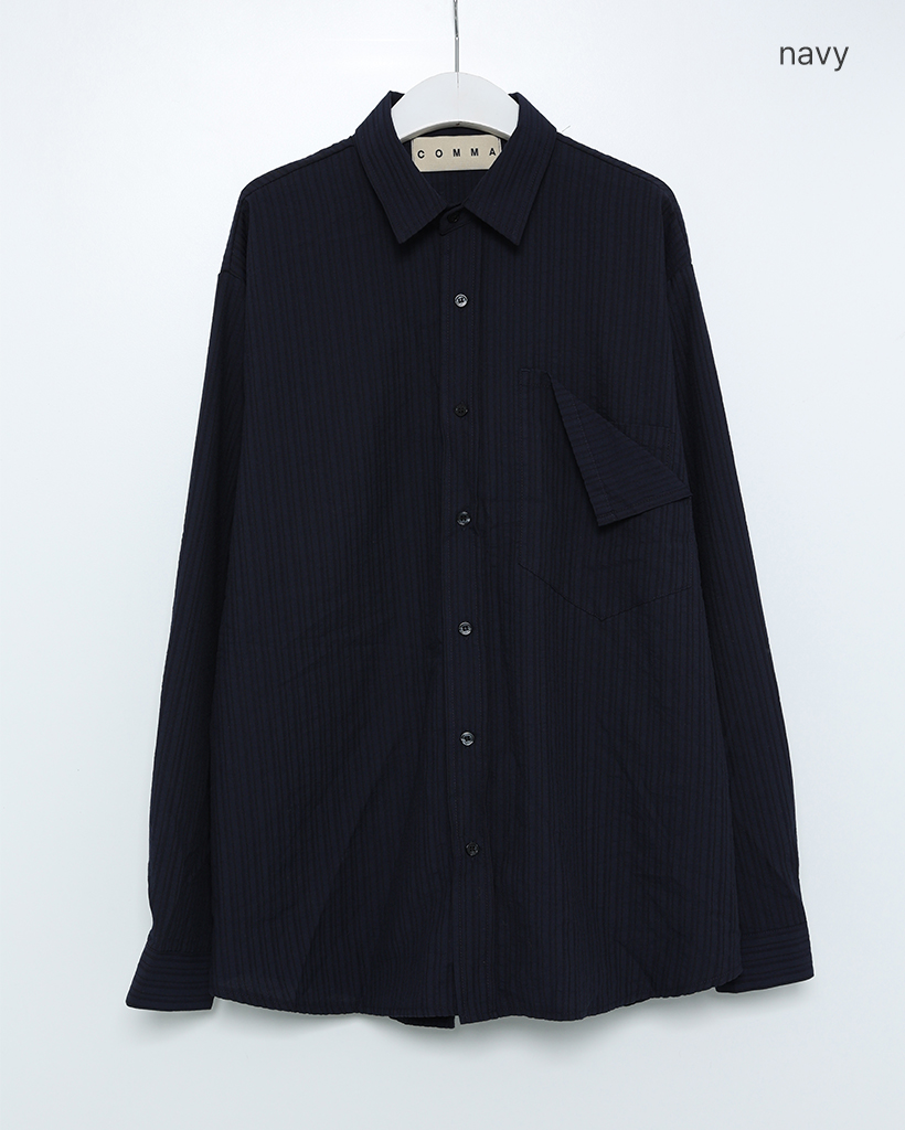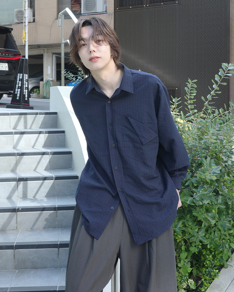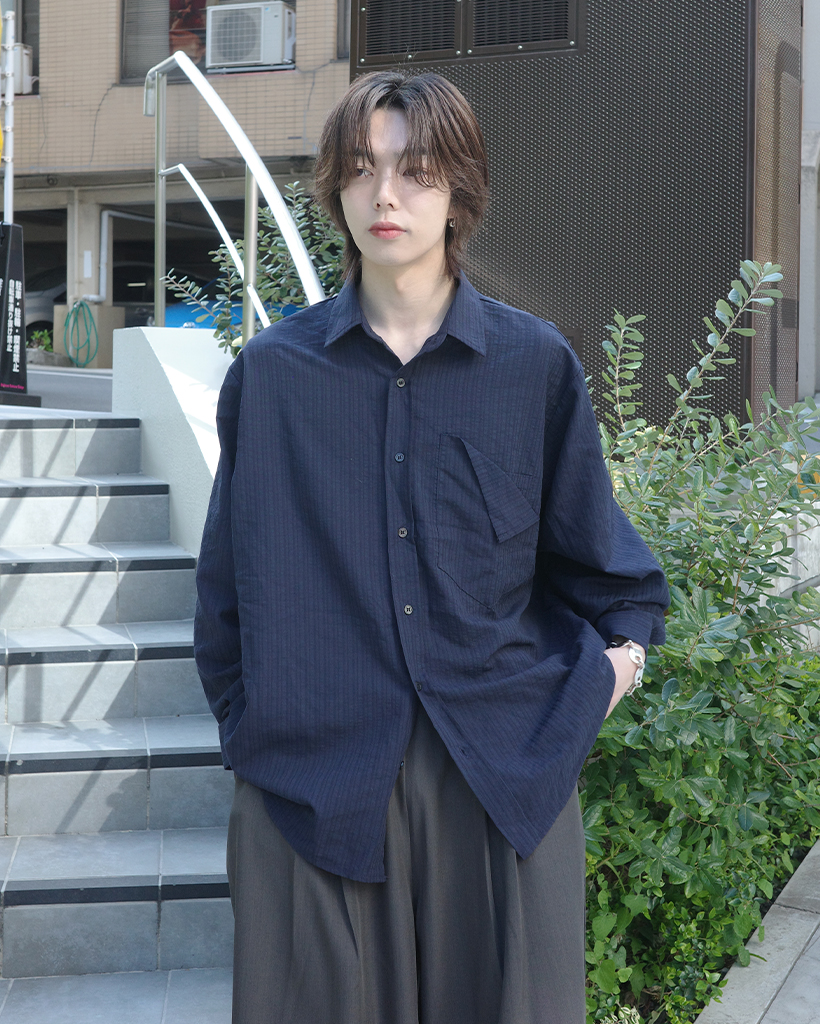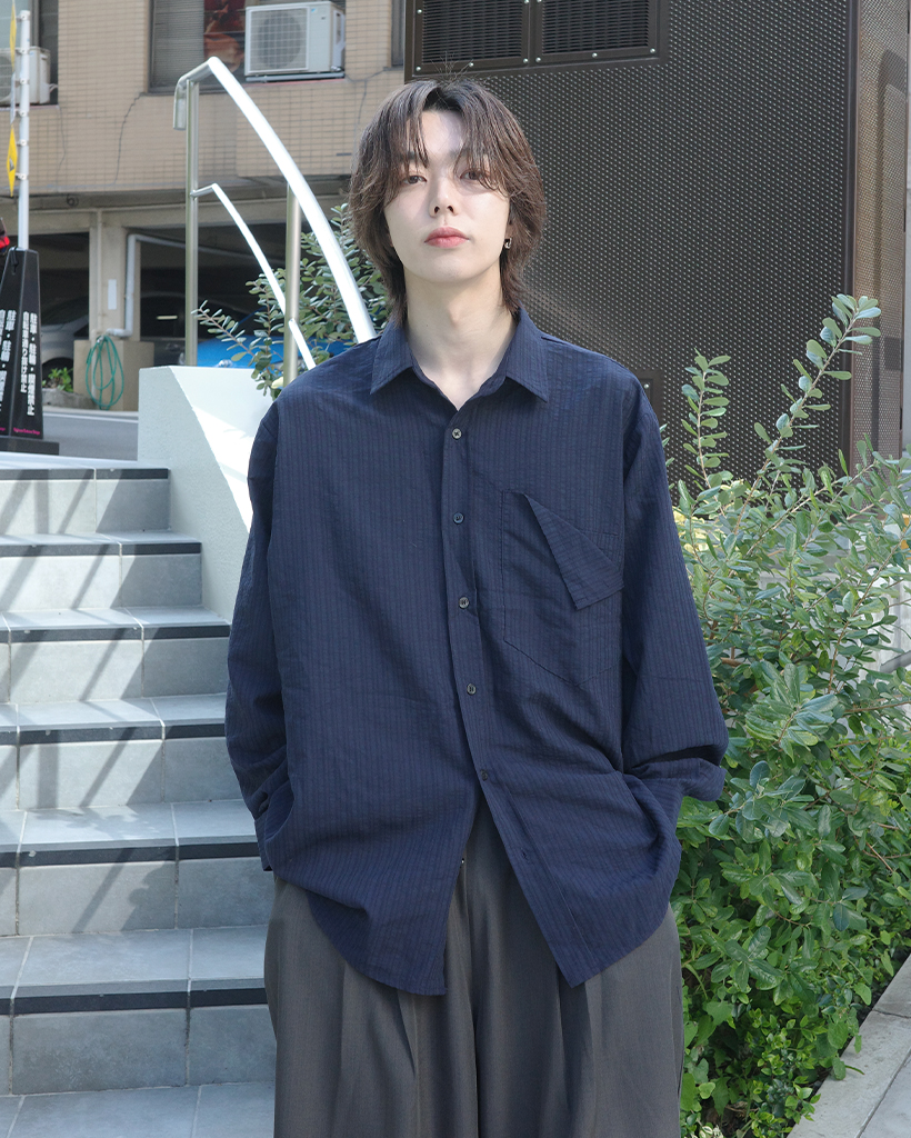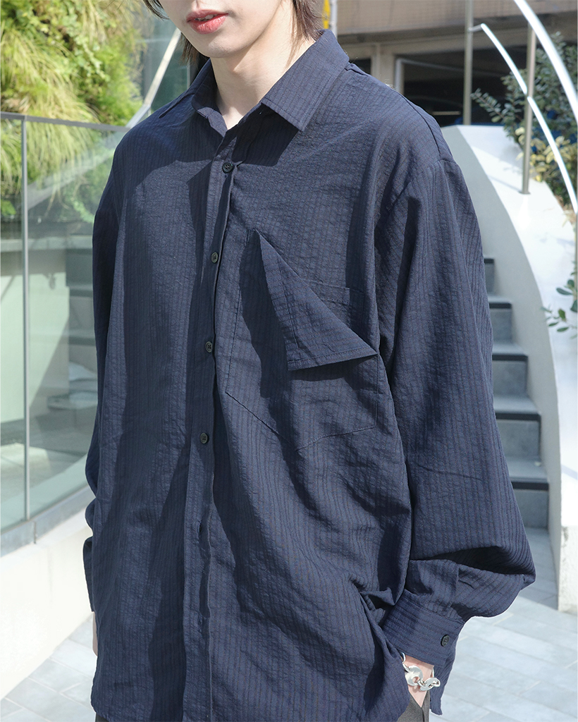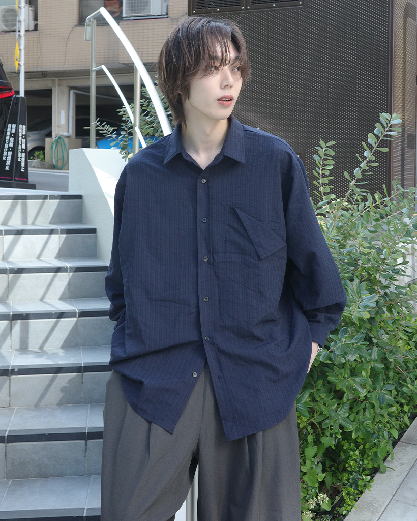 パッチポケットポイントルーズフィットボーダーシャツ
