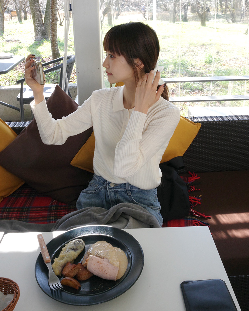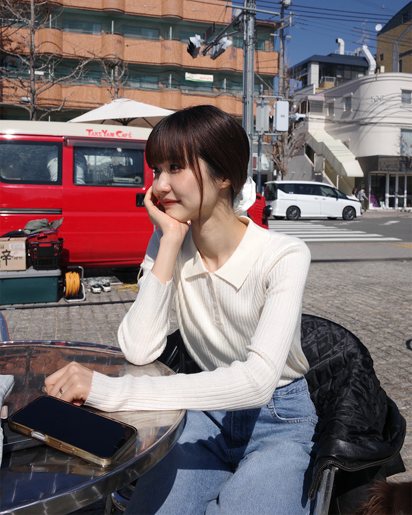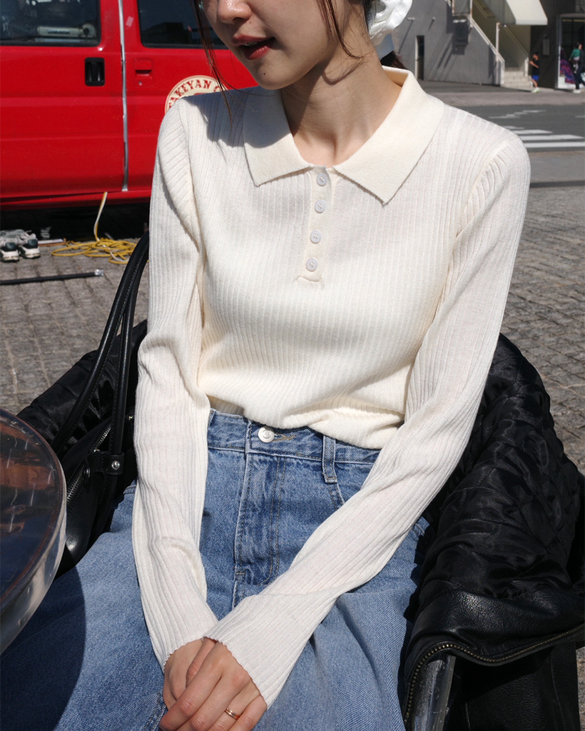 リブカラーボタン ニット