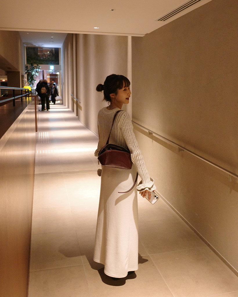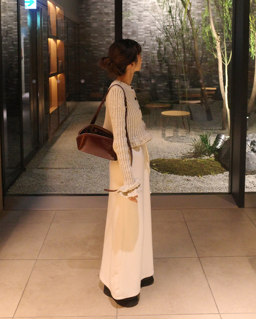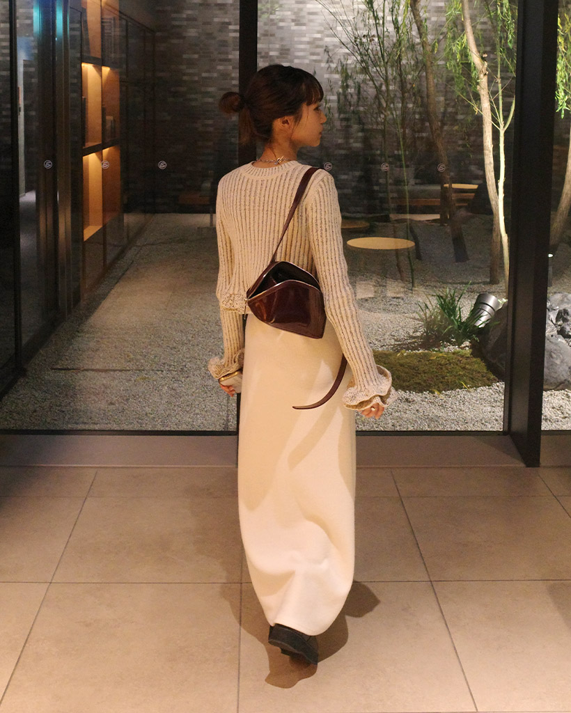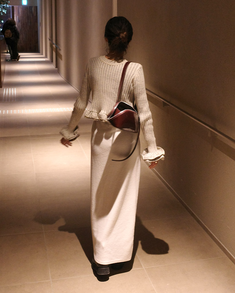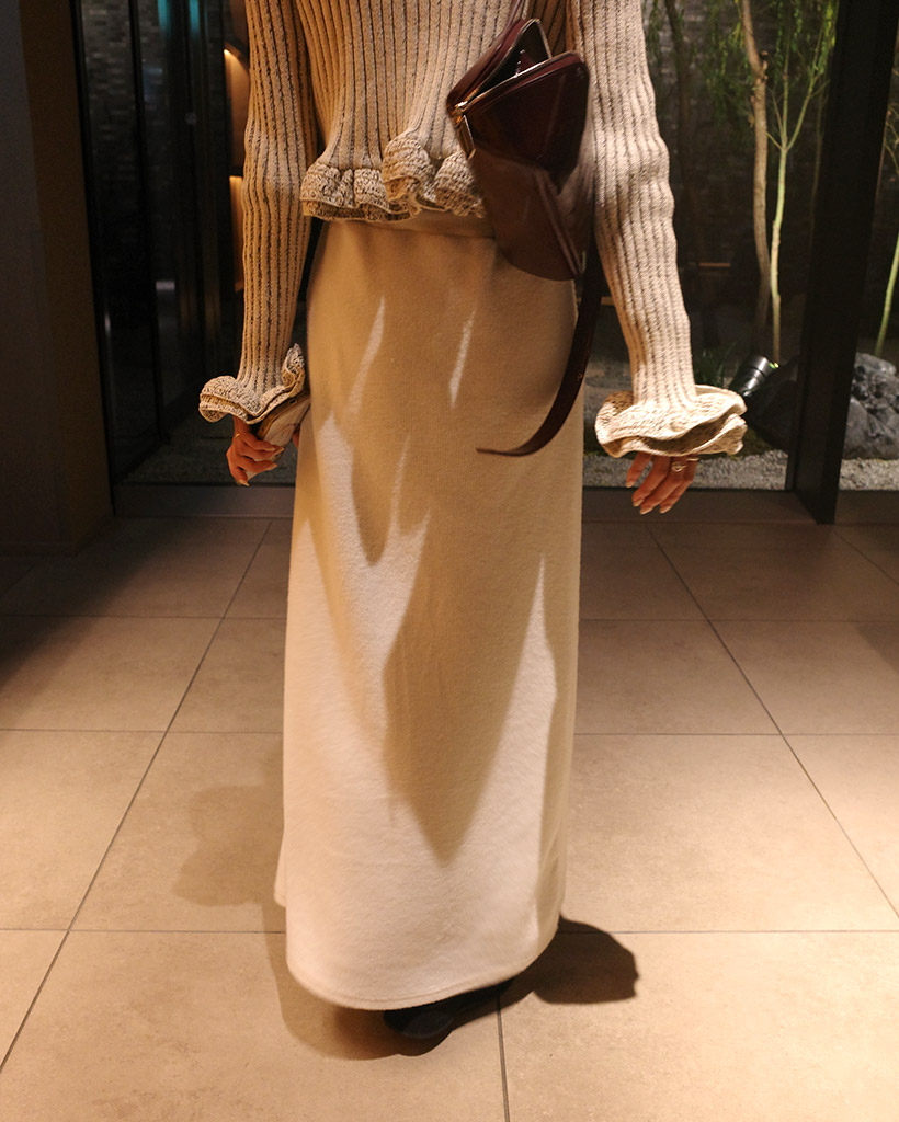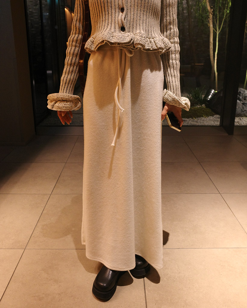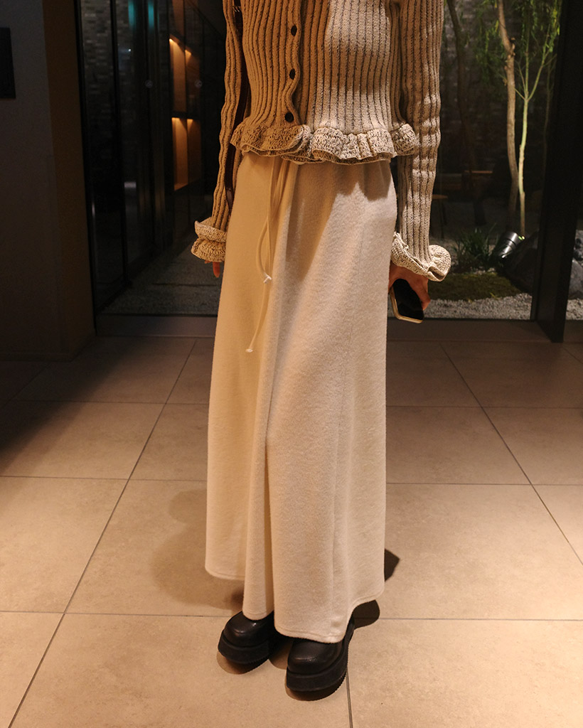 ウエストストリングリブニットロングスカート