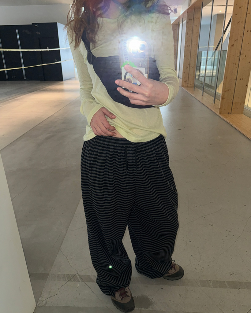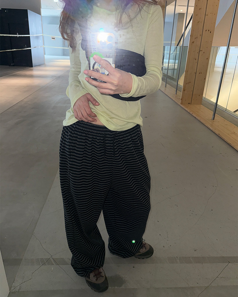 ウエストストリングボーダーイージーパンツ