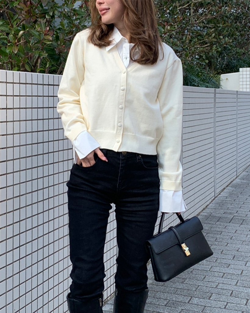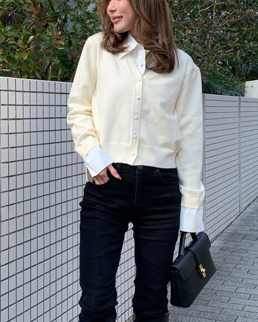 レイヤードシャツポイントニット