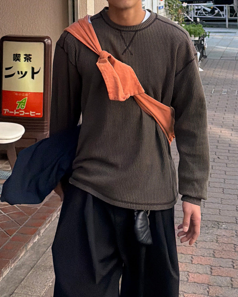 ワッフルステッチデザインロングTシャツ