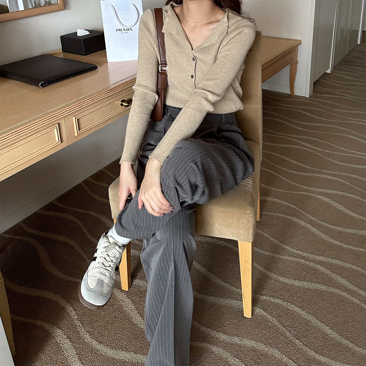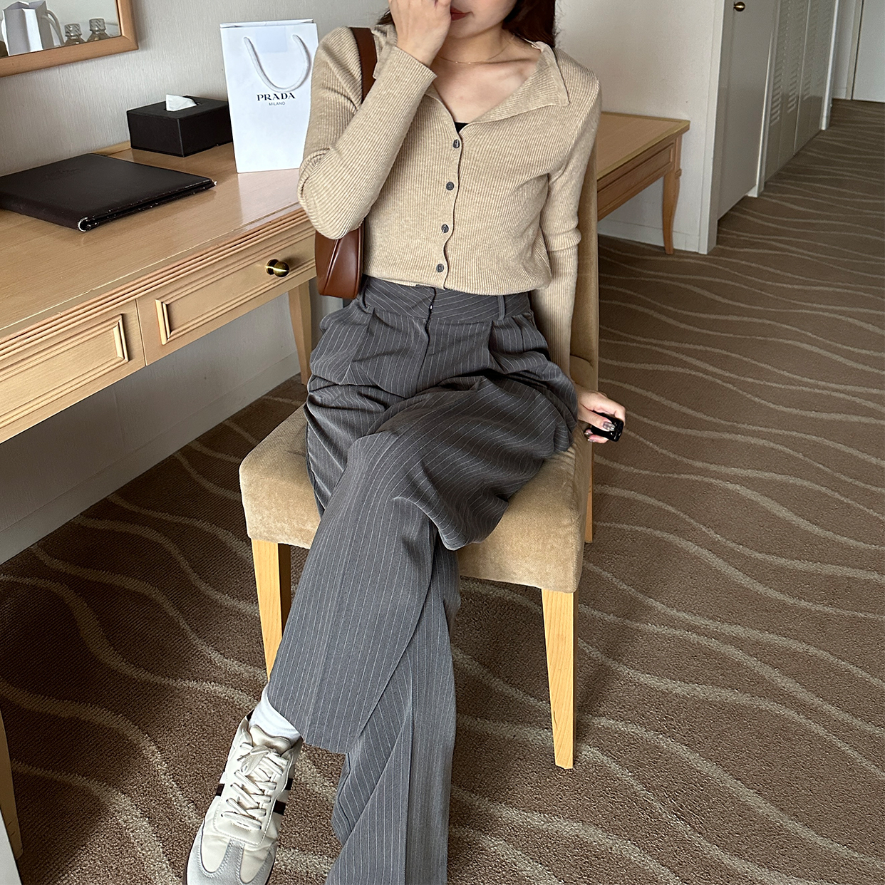 ストライプルーズフィットスラックス