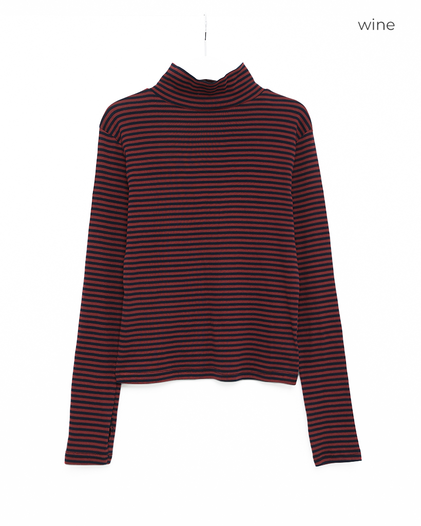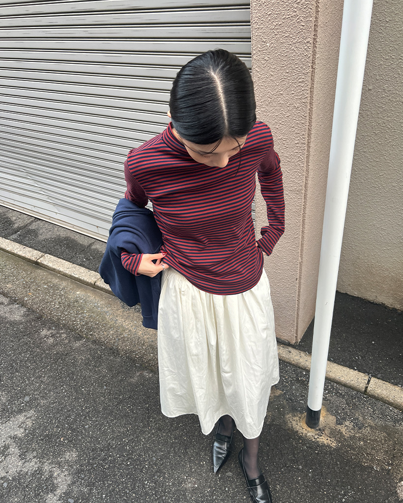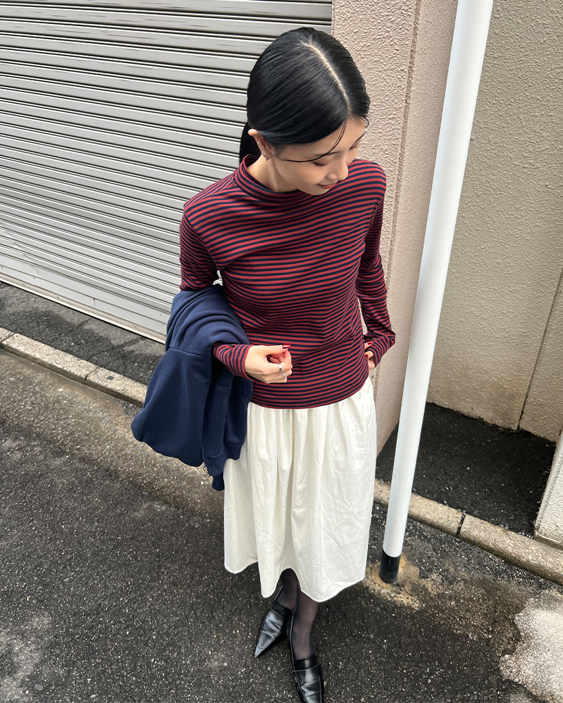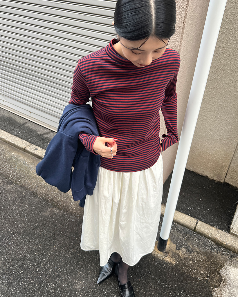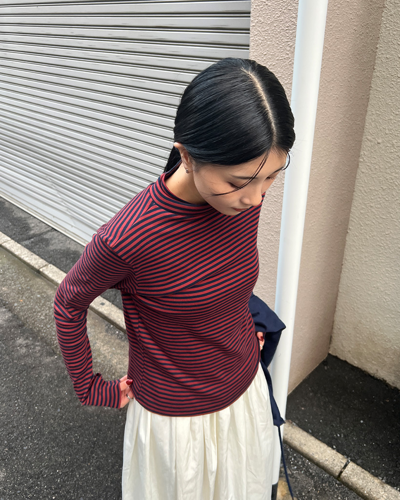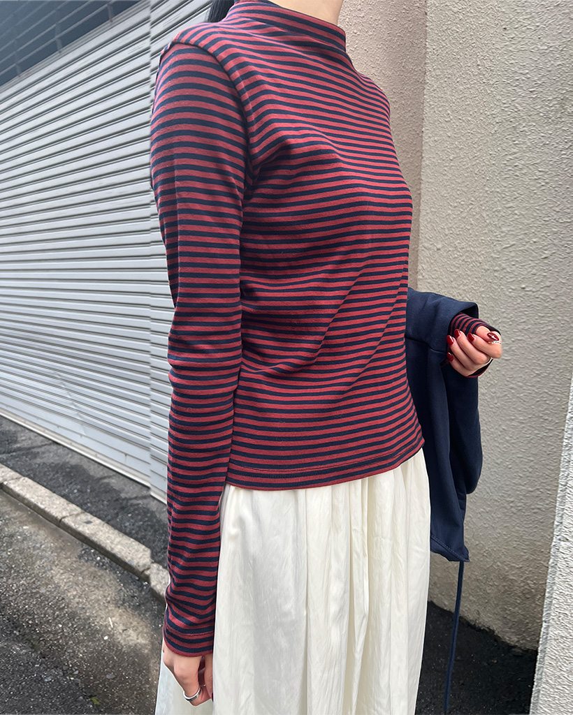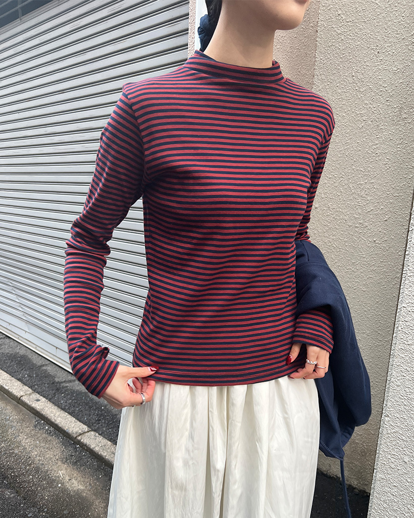 ボーダーハーフネック長袖Tシャツ