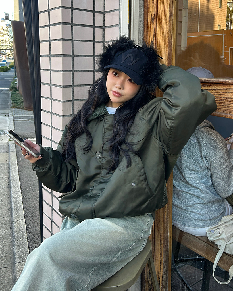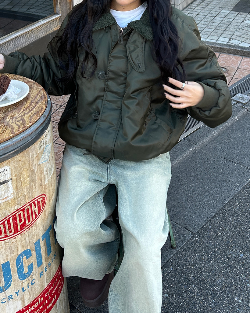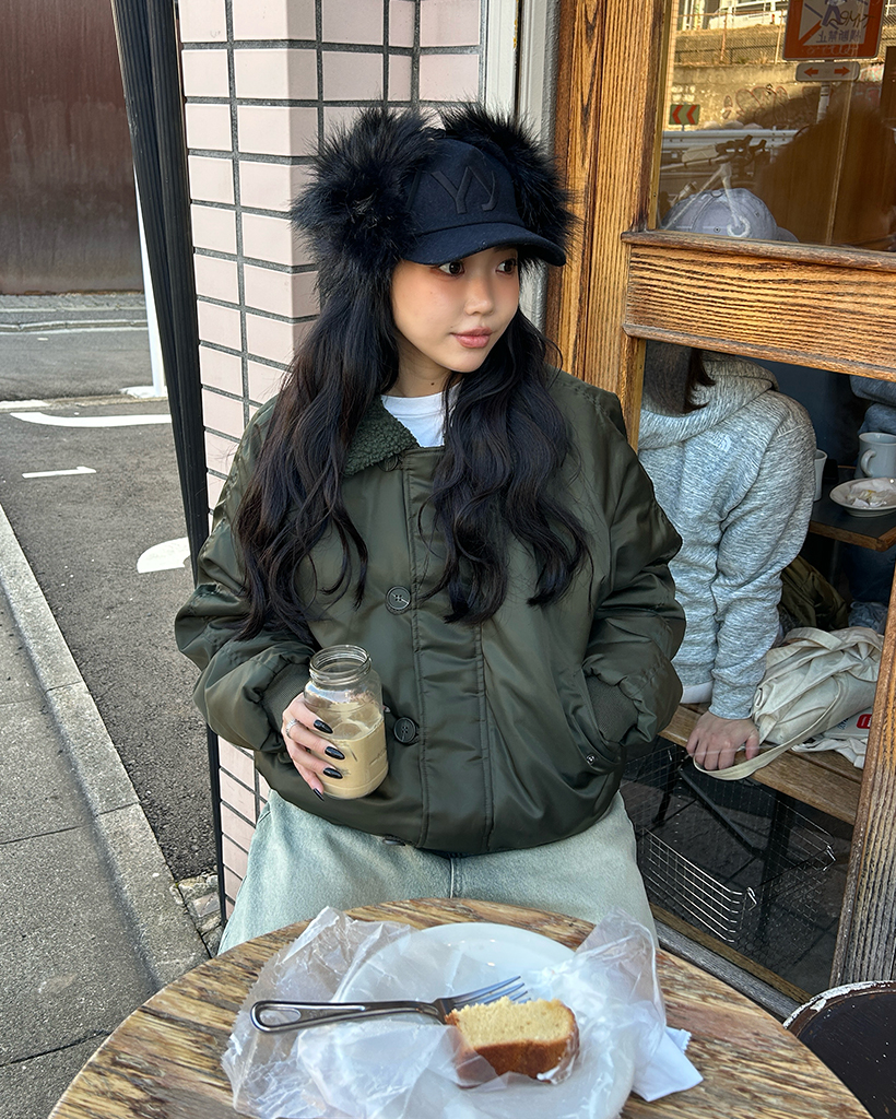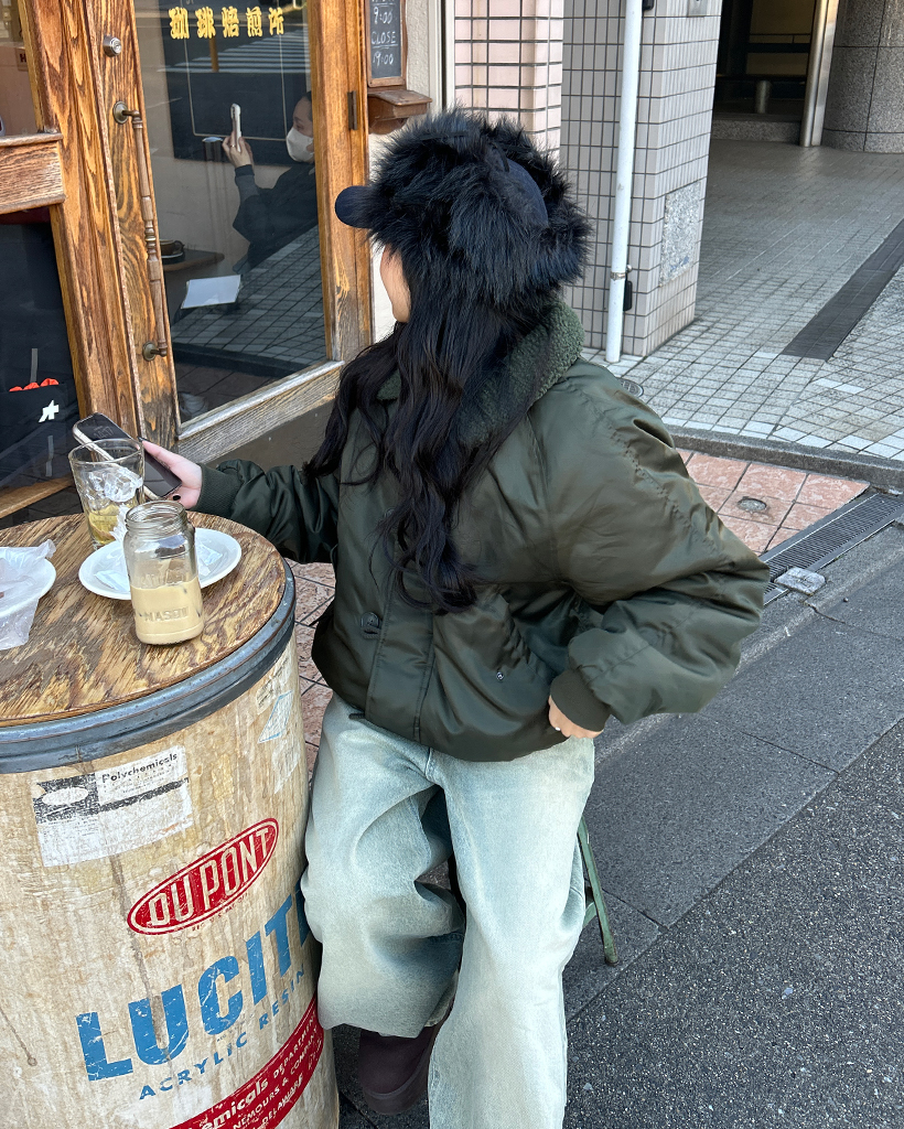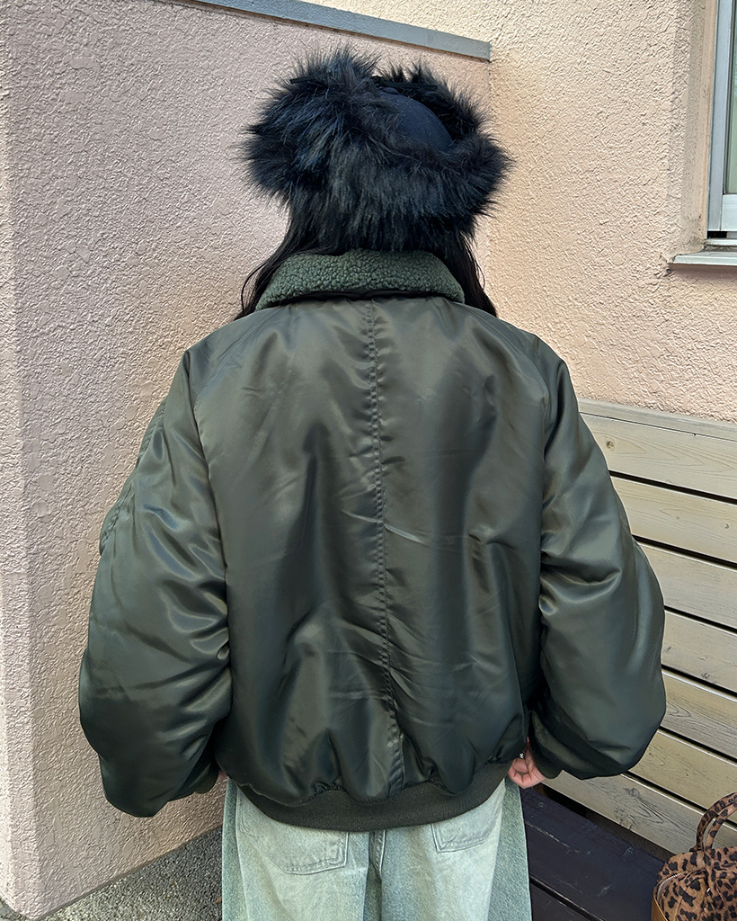(ユニセックス)ボアカラーループボタンフライトジャケット